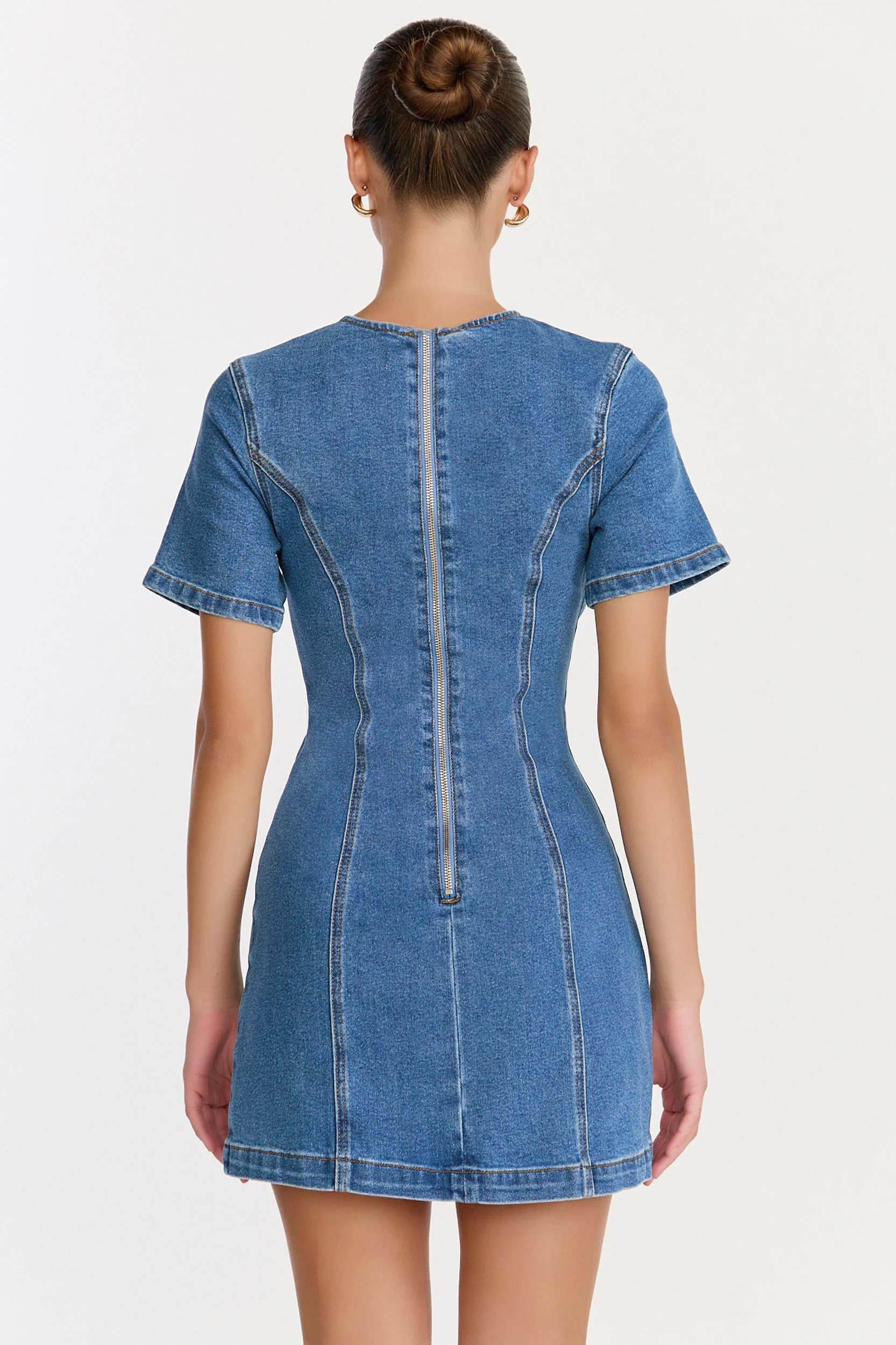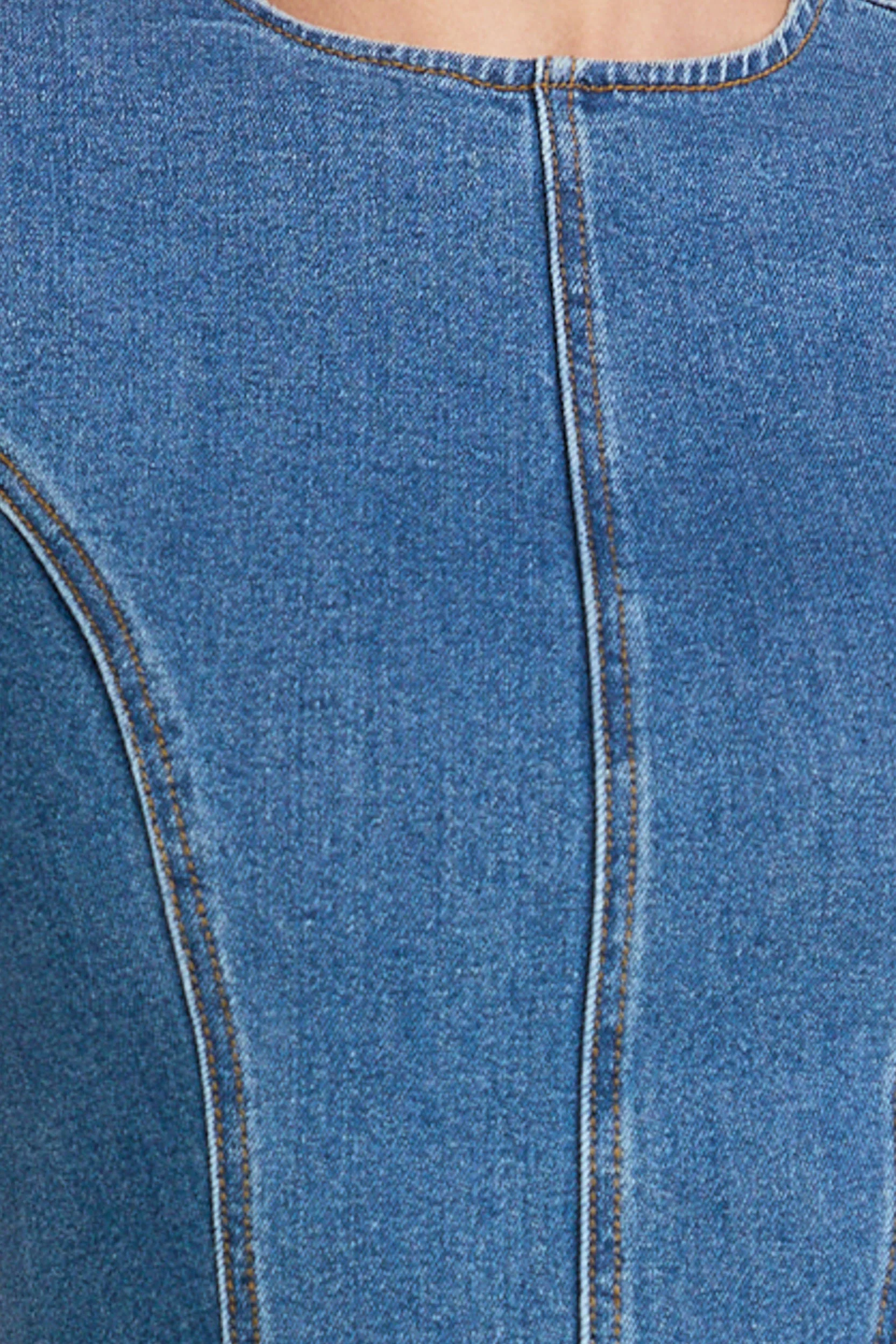 Camellia Mini Dress - High Neck A Line Dress in Mid Blue Wash