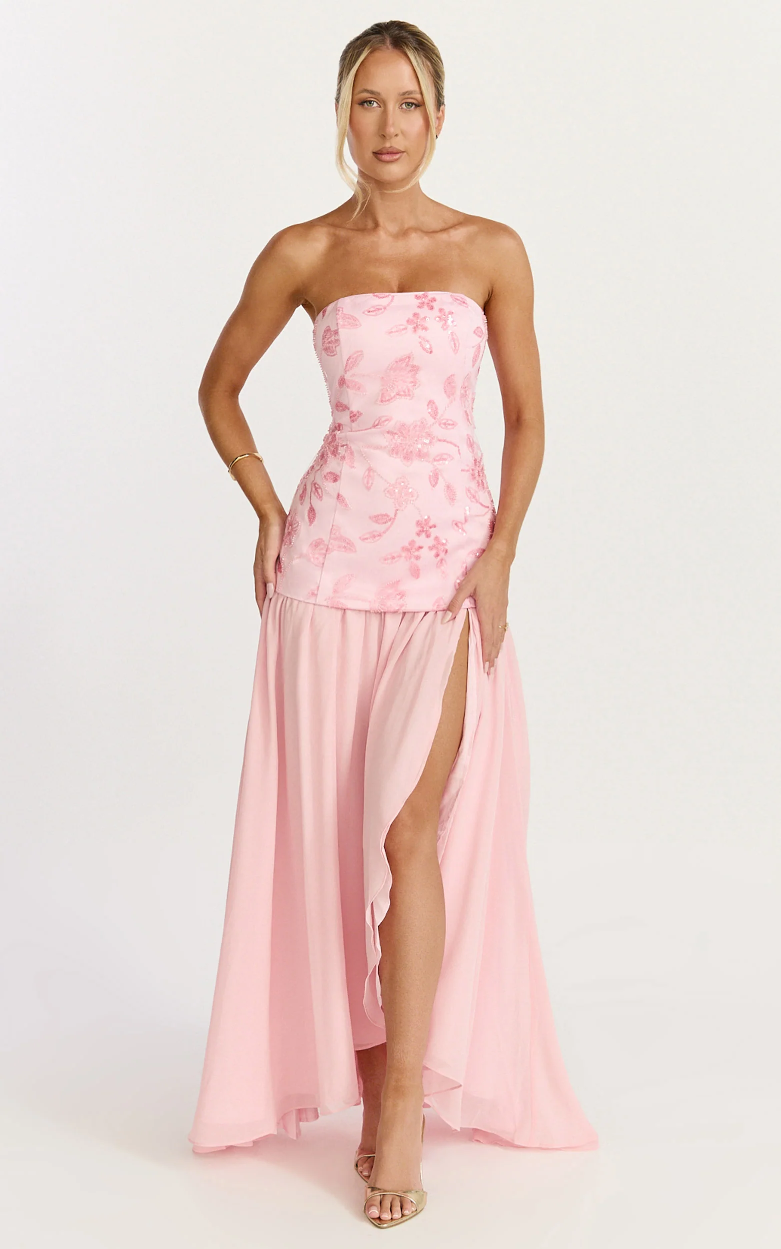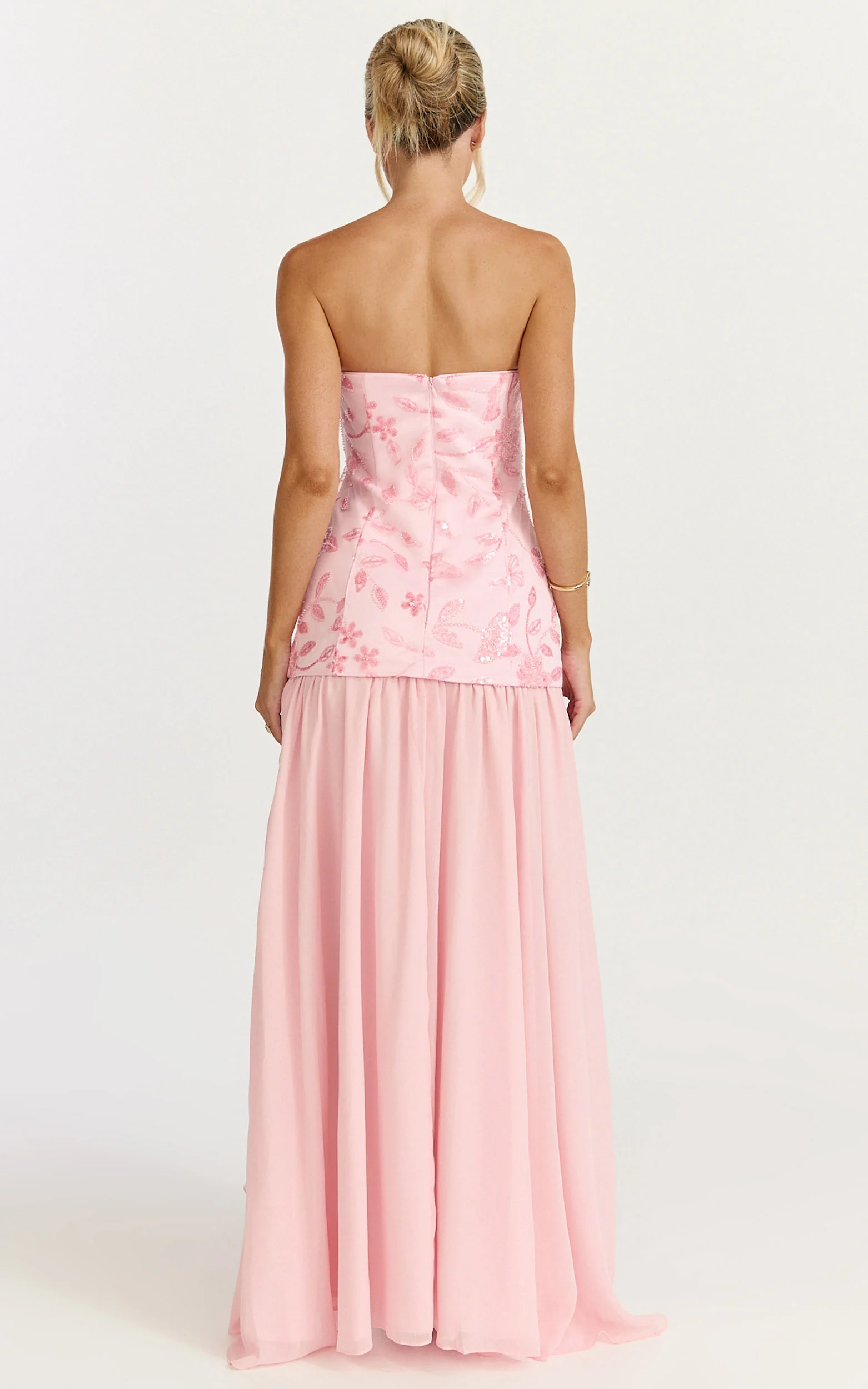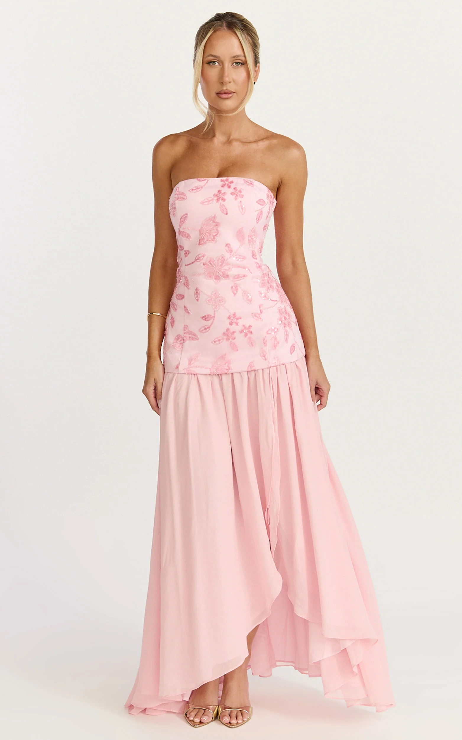 Electra Maxi Dress - Strapless Sequin Embellished Dress in Soft Pink