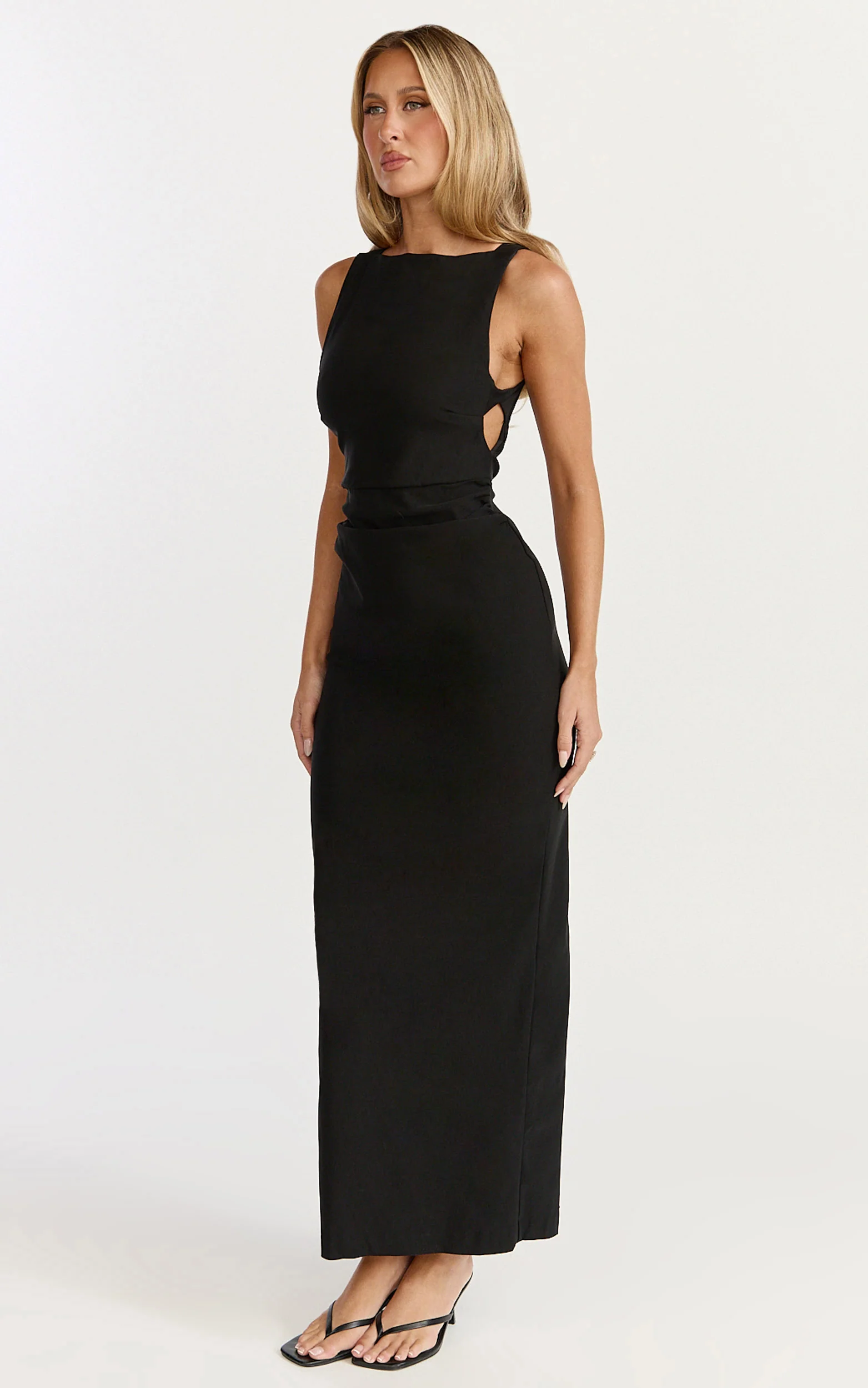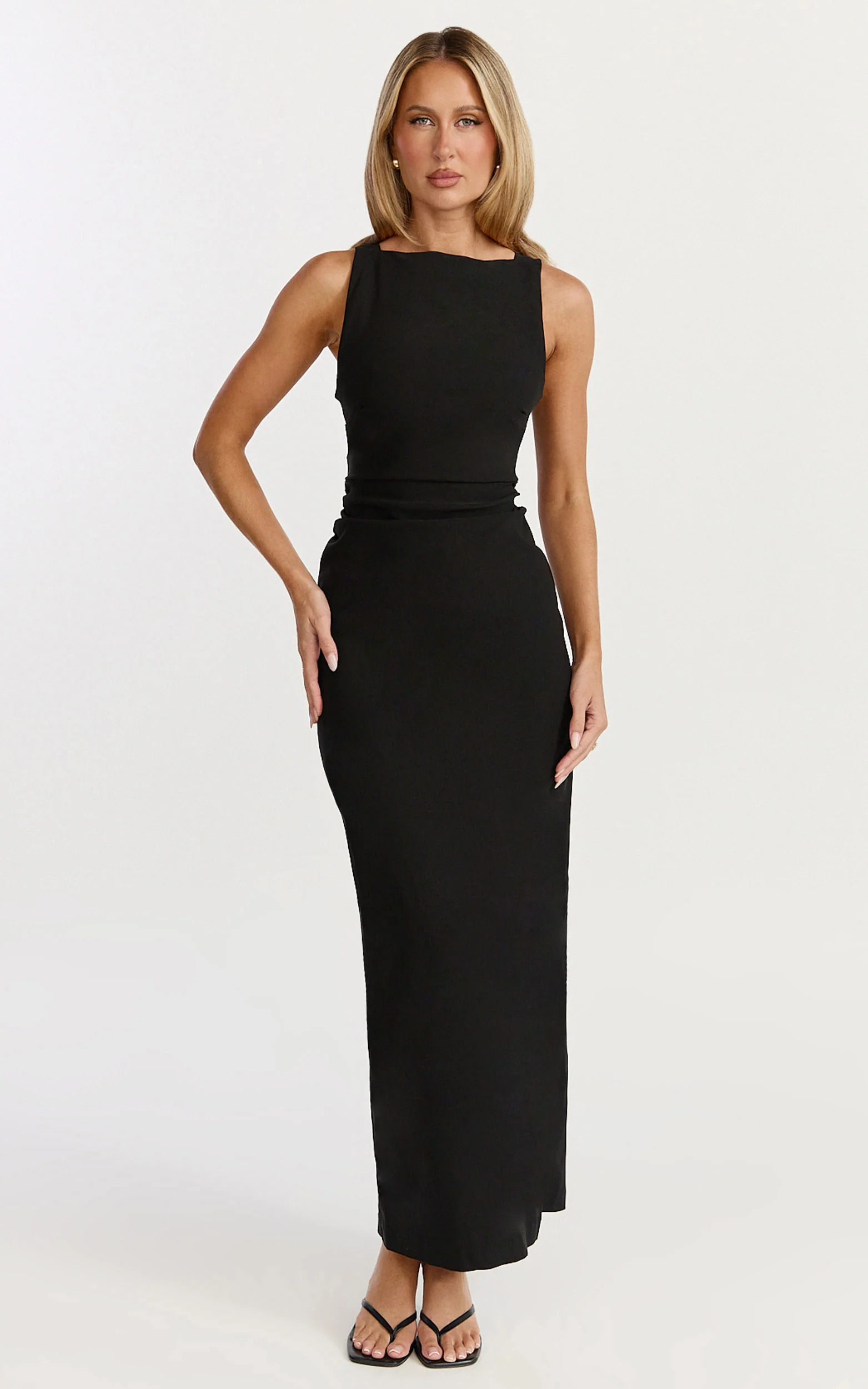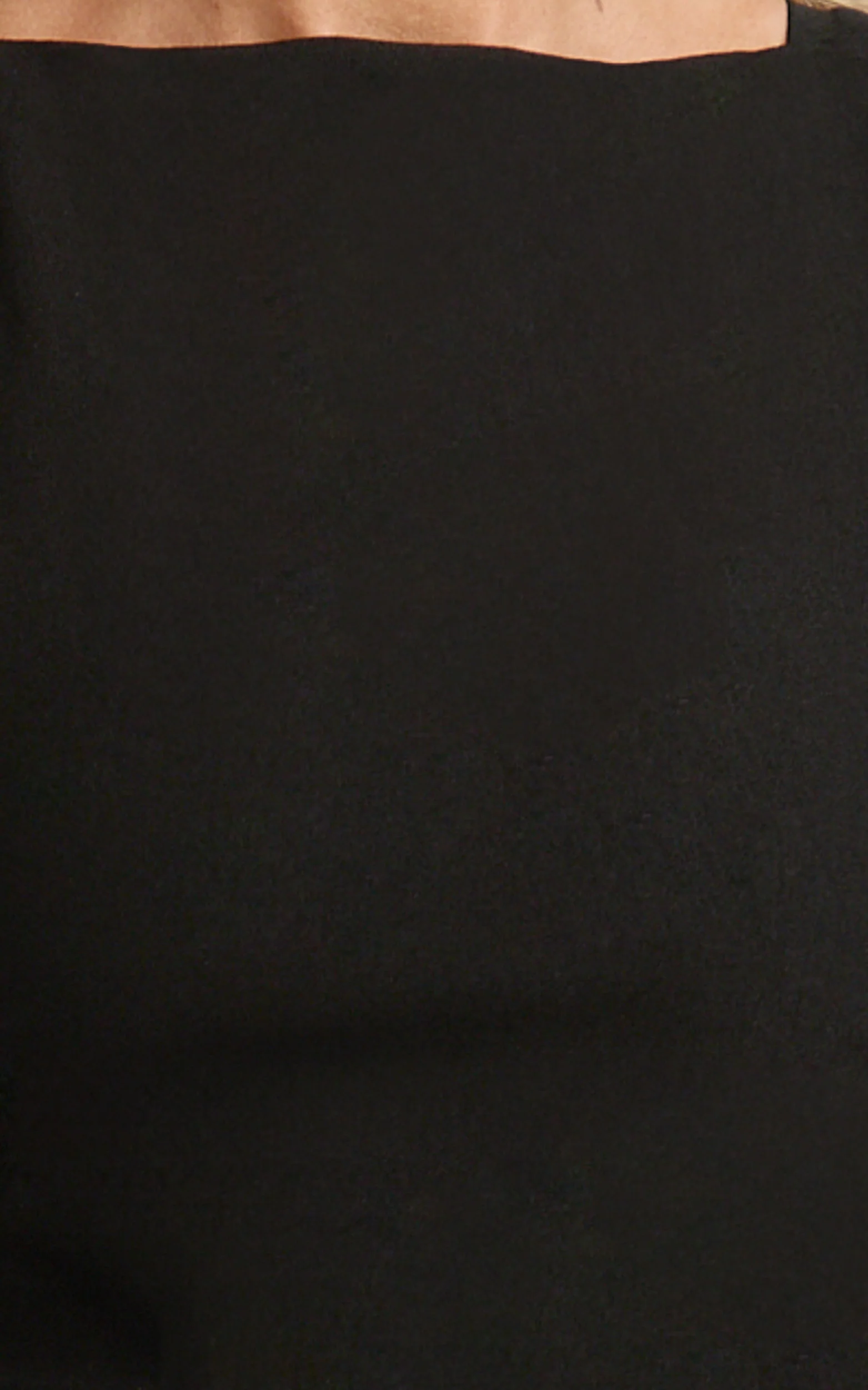 Liora Midi Dress - Boat Neck Side Twist Strap Midi Dress in Black