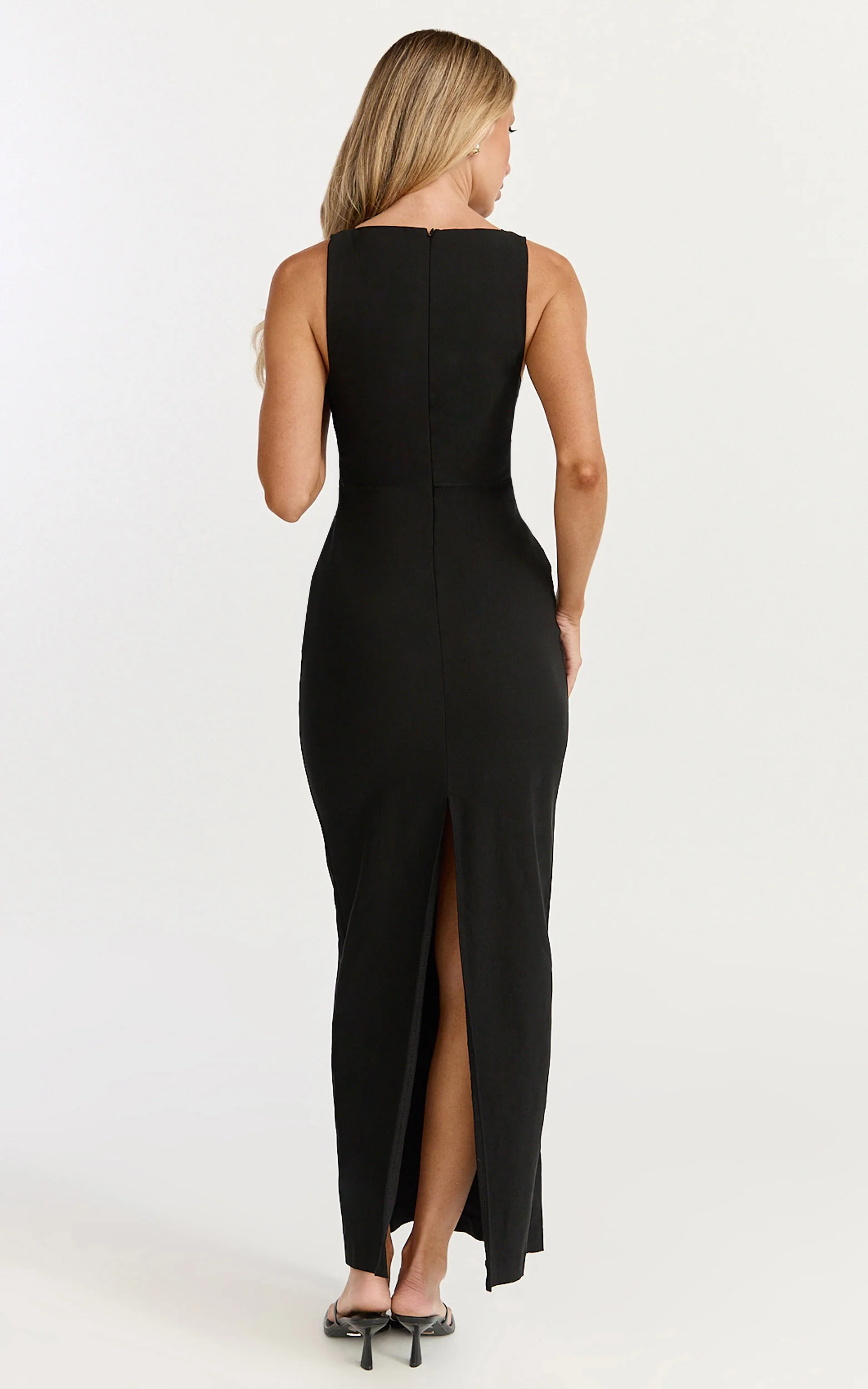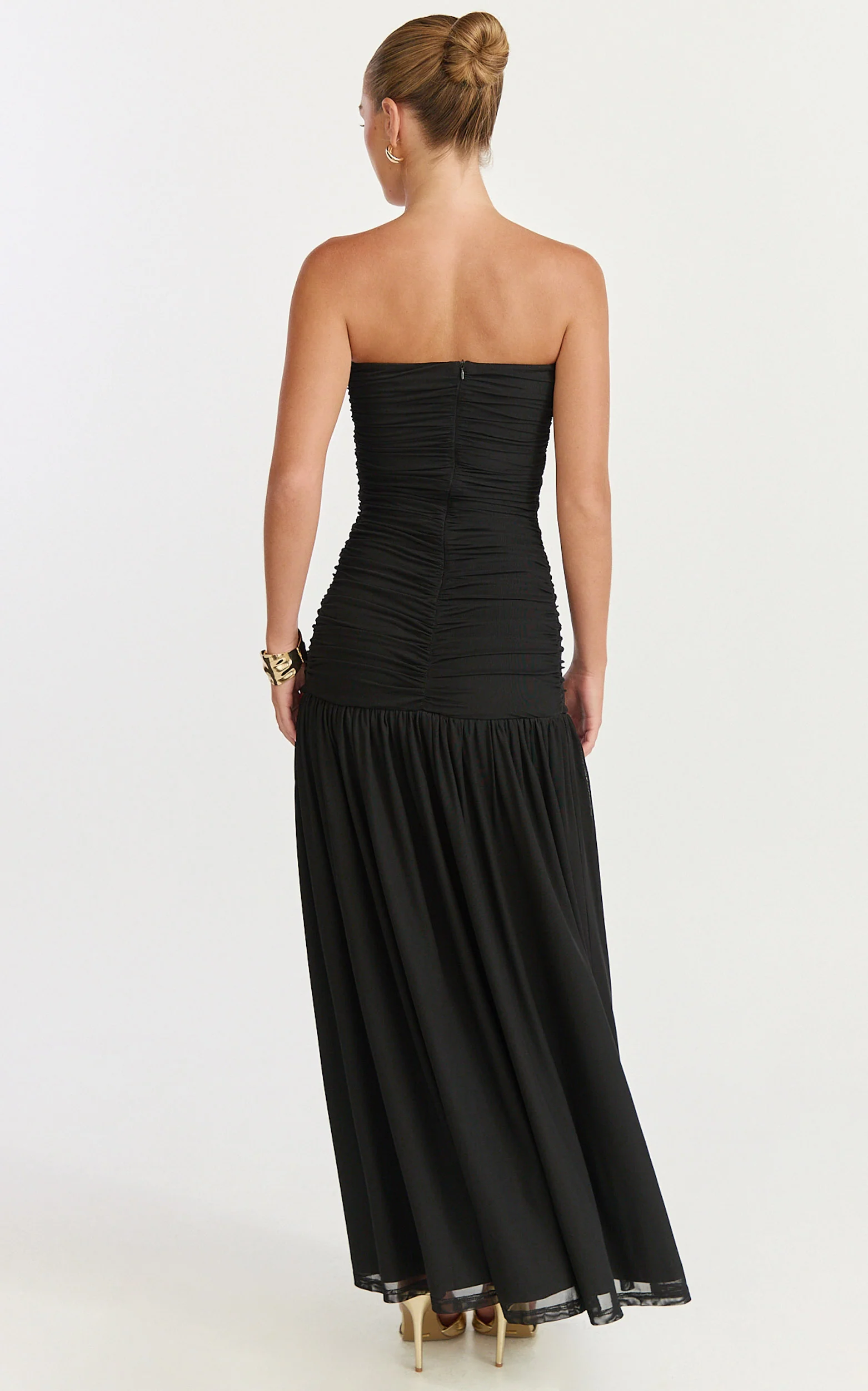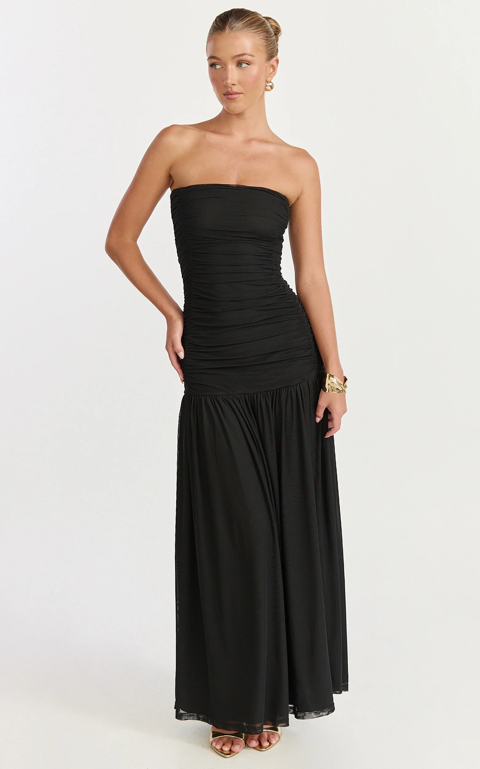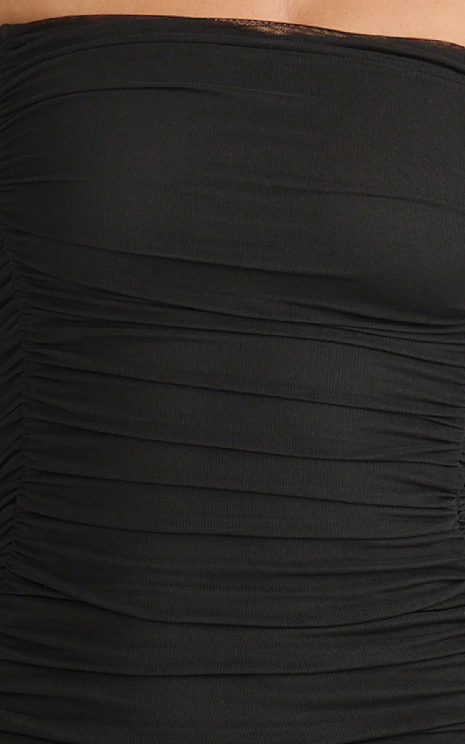 Lara Maxi Dress - Strapless Ruched Mesh High Leg Split Dress in Black