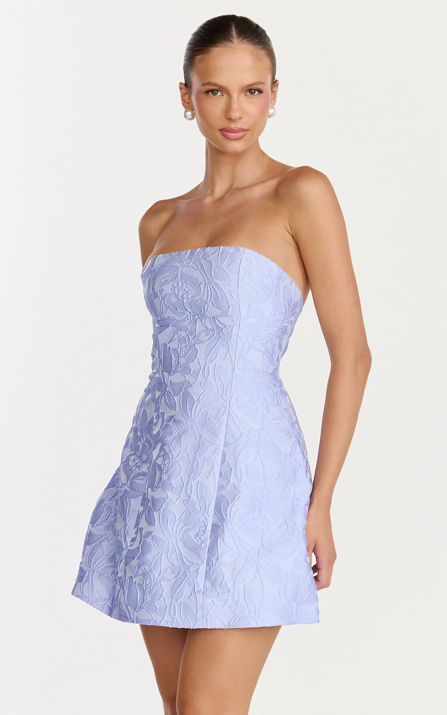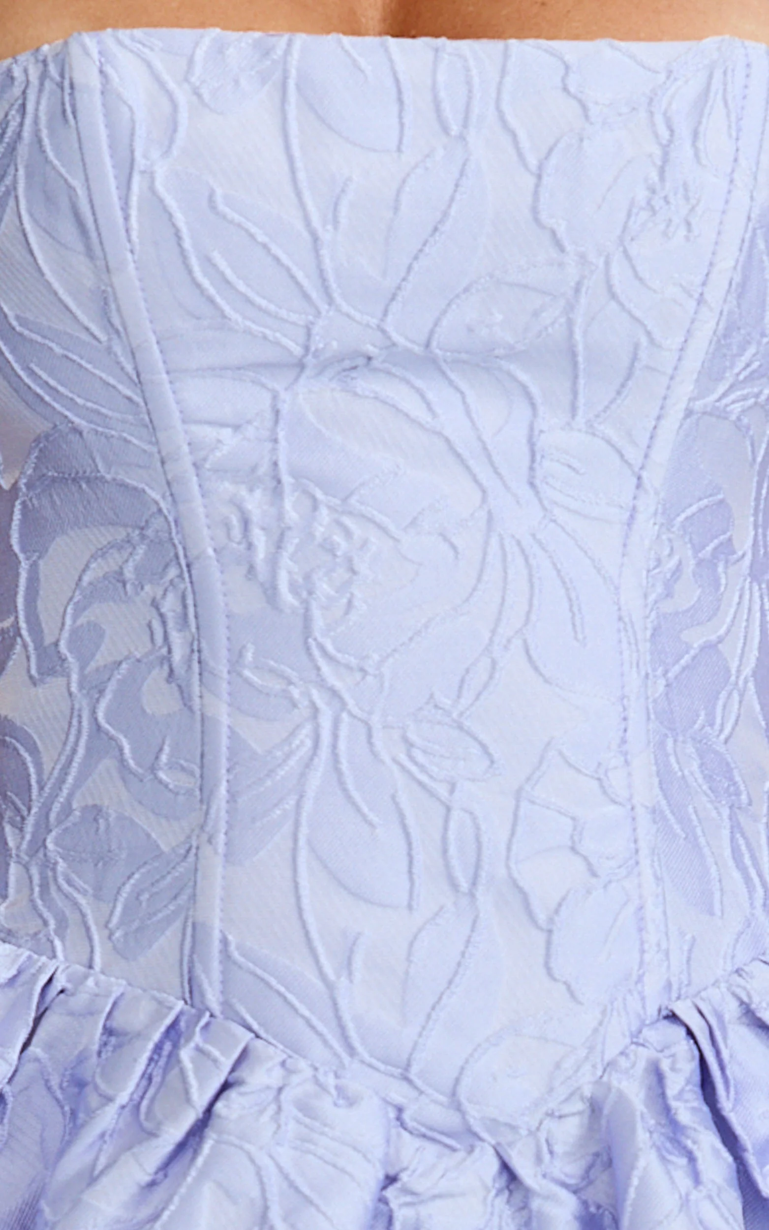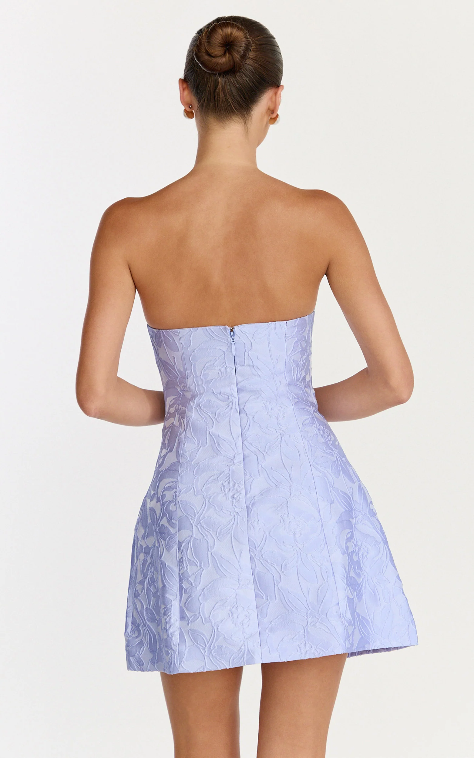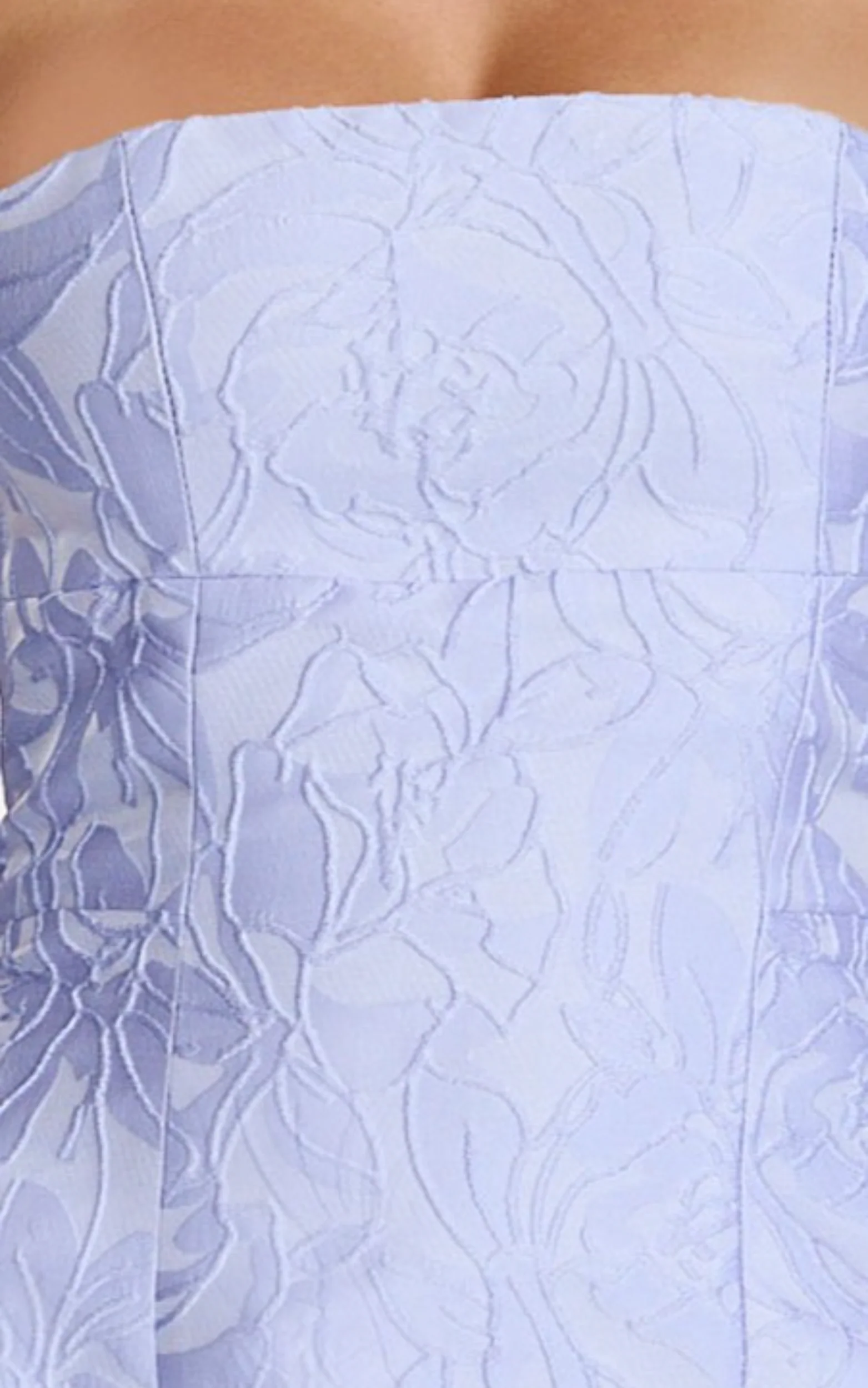 Rosalie Mini Dress - Strapless Jacquard Floral Mini Dress in Blue