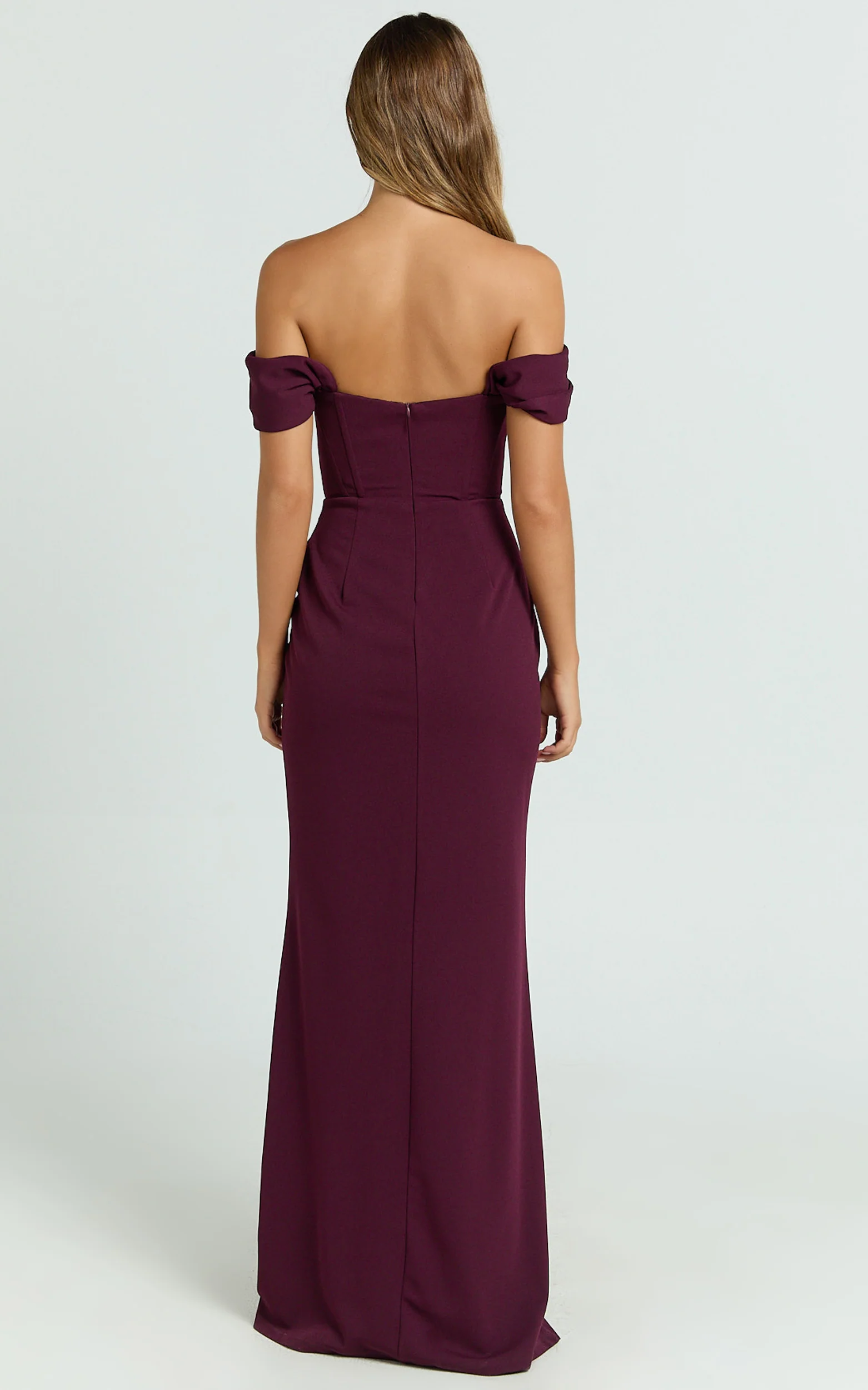 Marcel Maxi Dress - Off Shoulder Corset High Split Dress in Wine