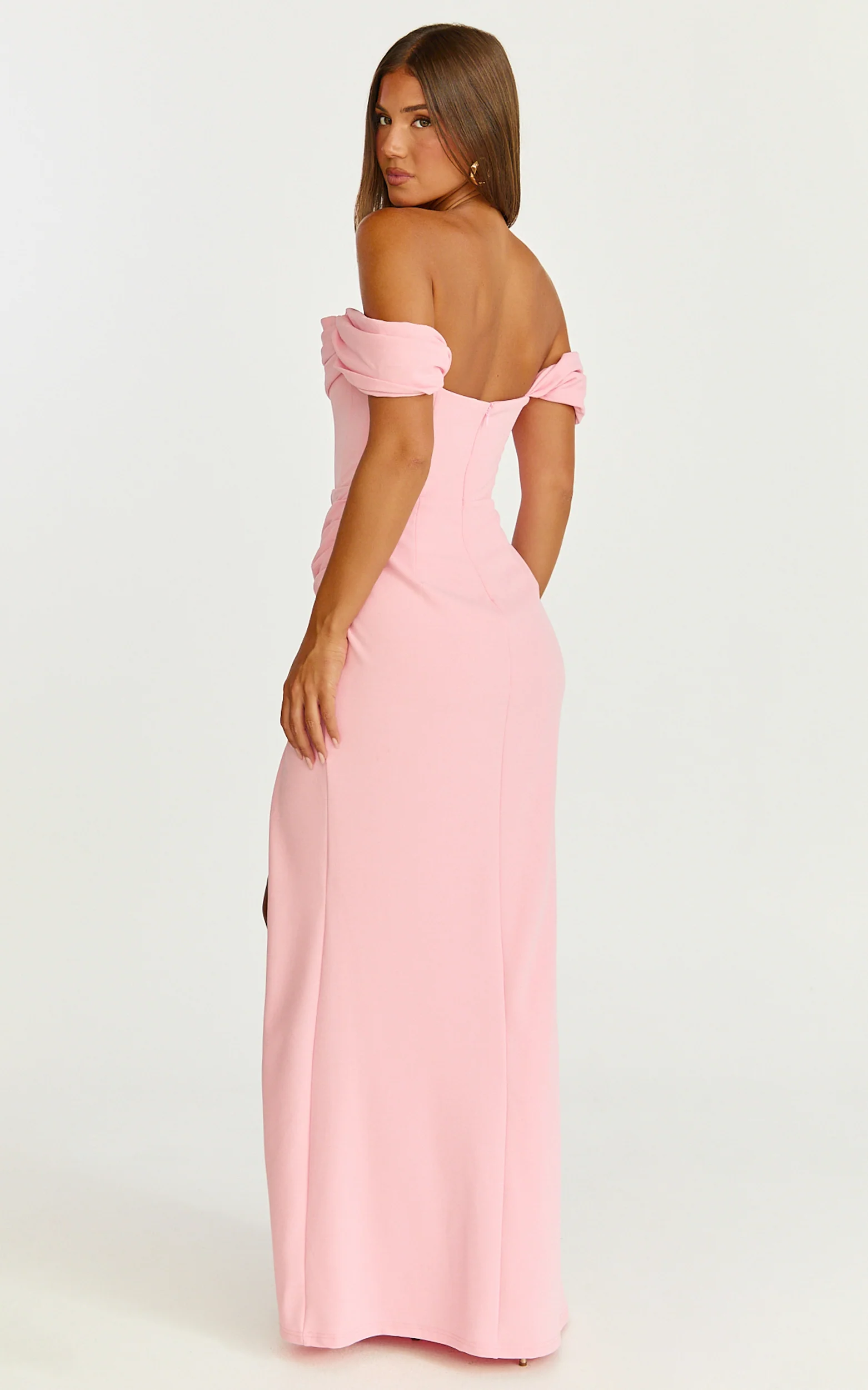 Marcel Maxi Dress - Off Shoulder Corset High Split Dress in Pink
