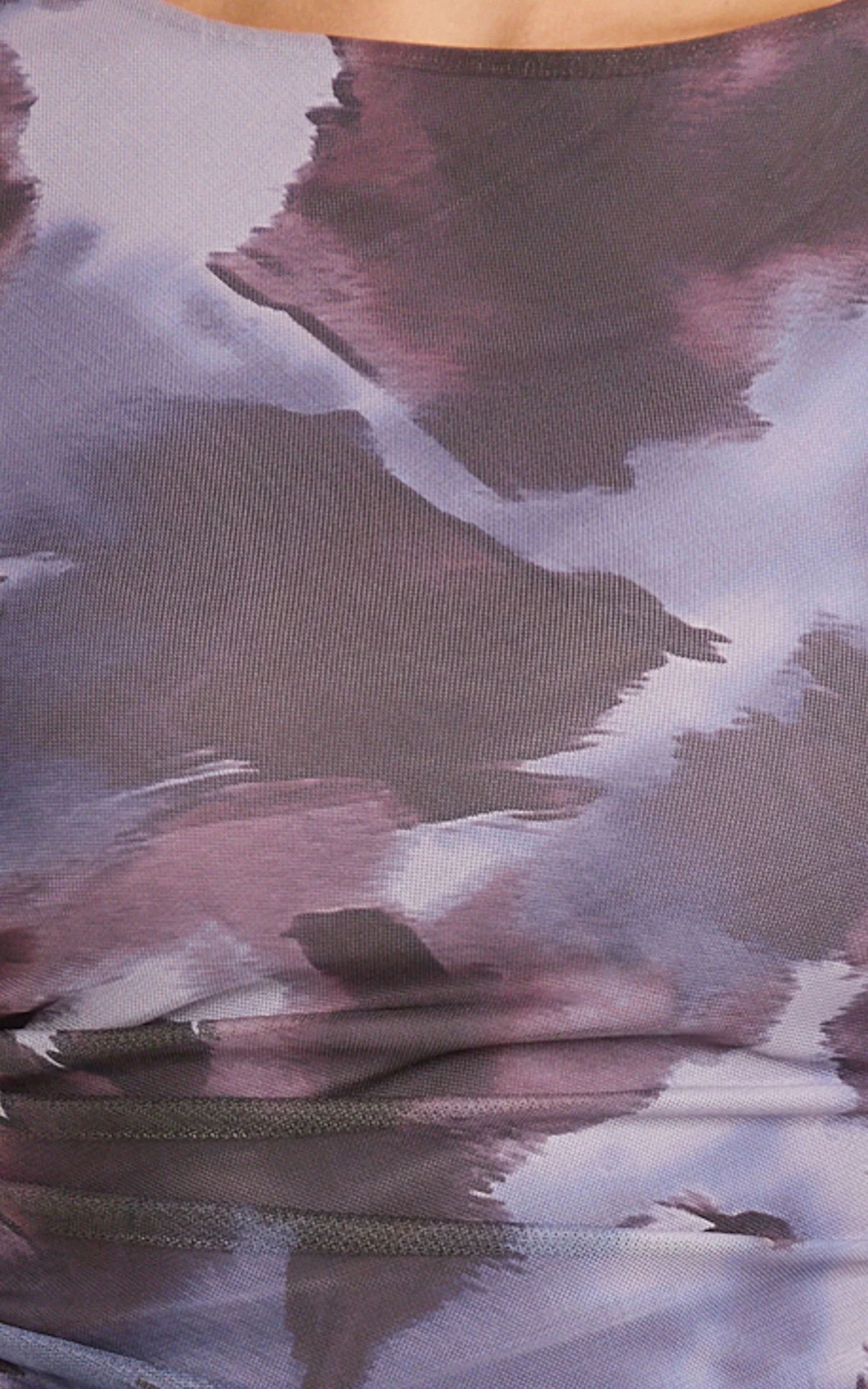 Nica Mini Dress - Mesh Boat Neck Dress in Blue Blur