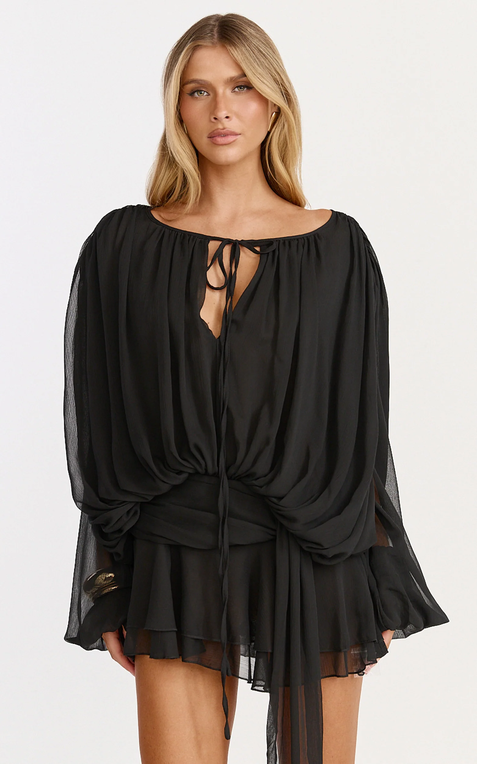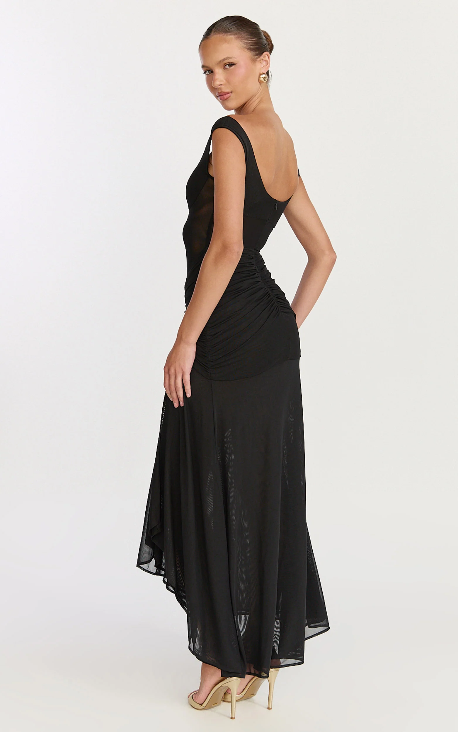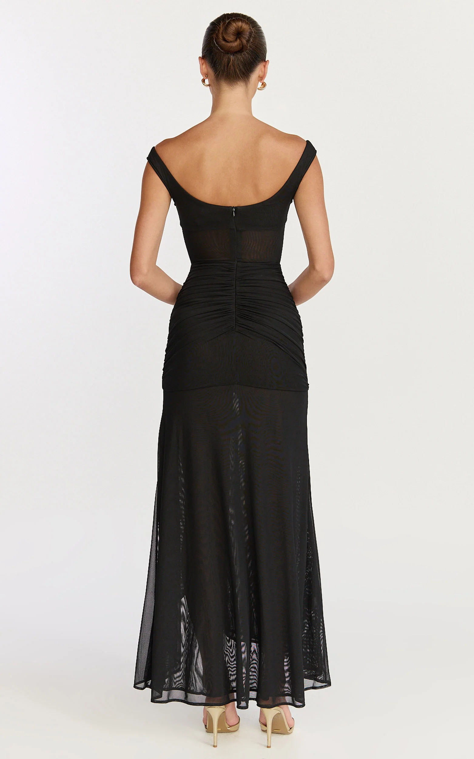 Demetria Maxi Dress - Mesh Bodycon Dress in Black