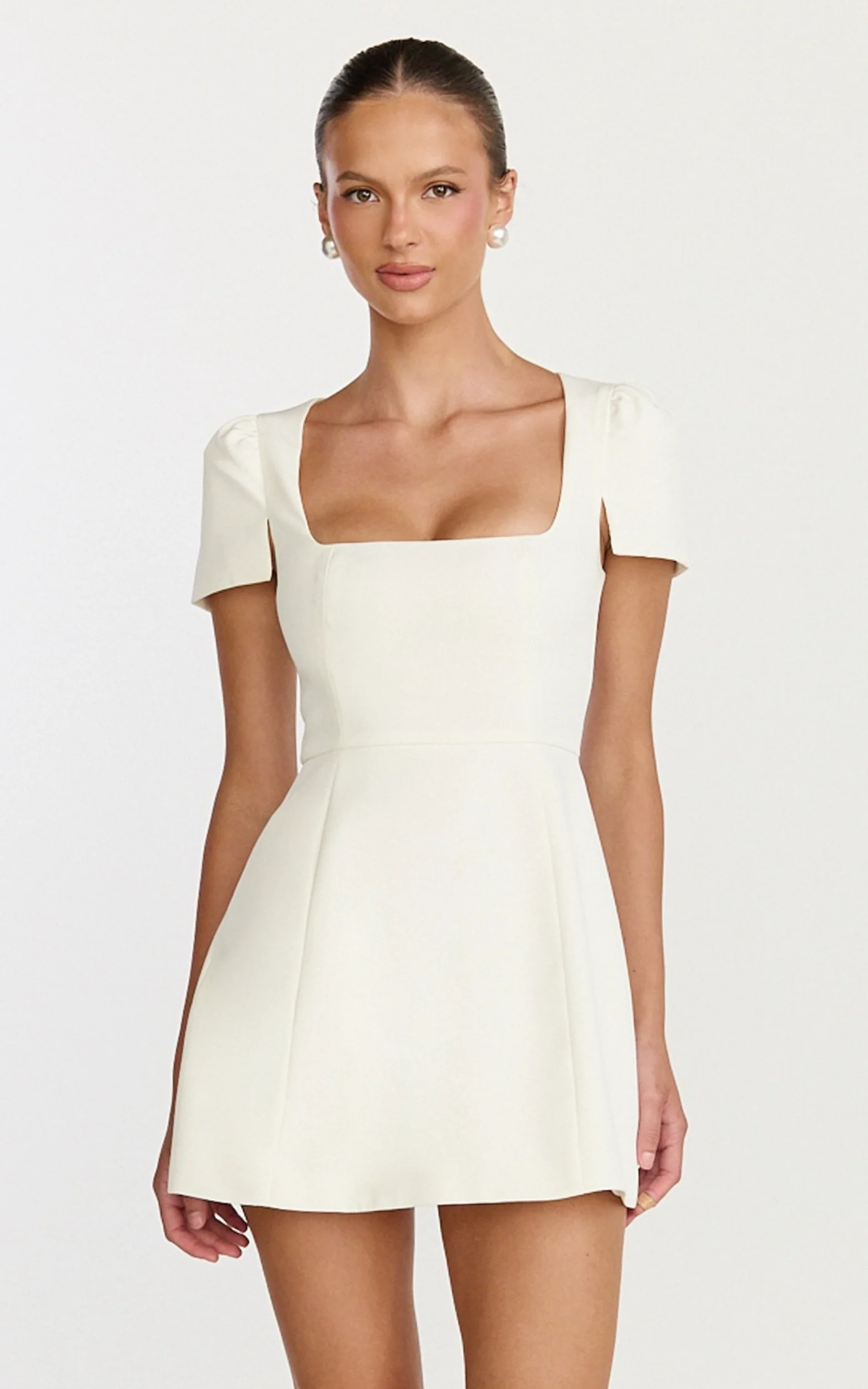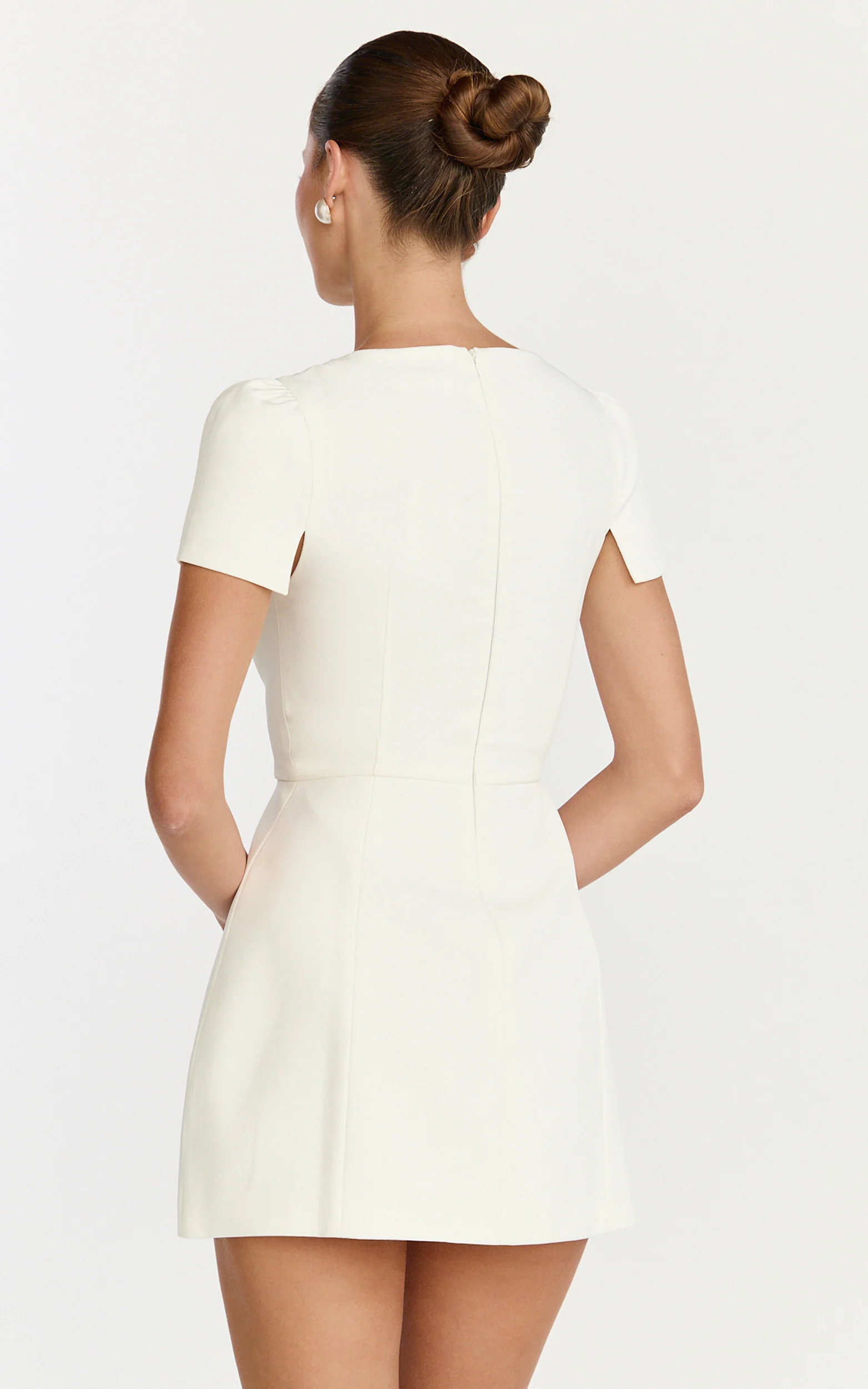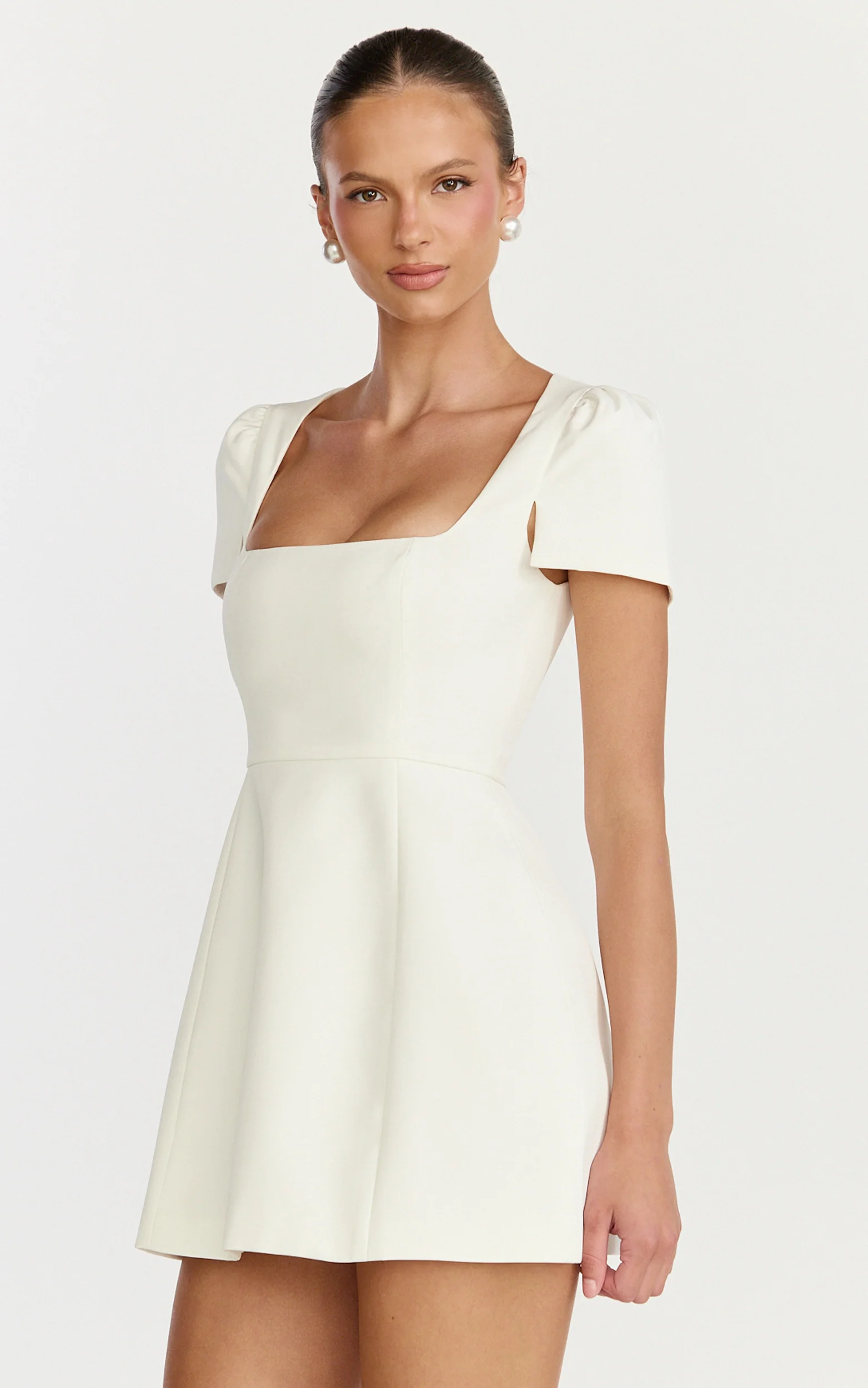 Zinnia Mini Dress - Square Neck Tulip Dress in White