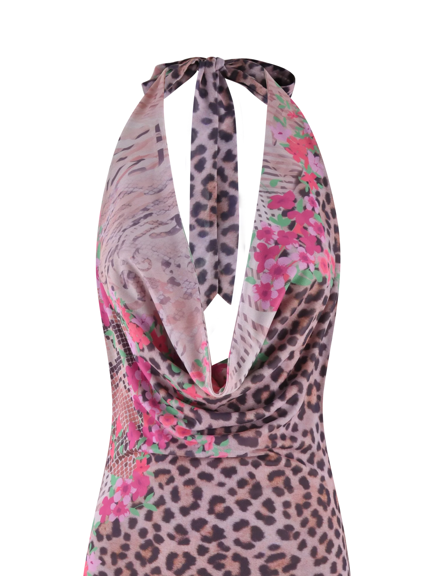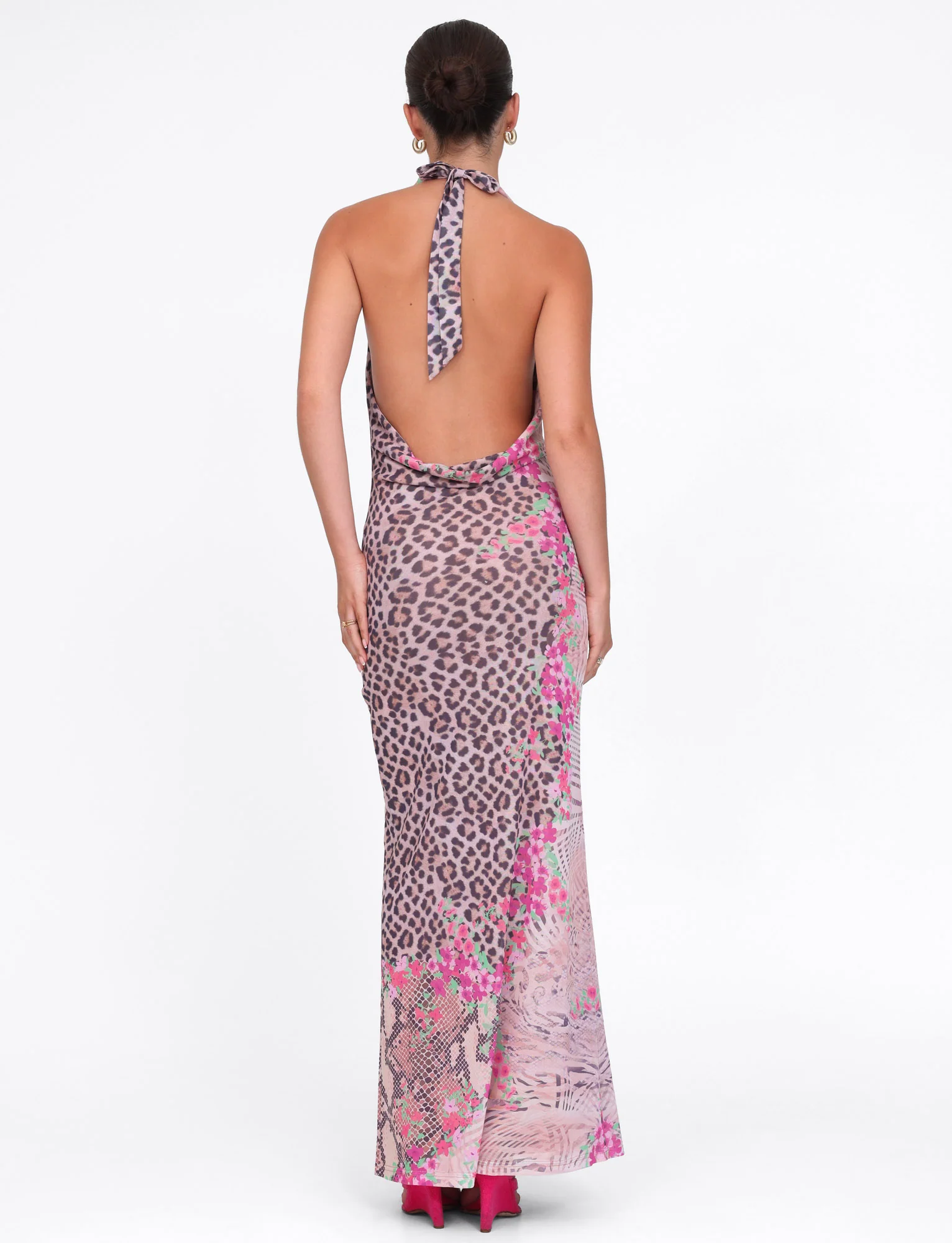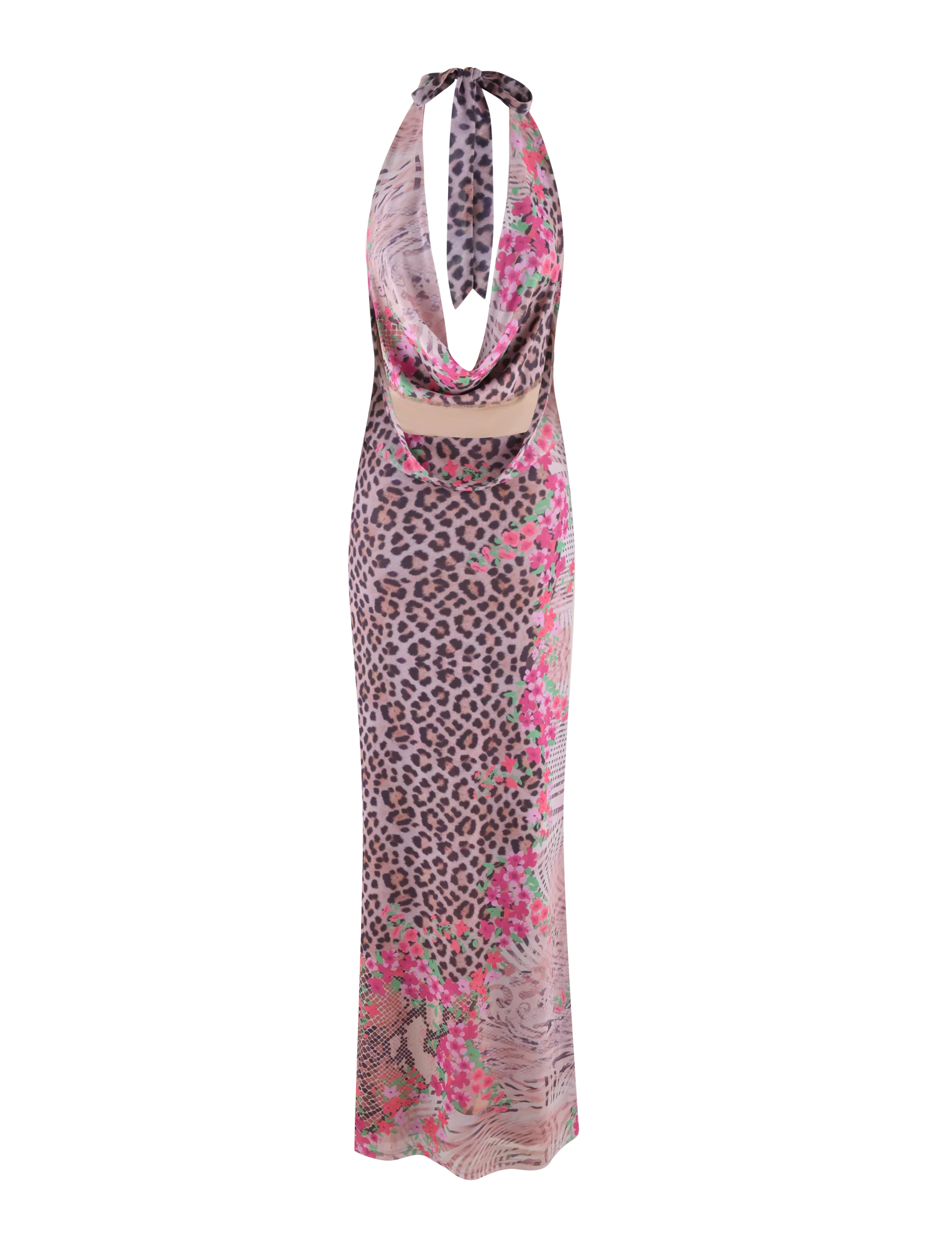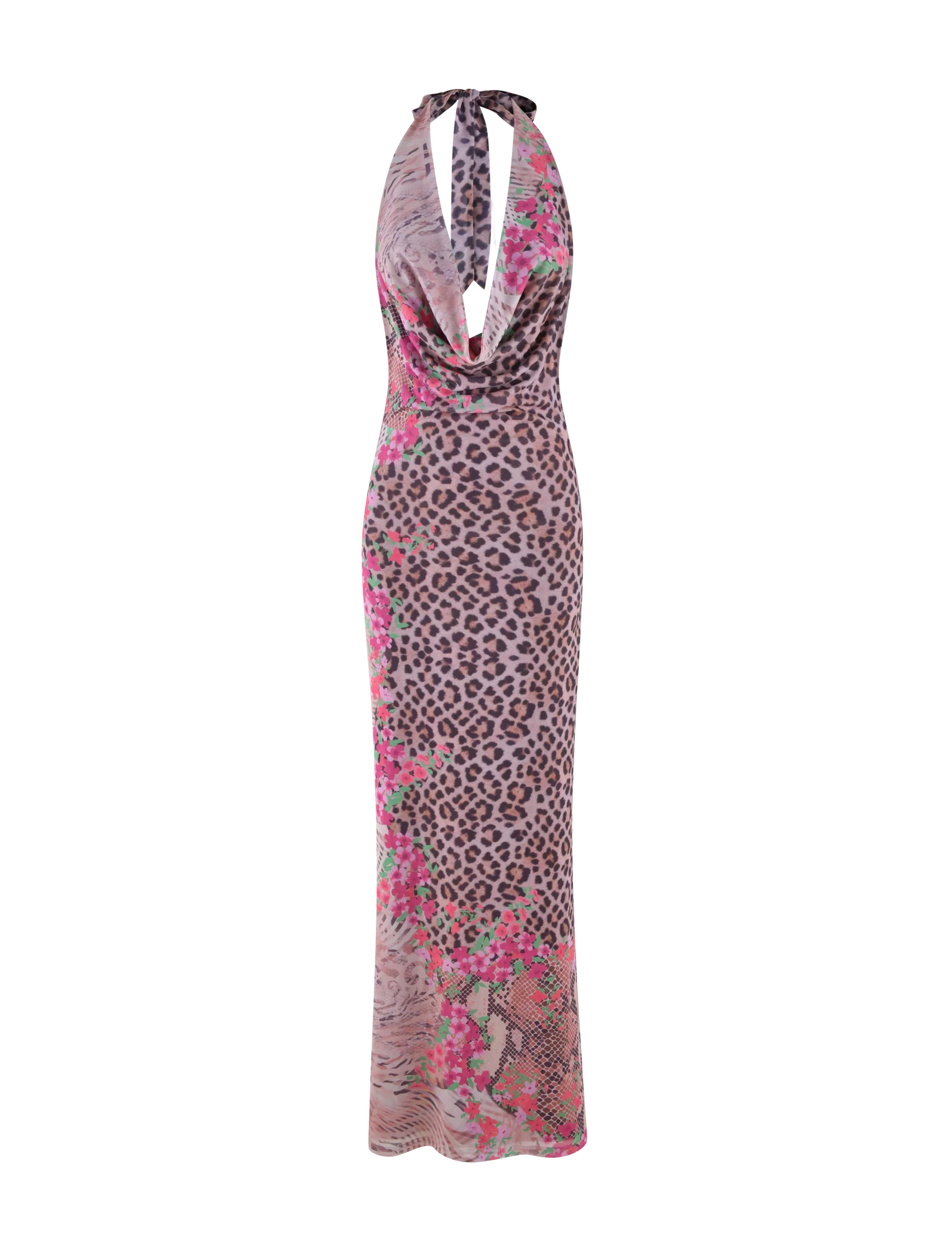 CATALINA MAXI DRESS - NEUTRAL : ANIMAL : ANIMAL FLORAL BORDER