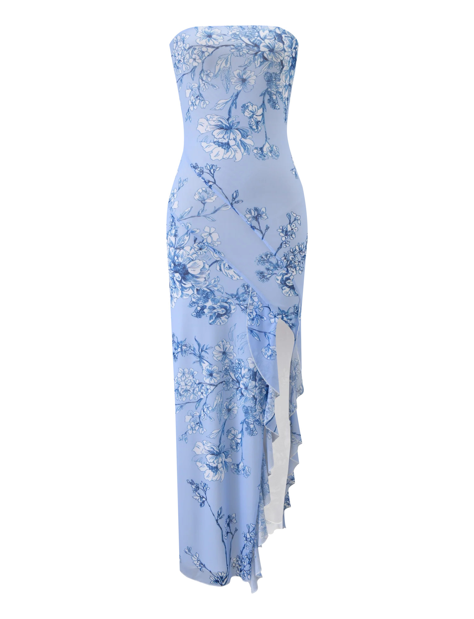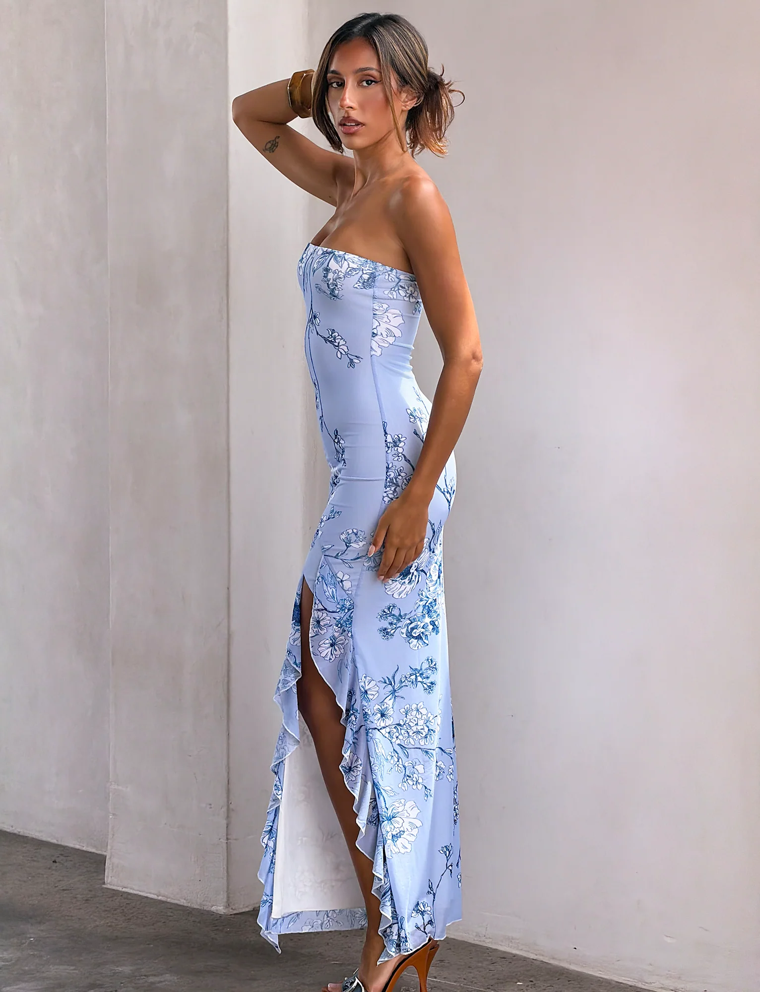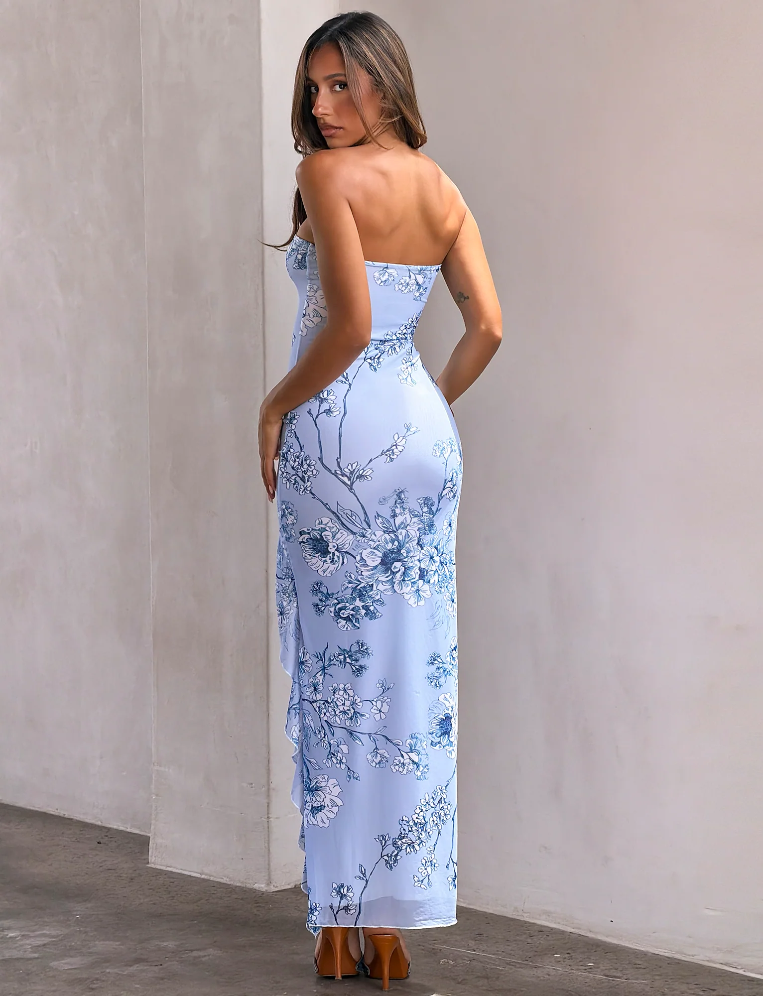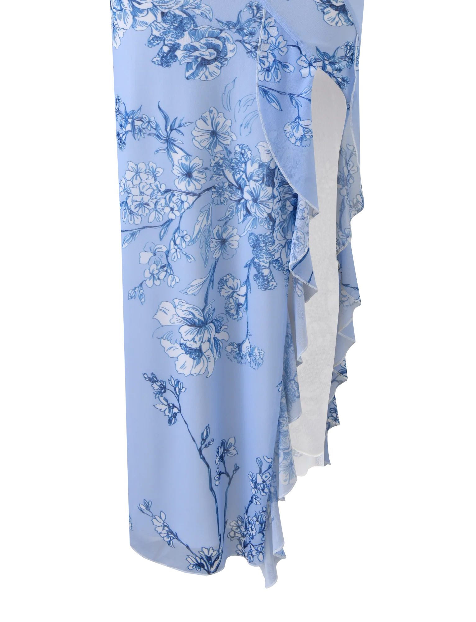 ARDON MAXI DRESS - BLUE : MACRO FLORAL : BLUE HIBISCUS