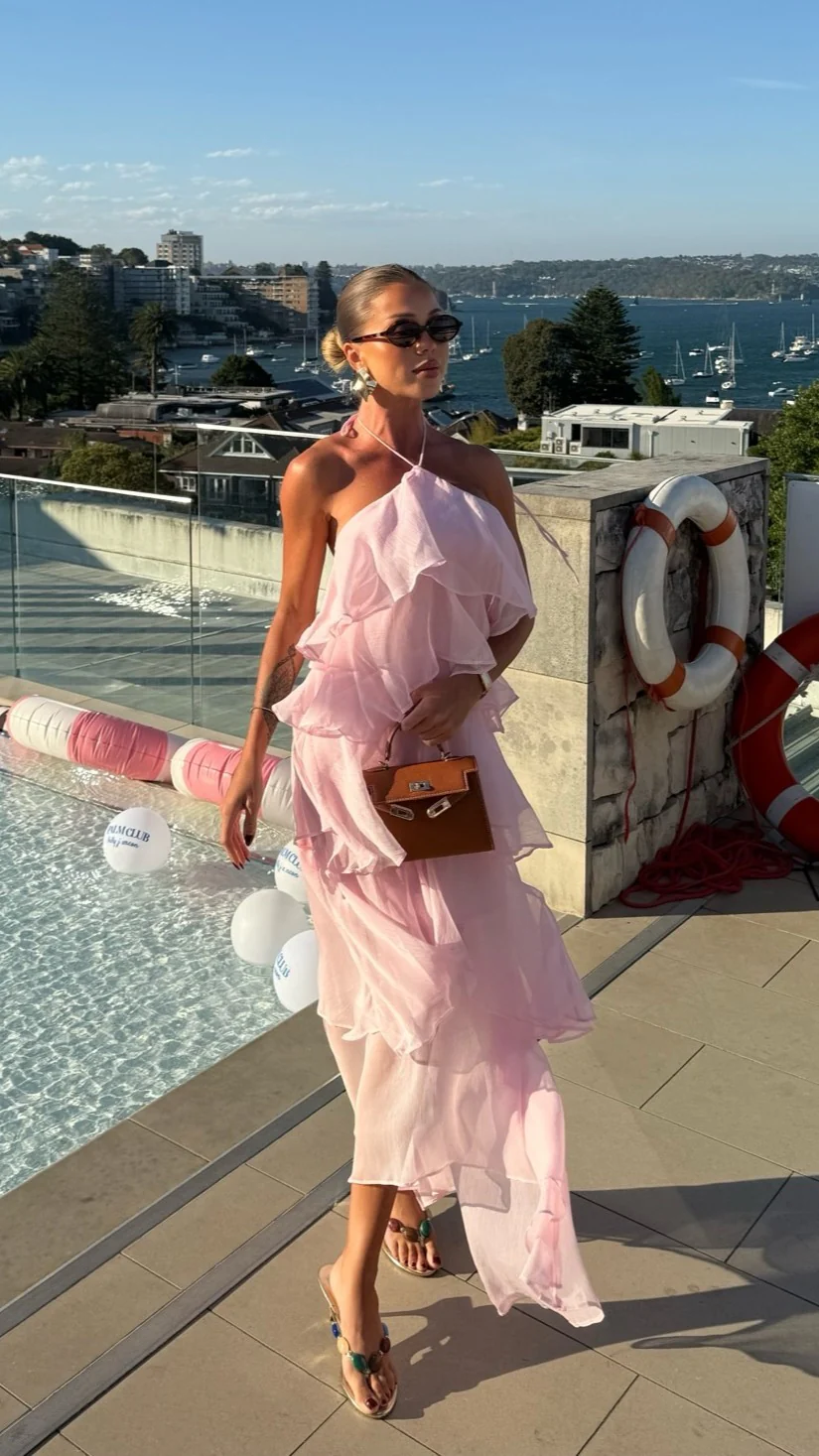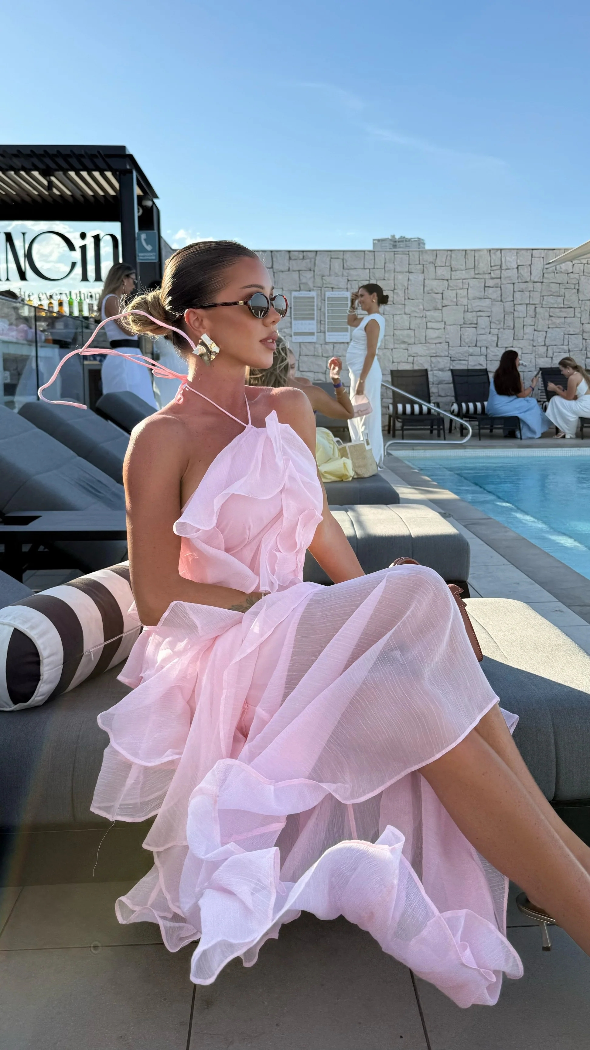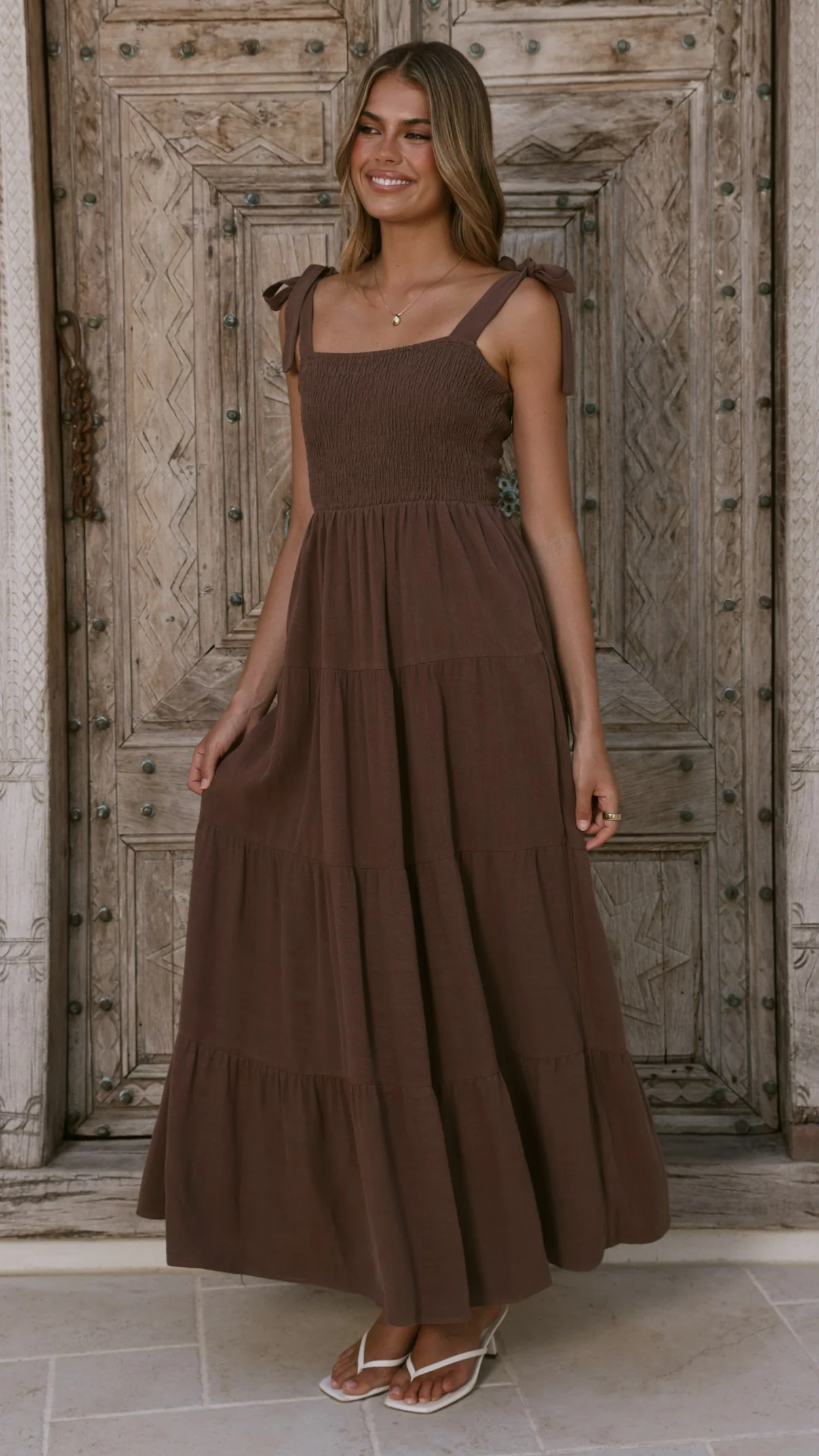 Cataleya Maxi Dress - Brown/Blue Polka Dot