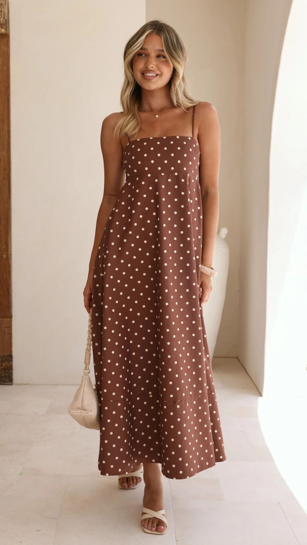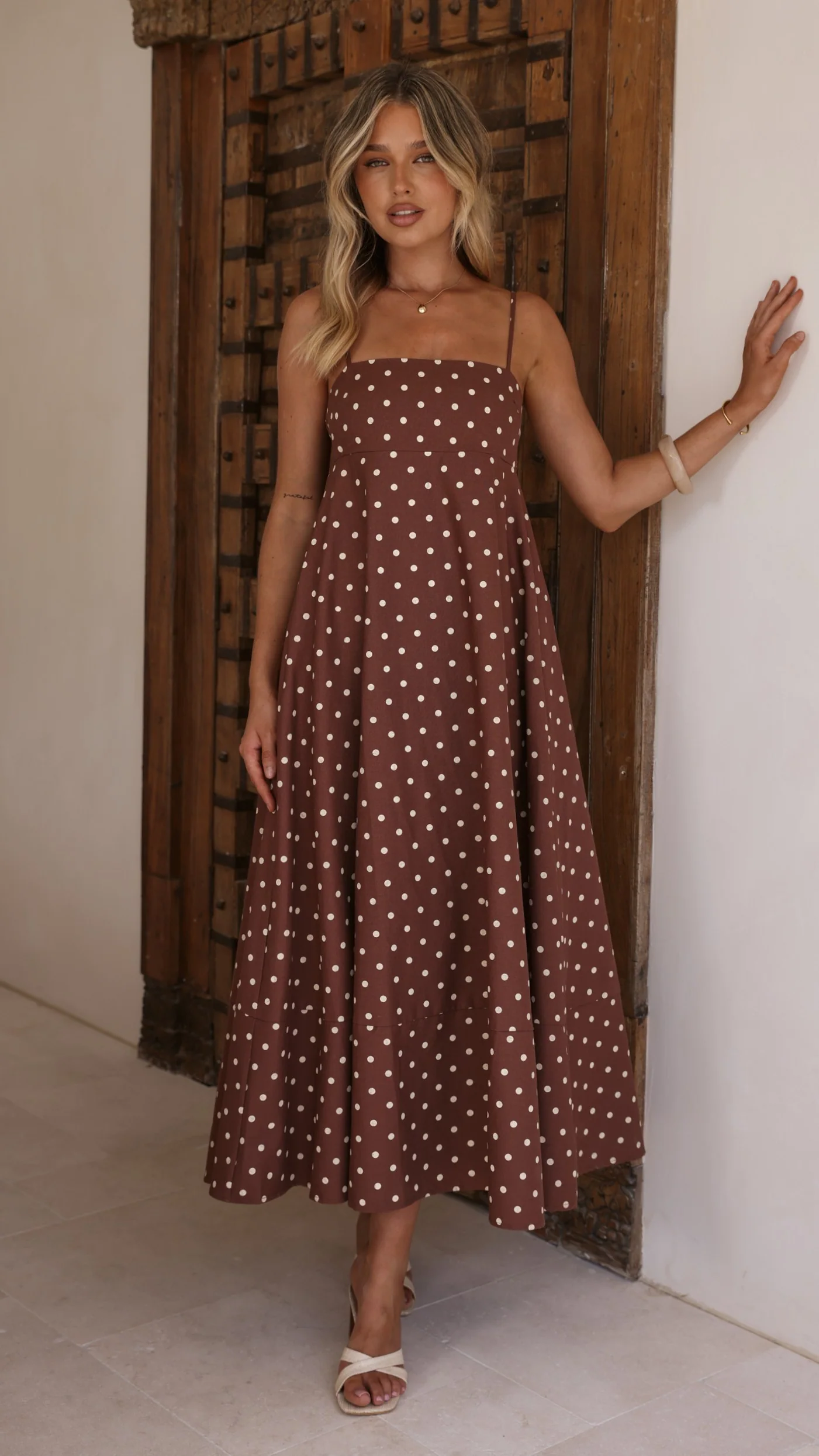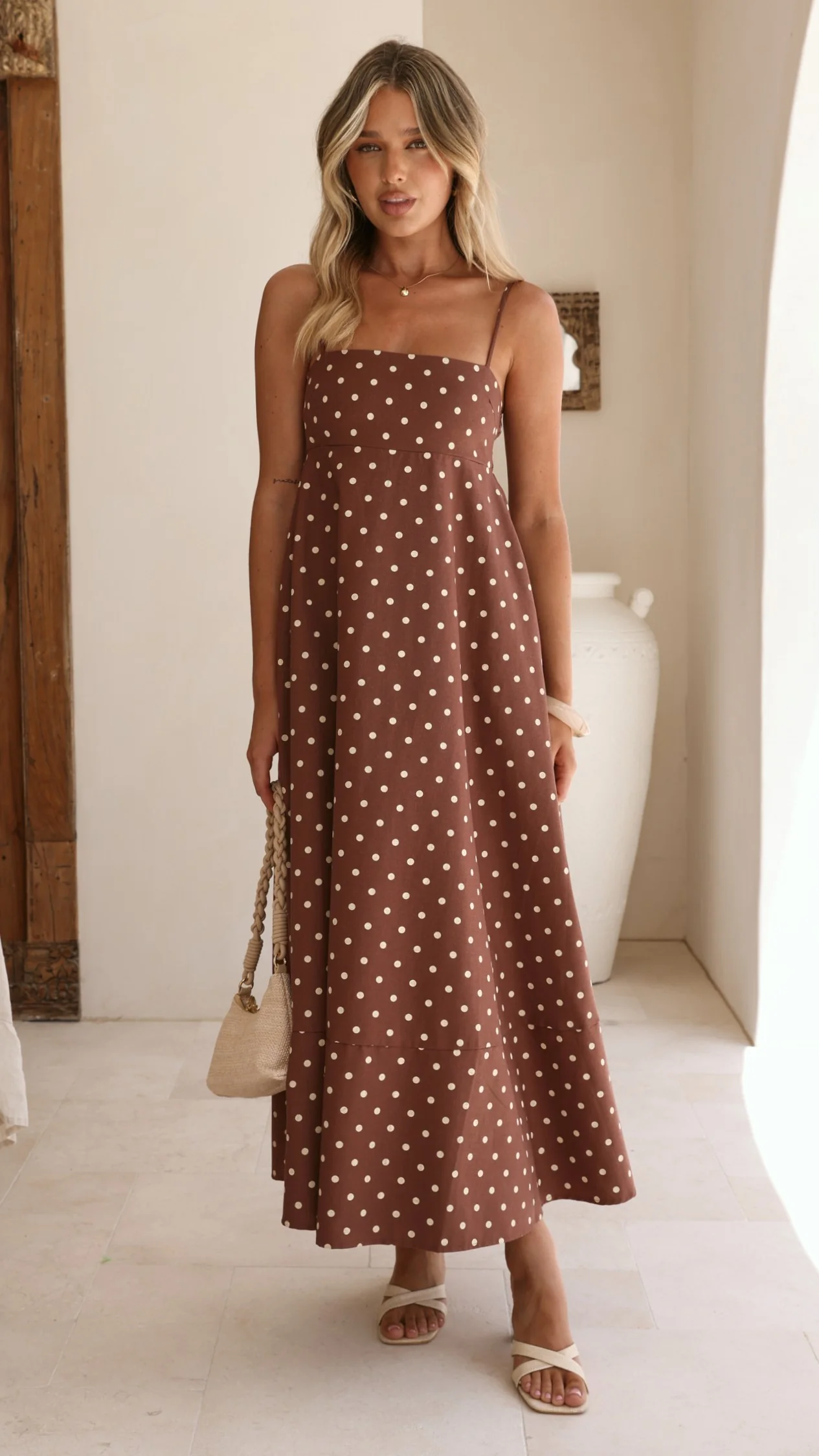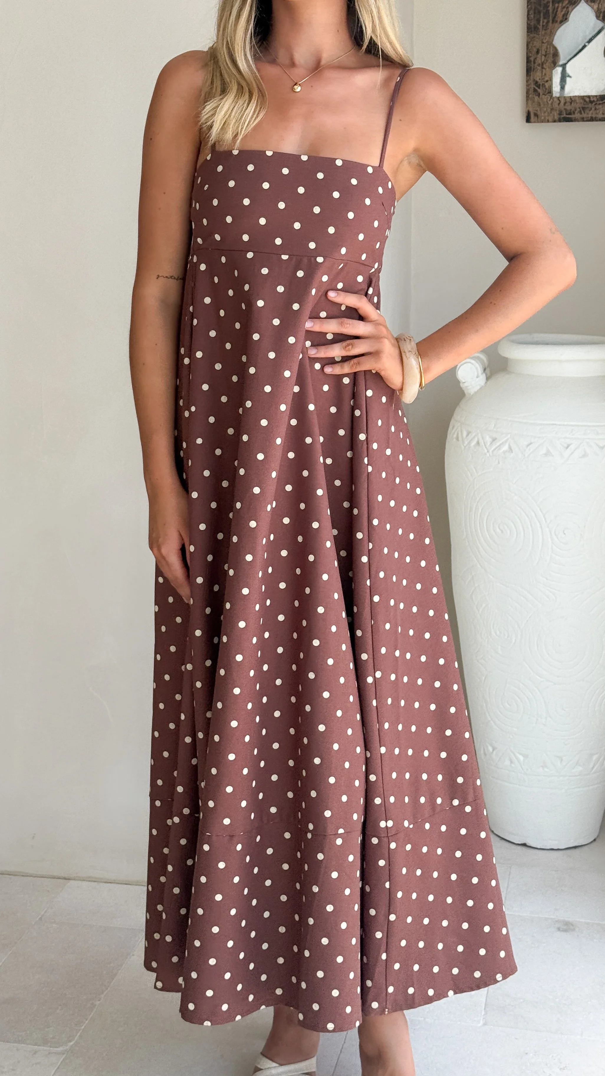 Elie Maxi Dress - Chocolate/Cream Polka Dot