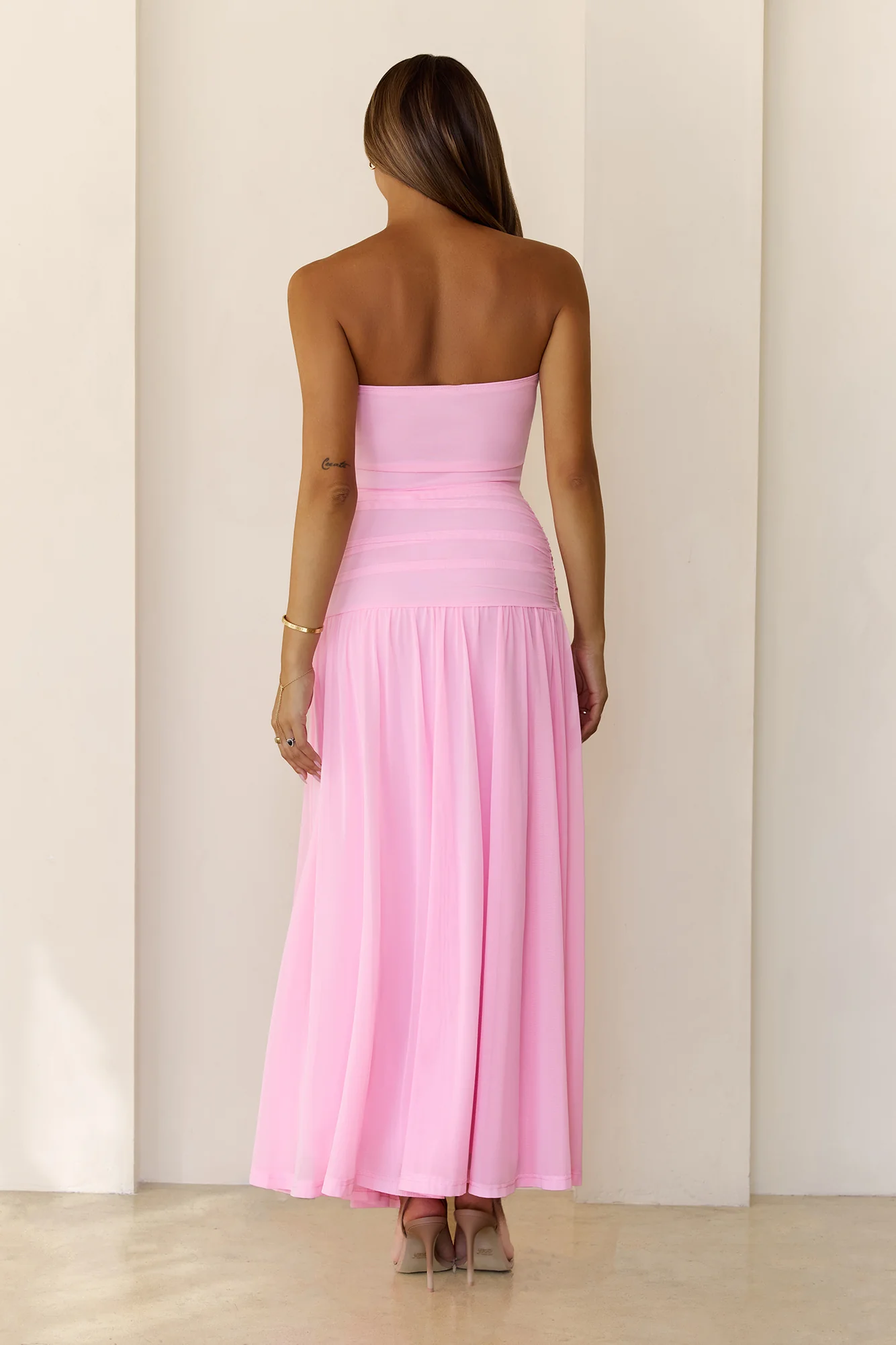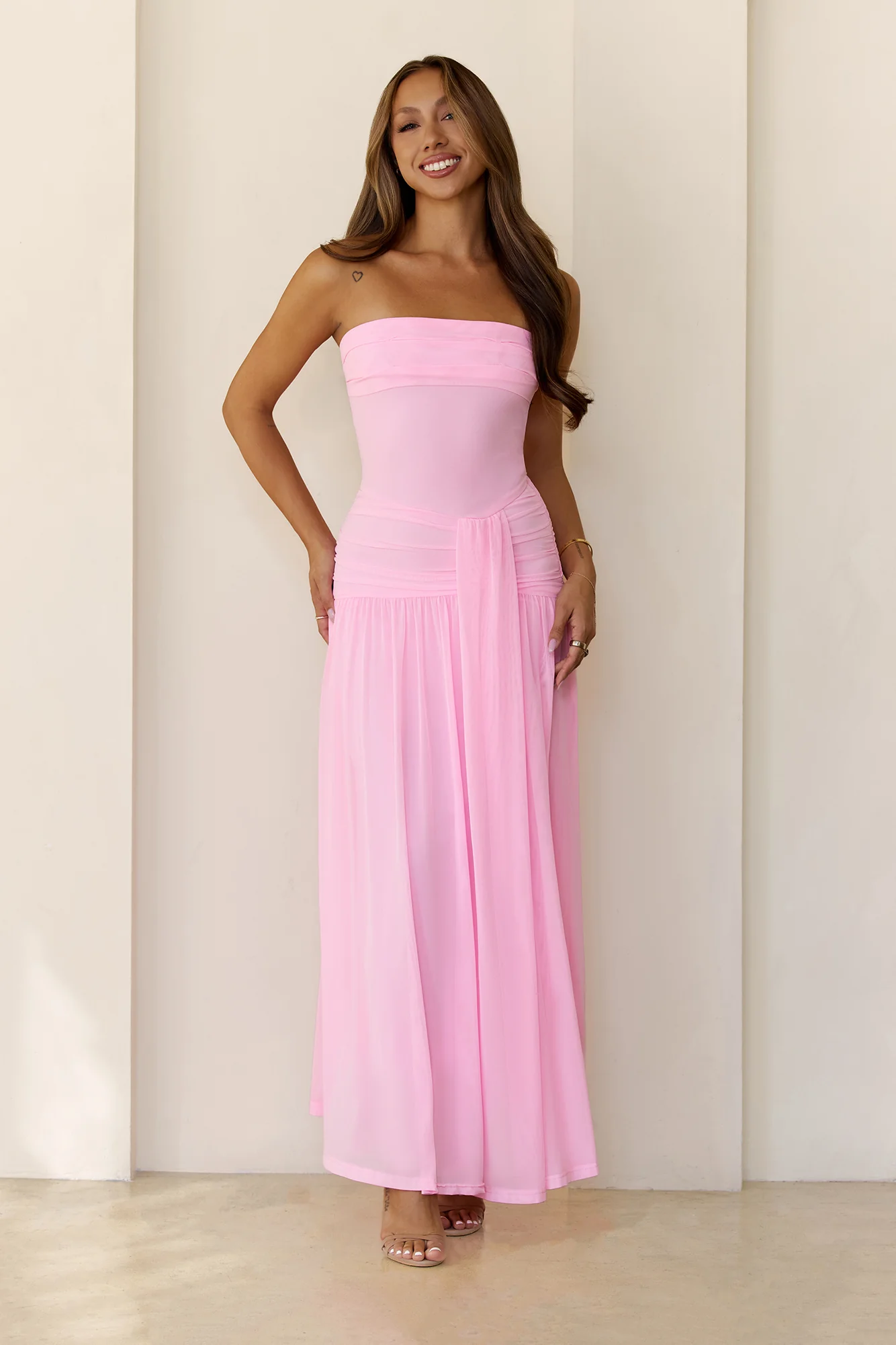 Spark Night Strapless Mesh Maxi Dress Pink