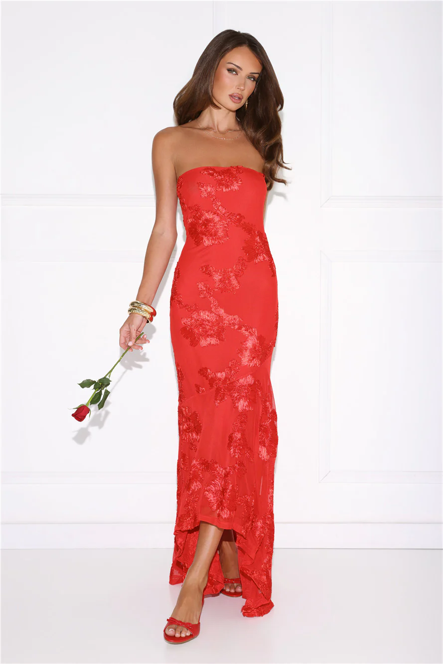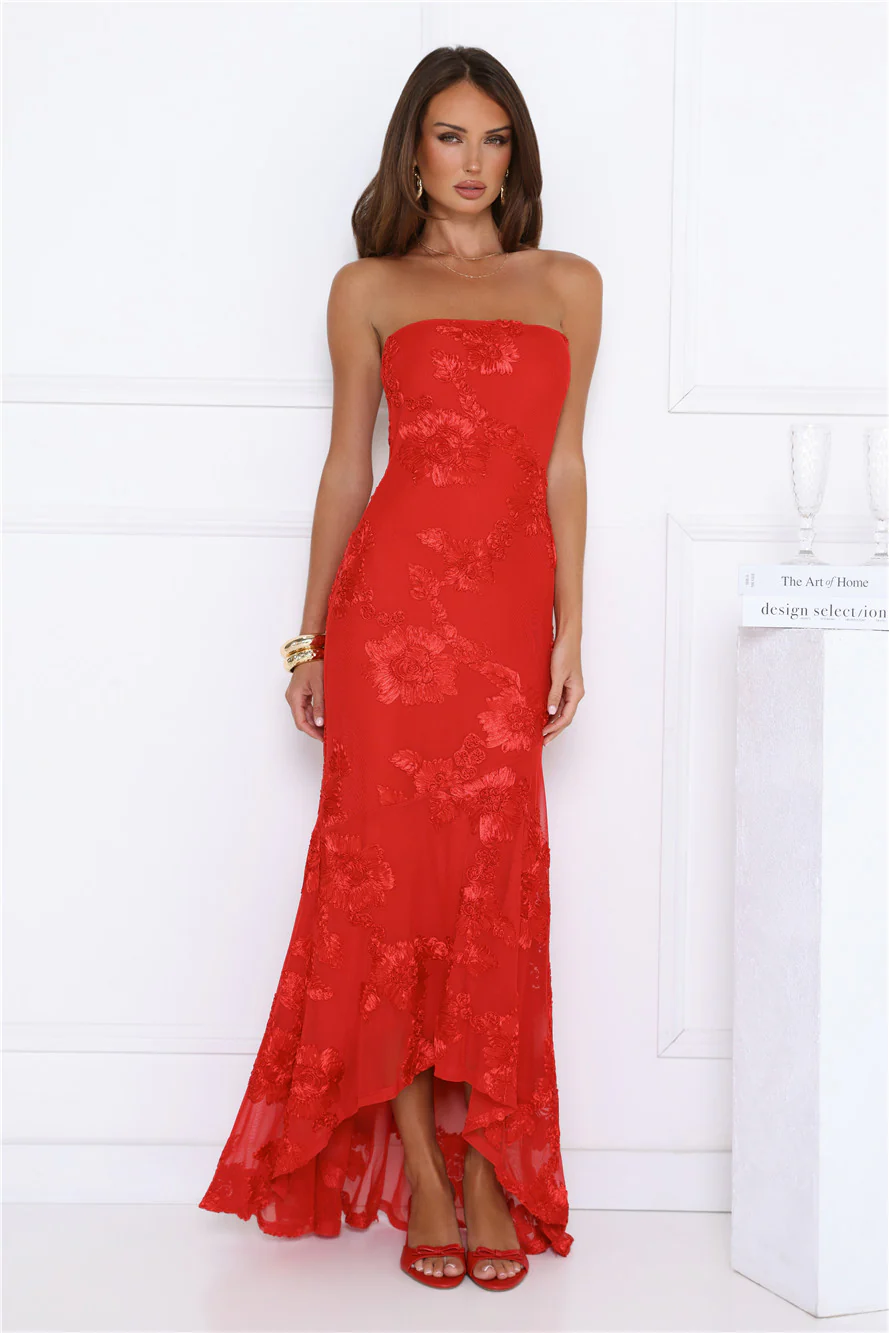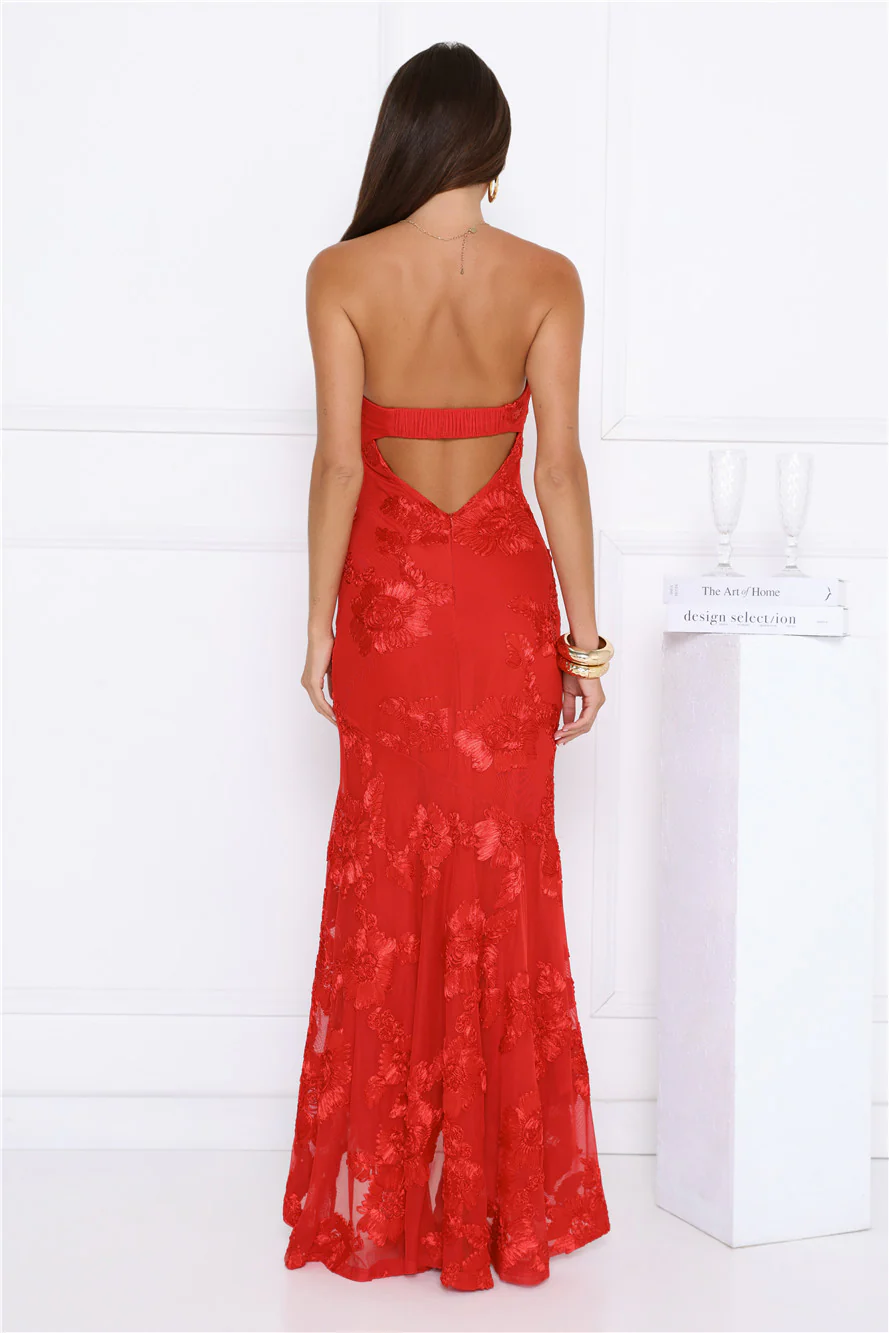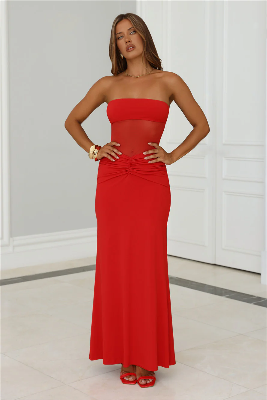 Babe Energy Strapless Maxi Dress Red