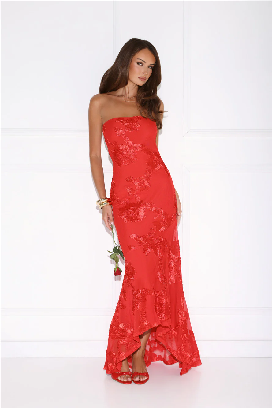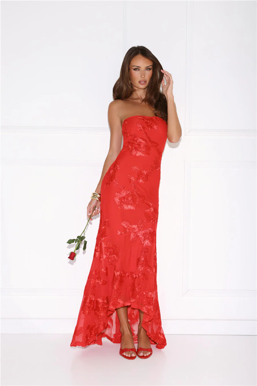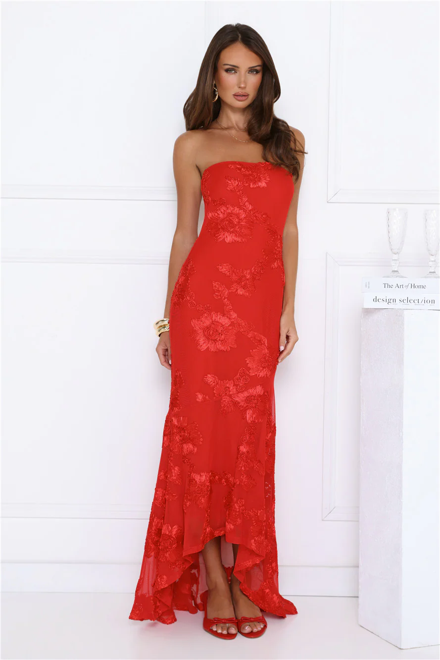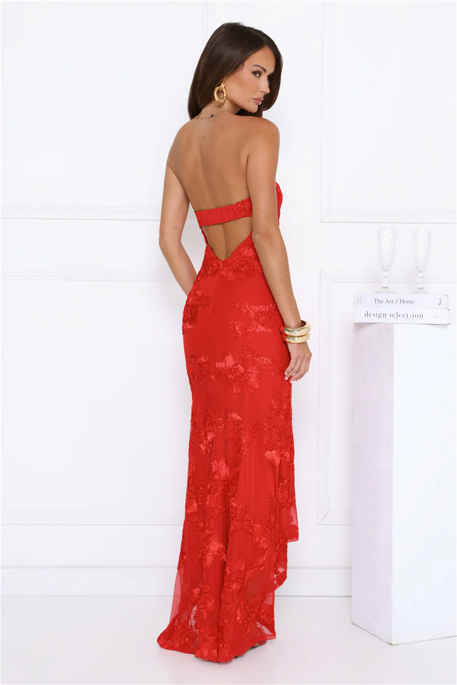 Babe Energy Strapless Maxi Dress Red