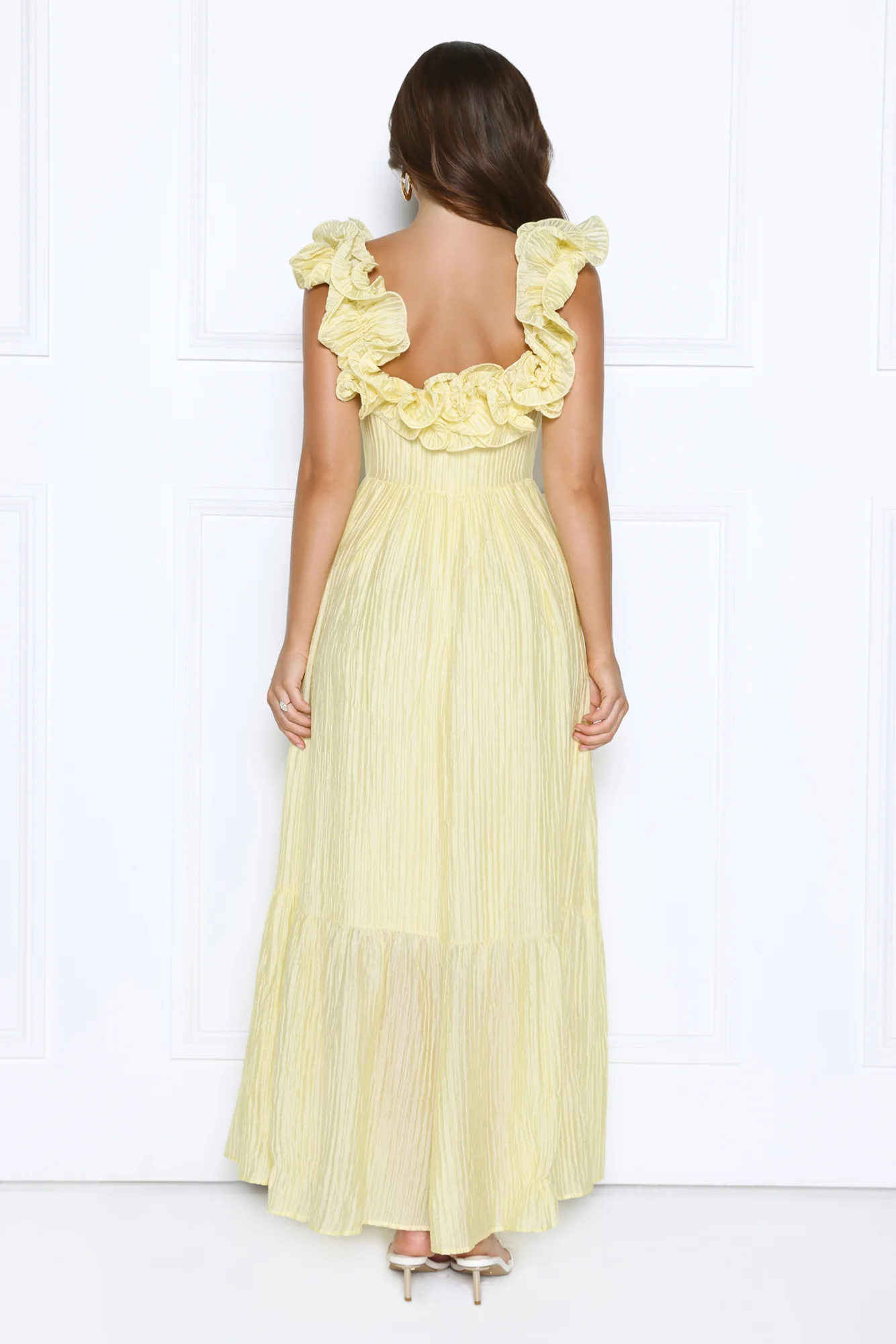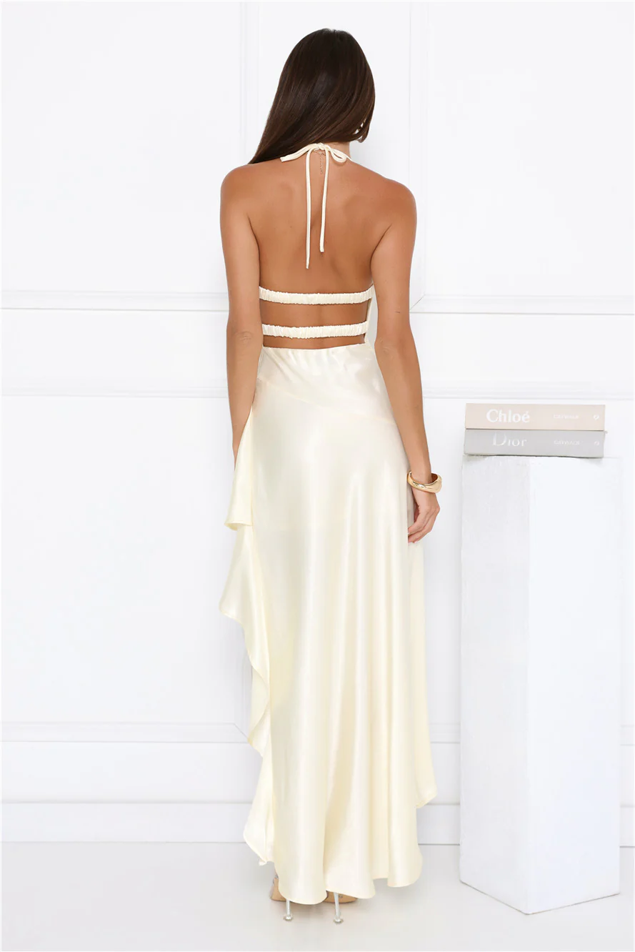 Shimmer Shake Halter Satin Maxi Dress Yellow