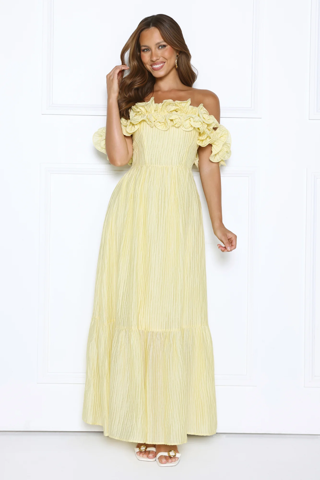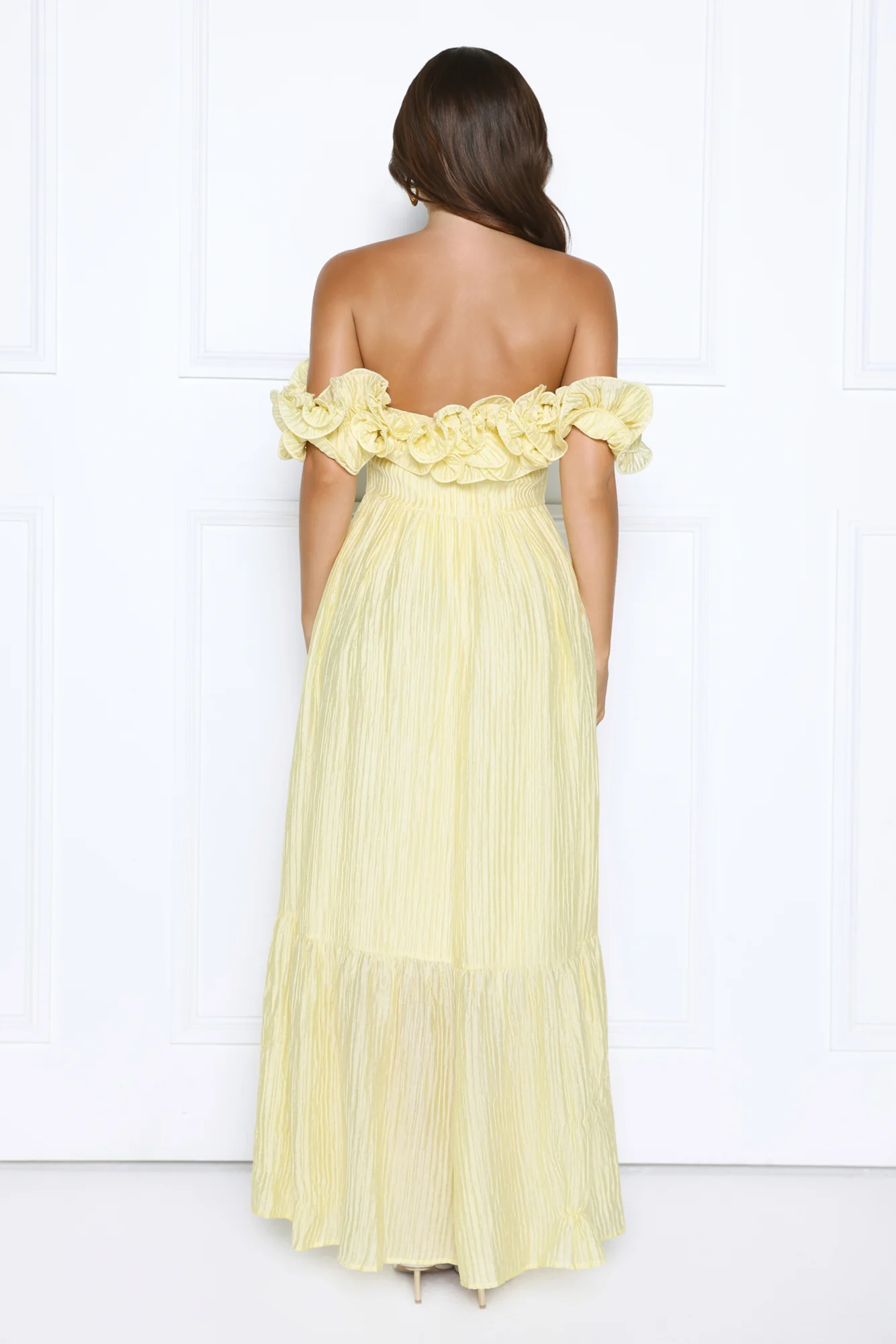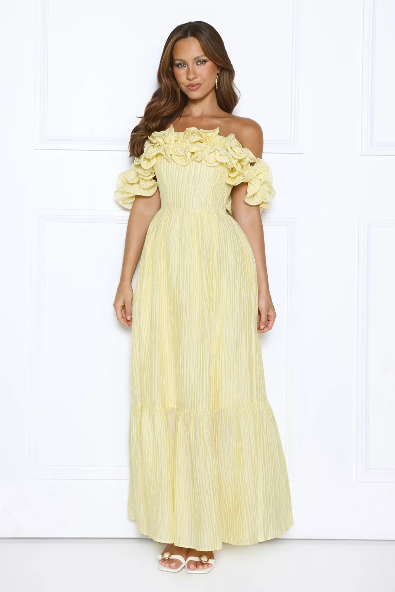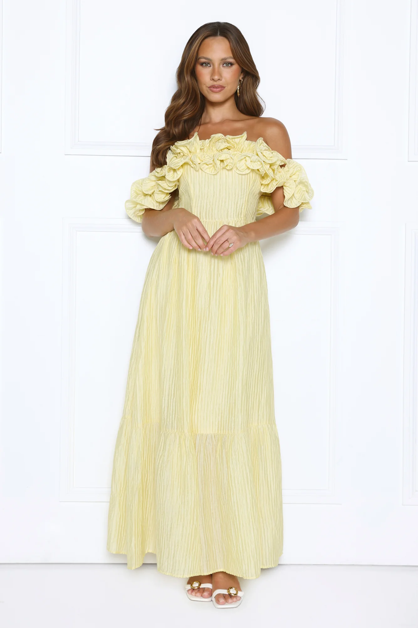 Magnetic Energy Off Shoulder Maxi Dress Yellow