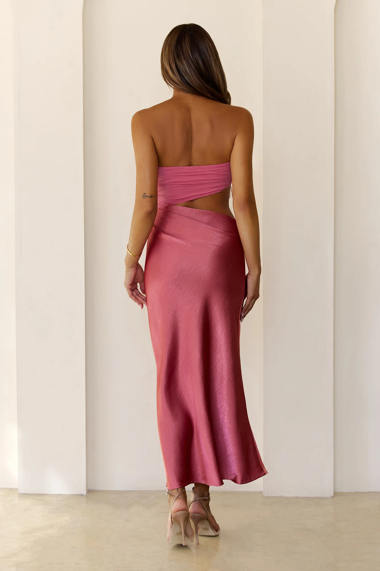 Dusk Luxe Satin Strapless Maxi Dress Rose