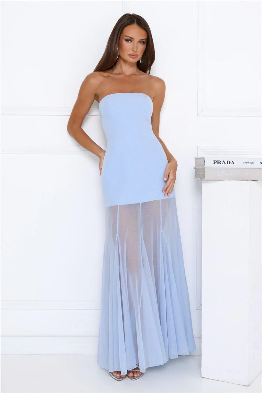 Dewkissed Bloom Strapless Maxi Dress Blue