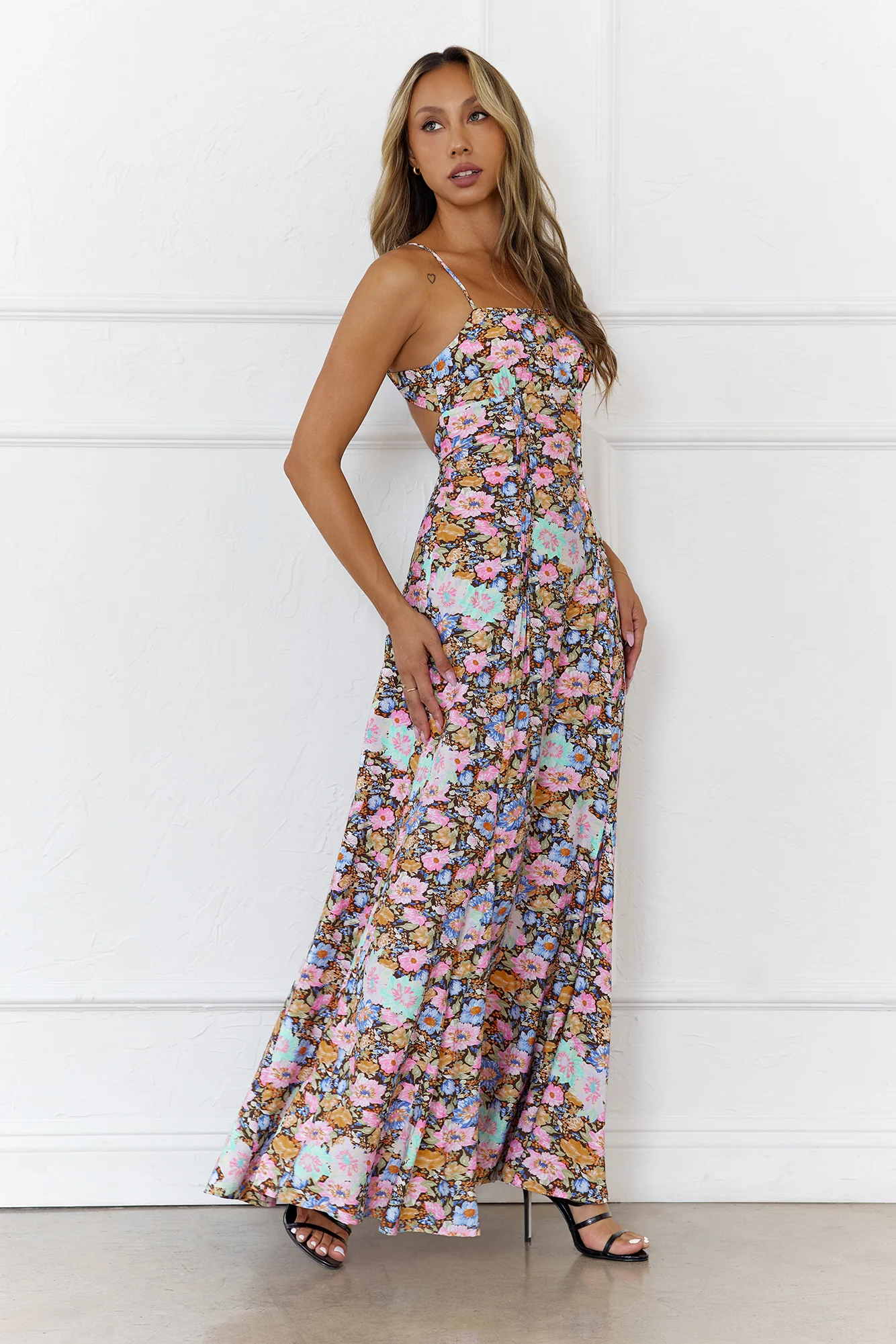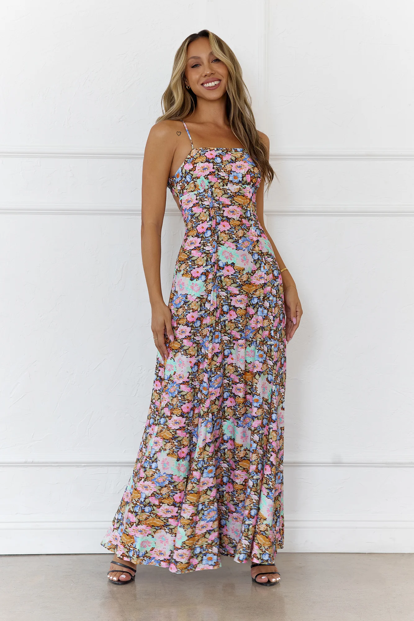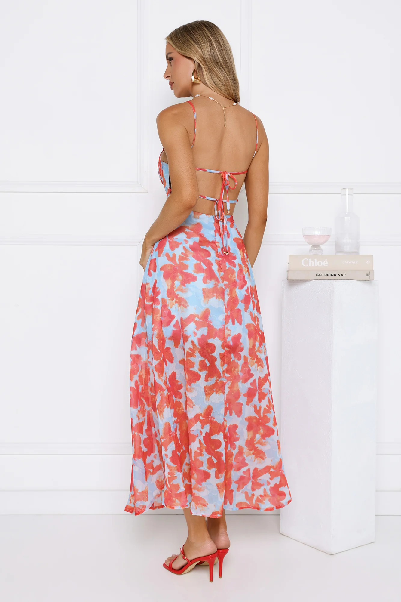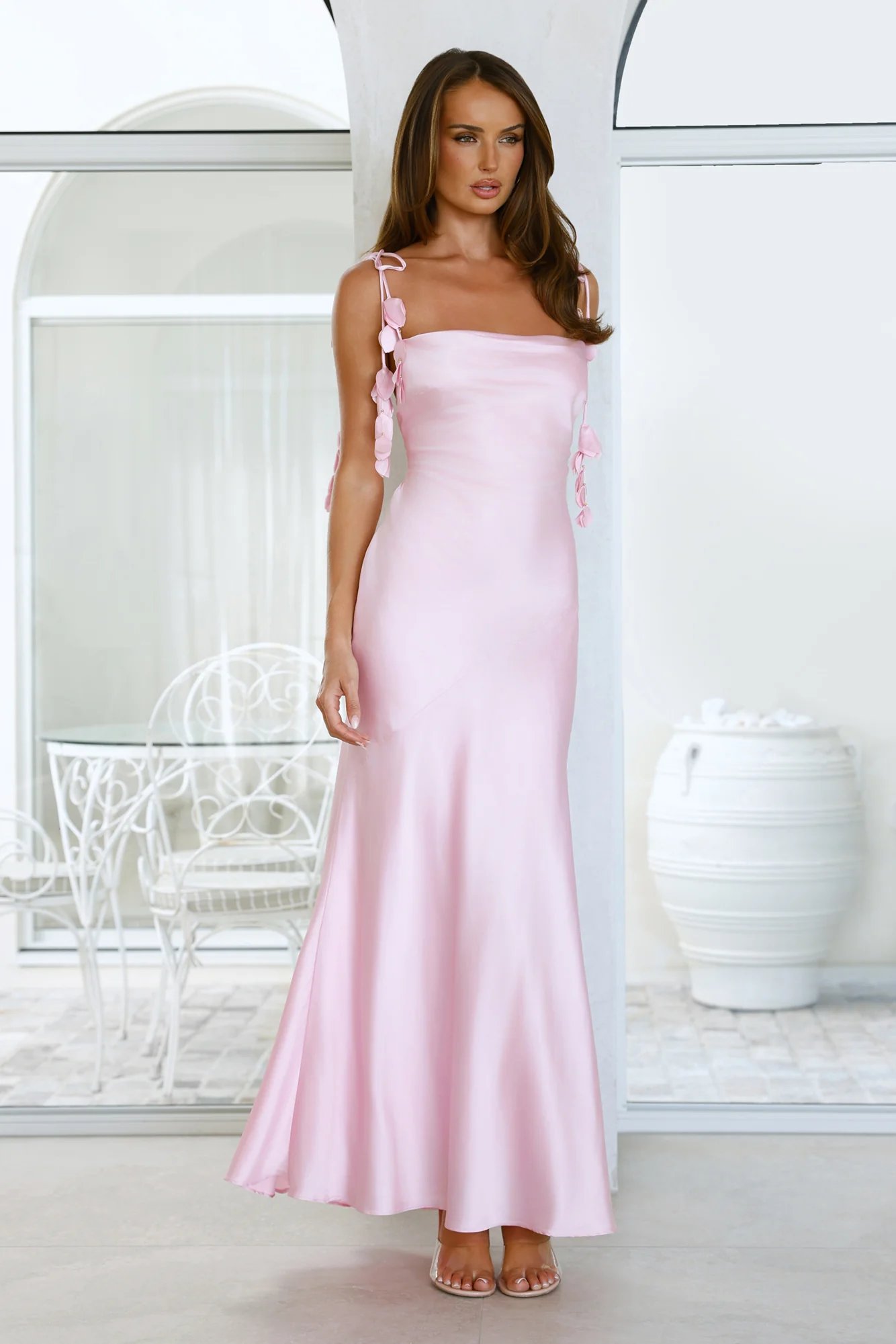 Moonlight Drive Halter Satin Maxi Dress Blue
