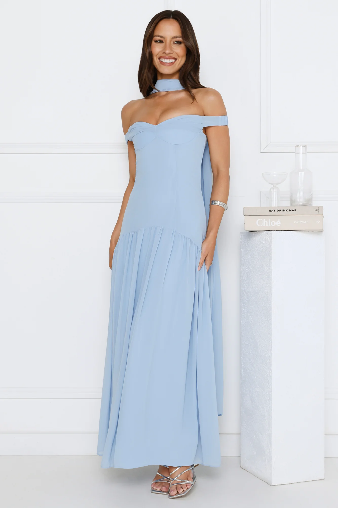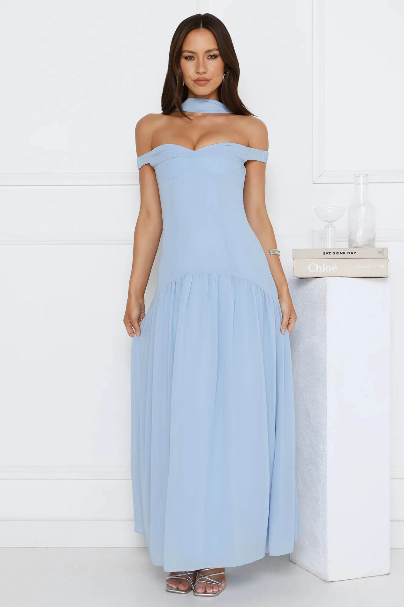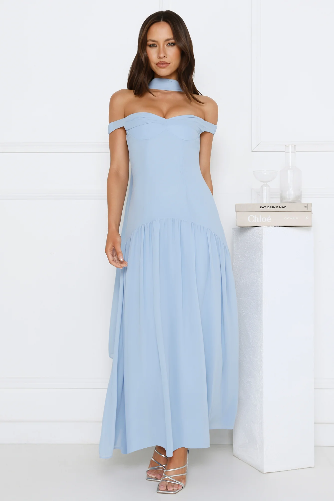 The Style Spotlight Off Shoulder Maxi Dress Blue