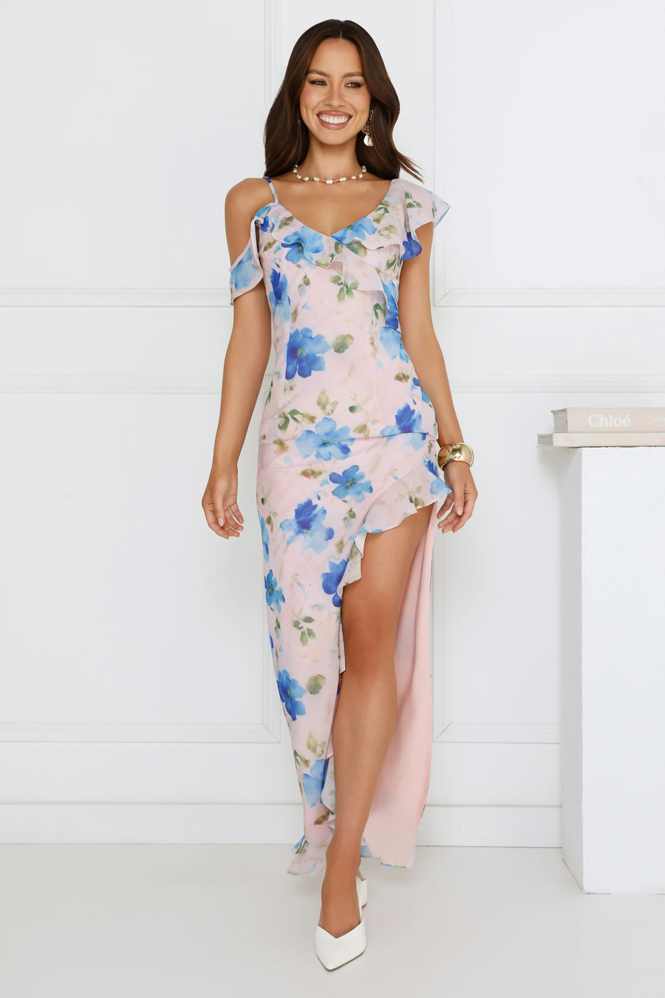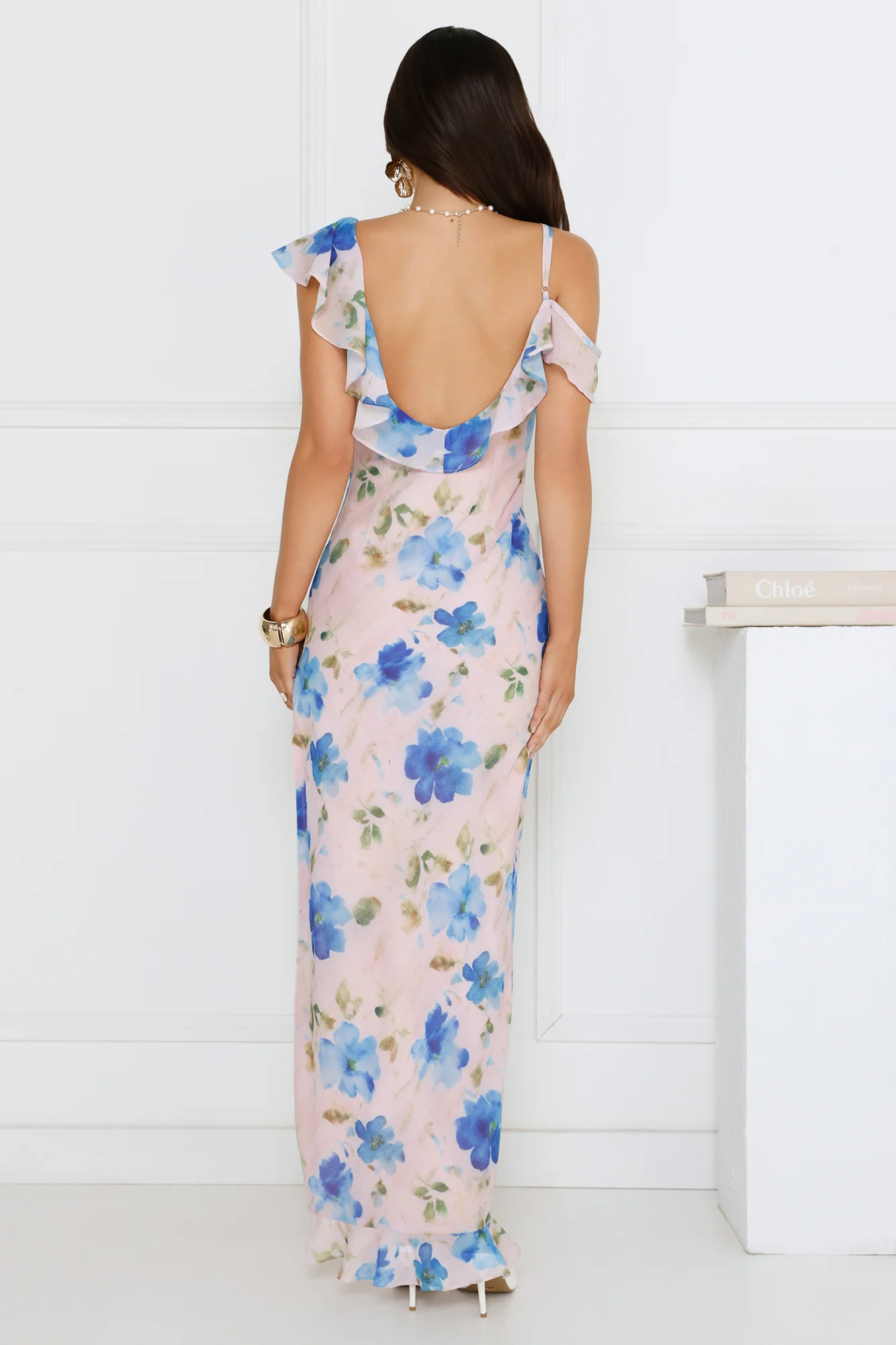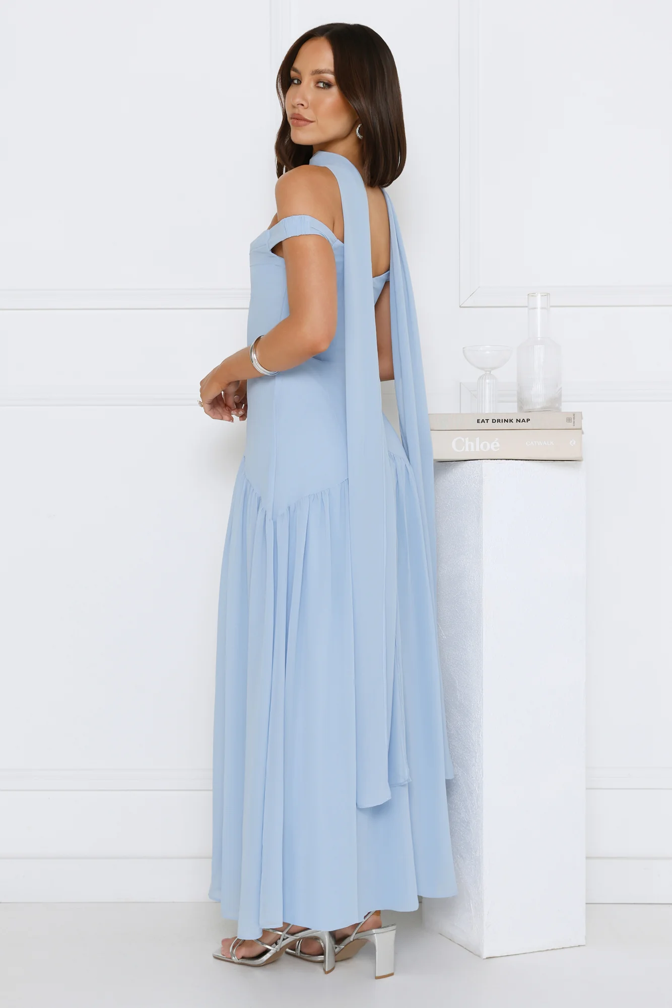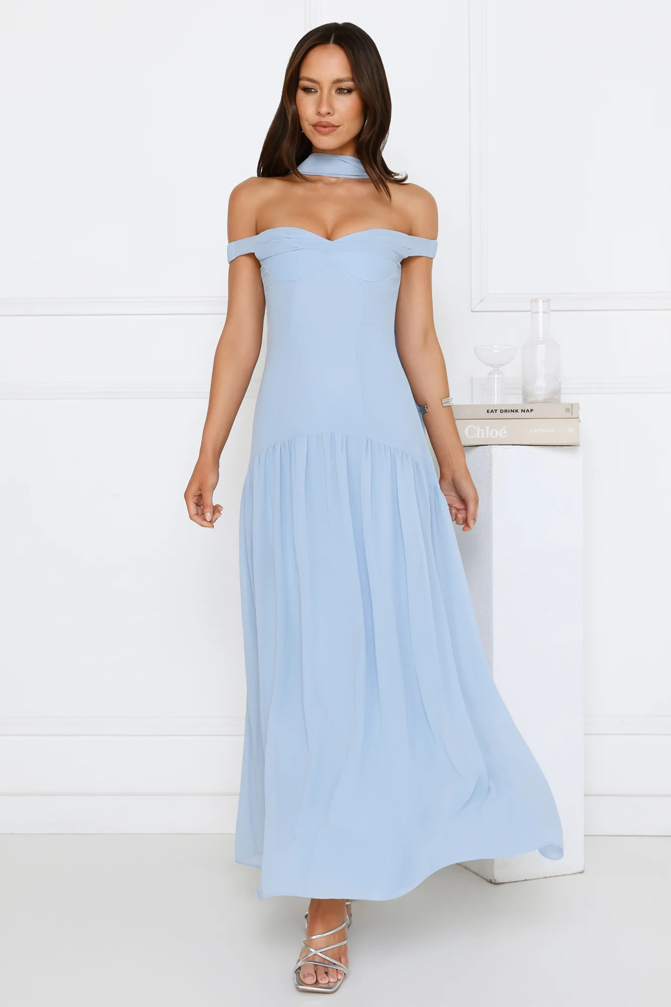 The Style Spotlight Off Shoulder Maxi Dress Blue