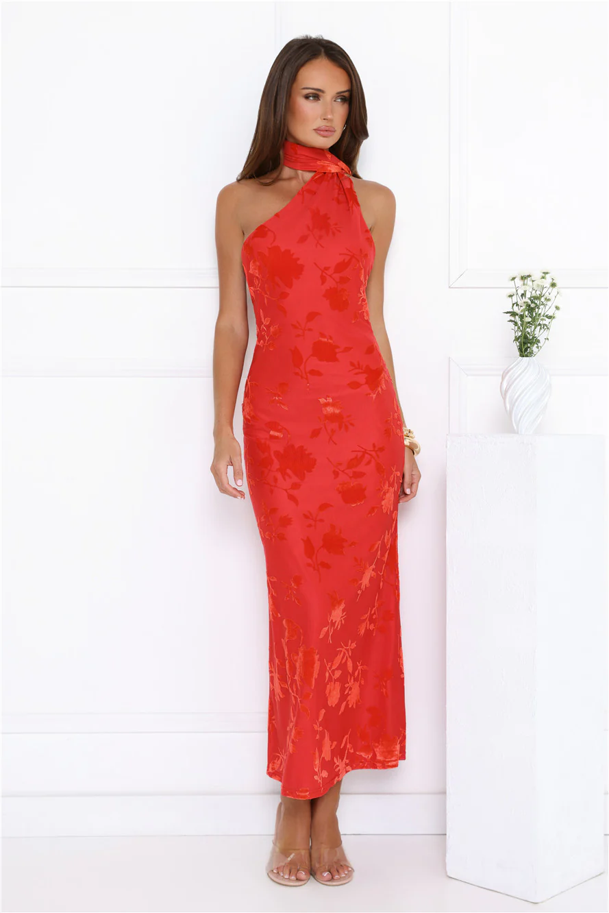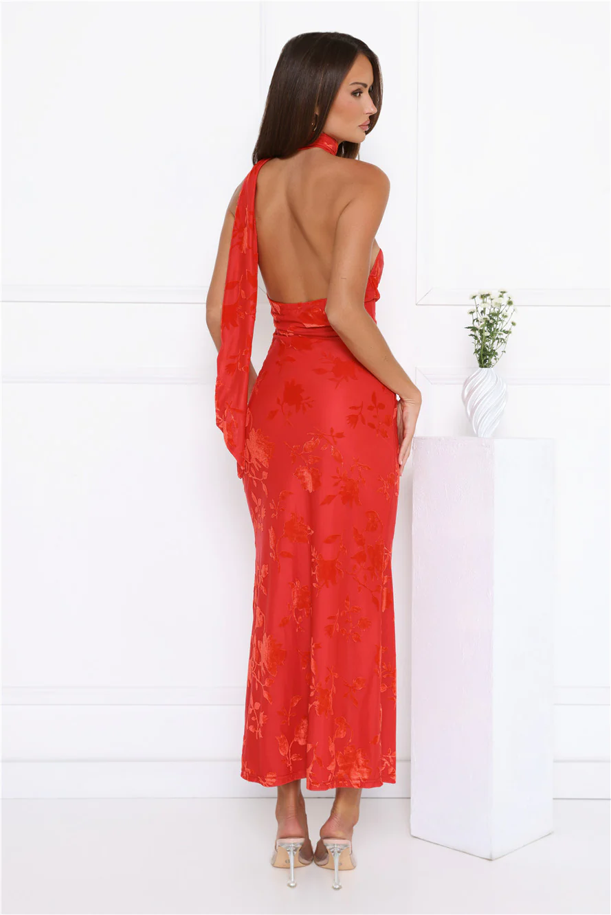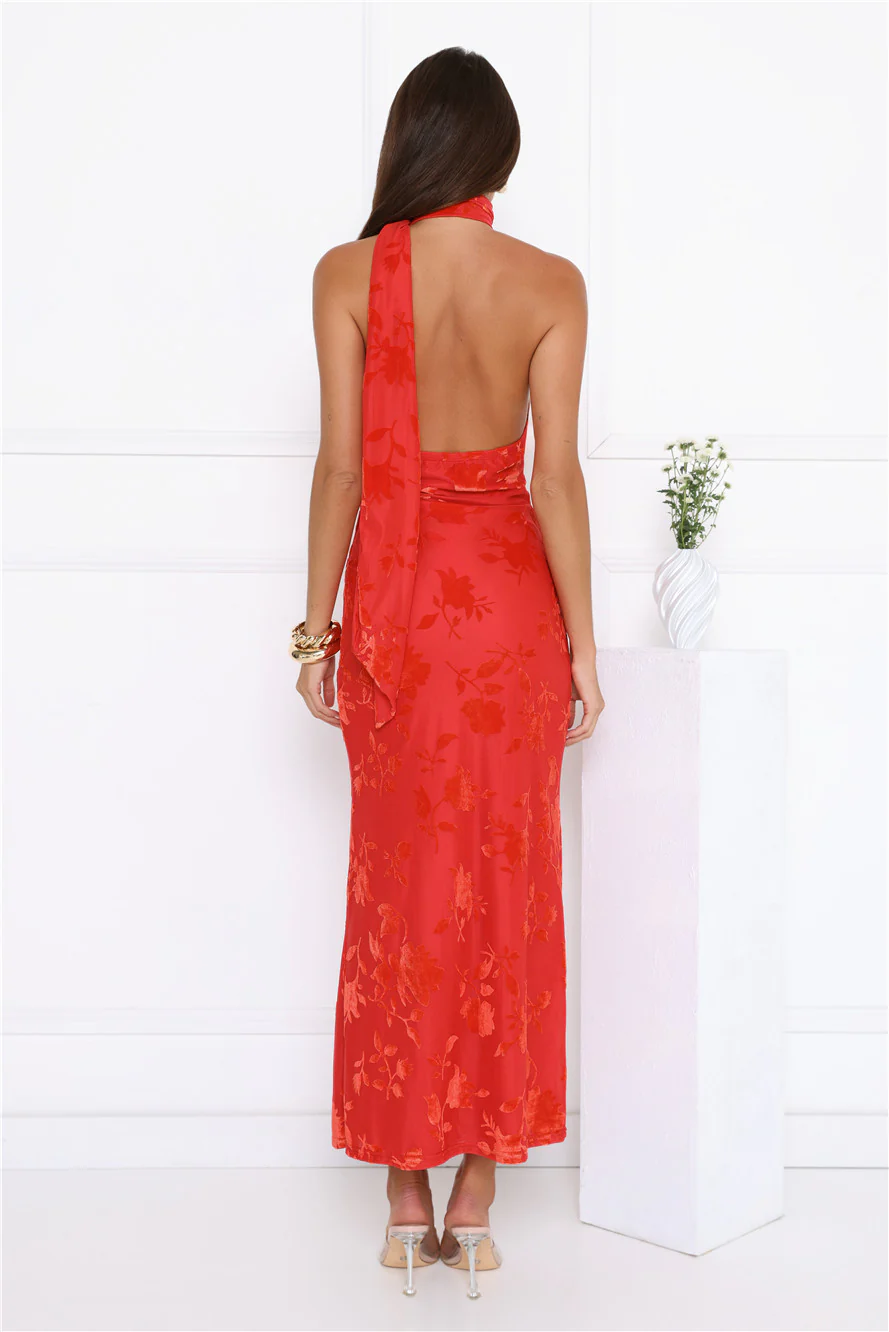Bloomlight Halter Maxi Dress Red