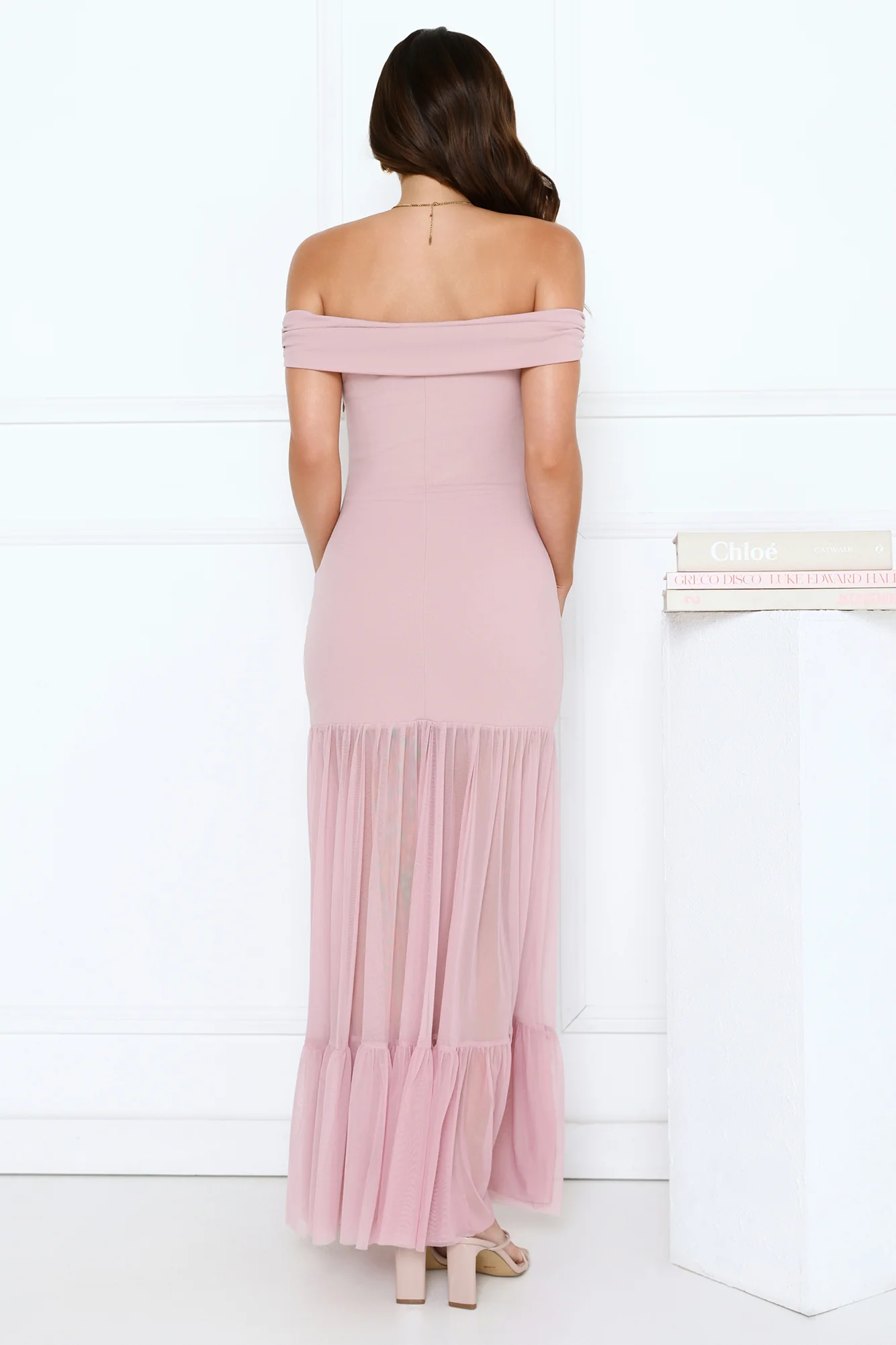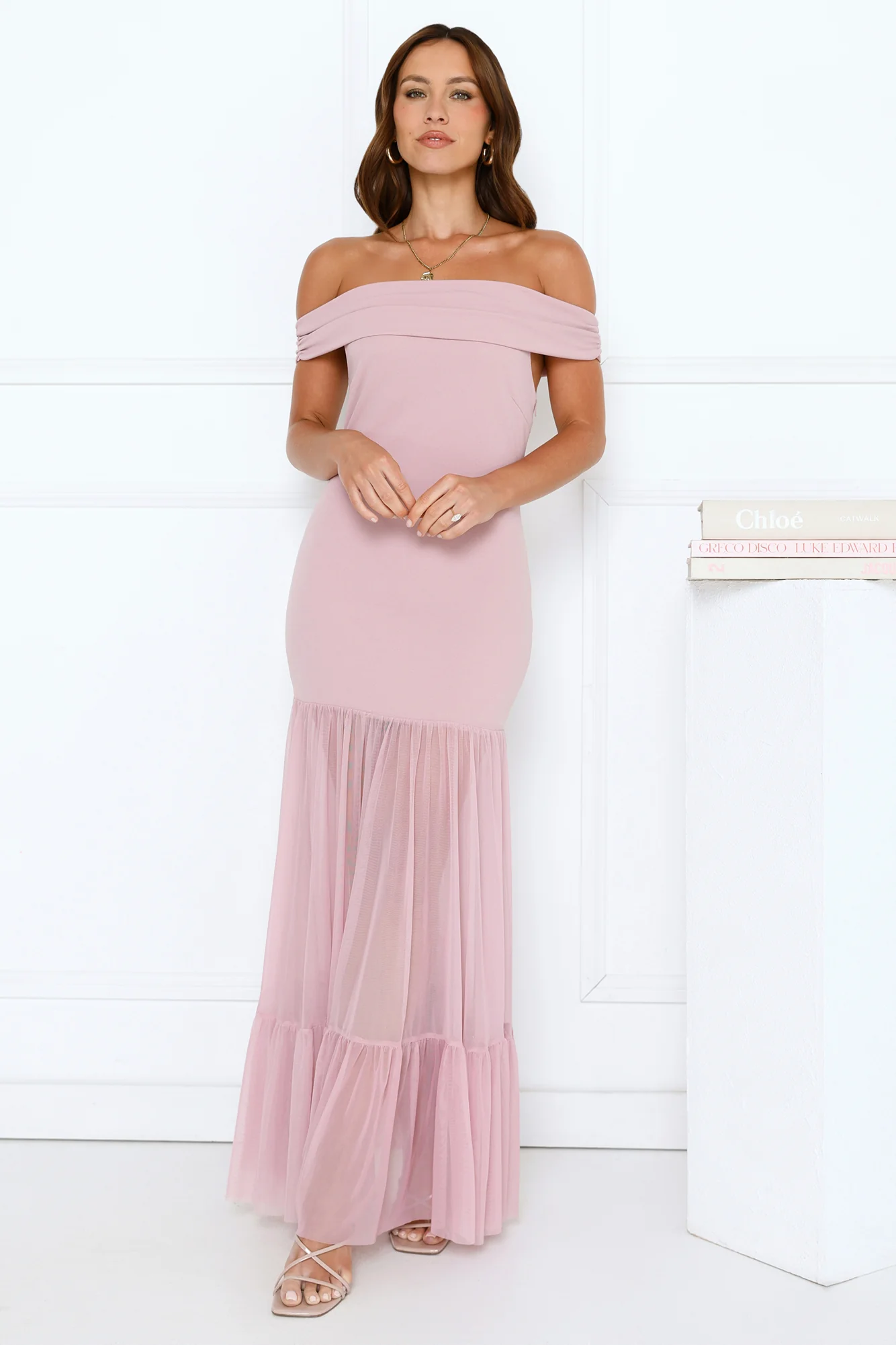 Starlit Aurora Off Shoulder Mesh Maxi Dress Pink