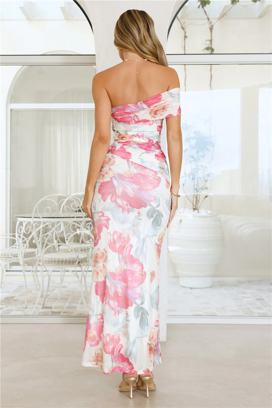 Fizz Soirée One Shoulder Mesh Maxi Dress Print
