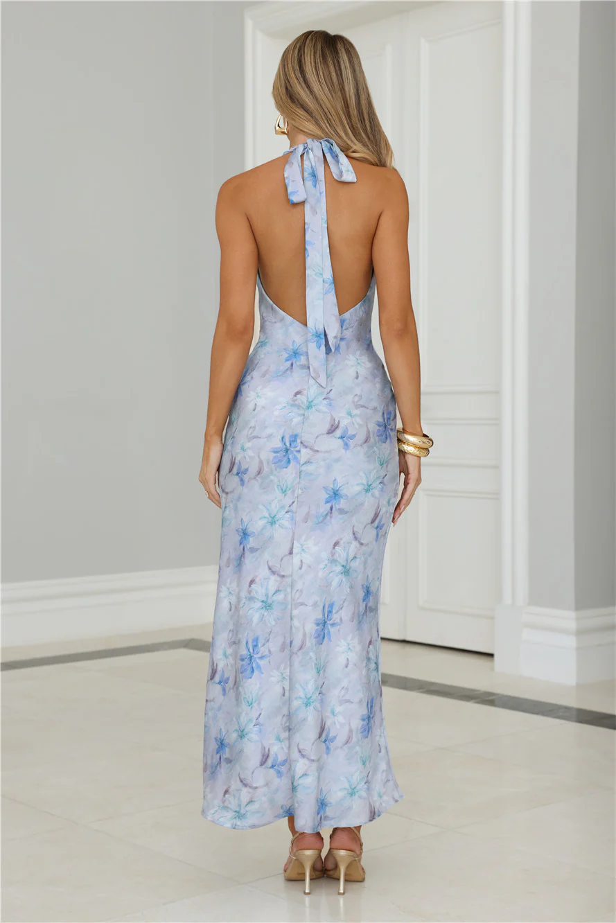 Dreamy Bloom Halter Cowl Maxi Dress Blue