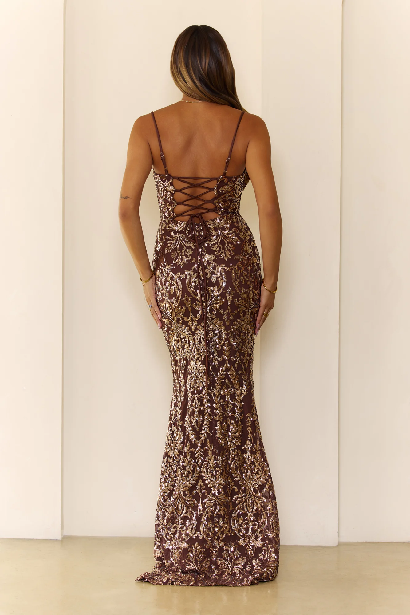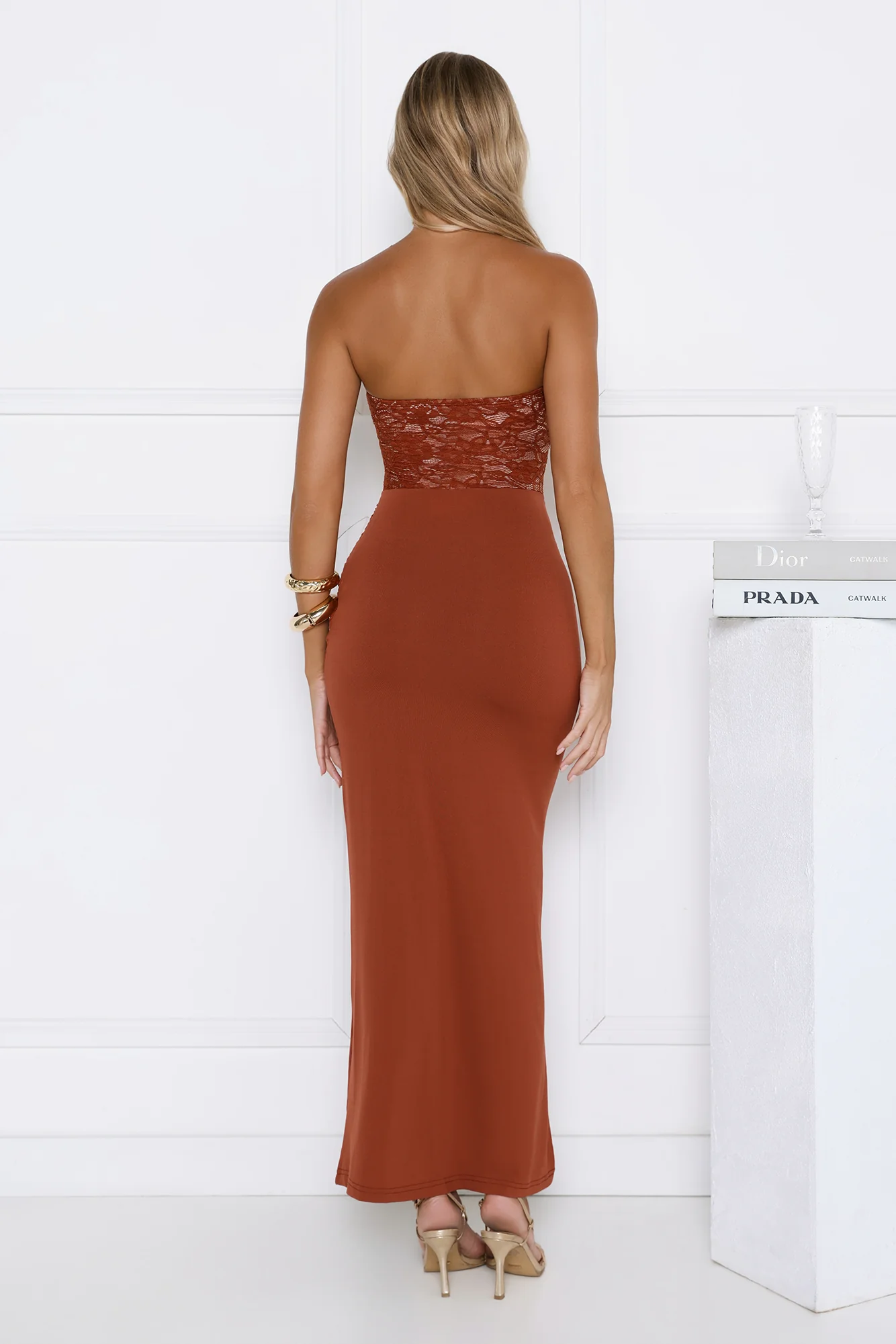 Signature Sleek Lace Strapless Maxi Dress Copper