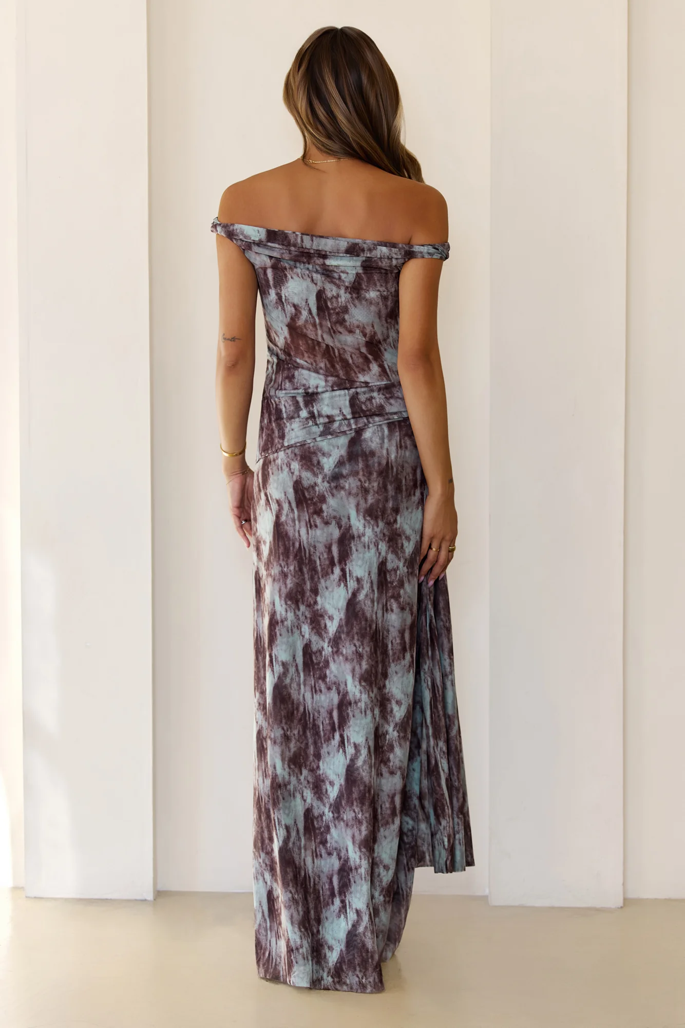 Mystic Marble Print Off Shoulder Maxi Dress Teal