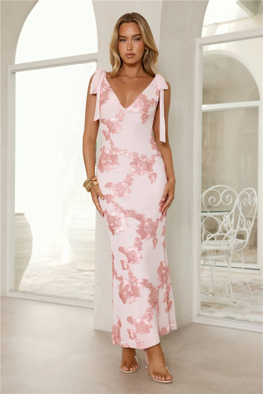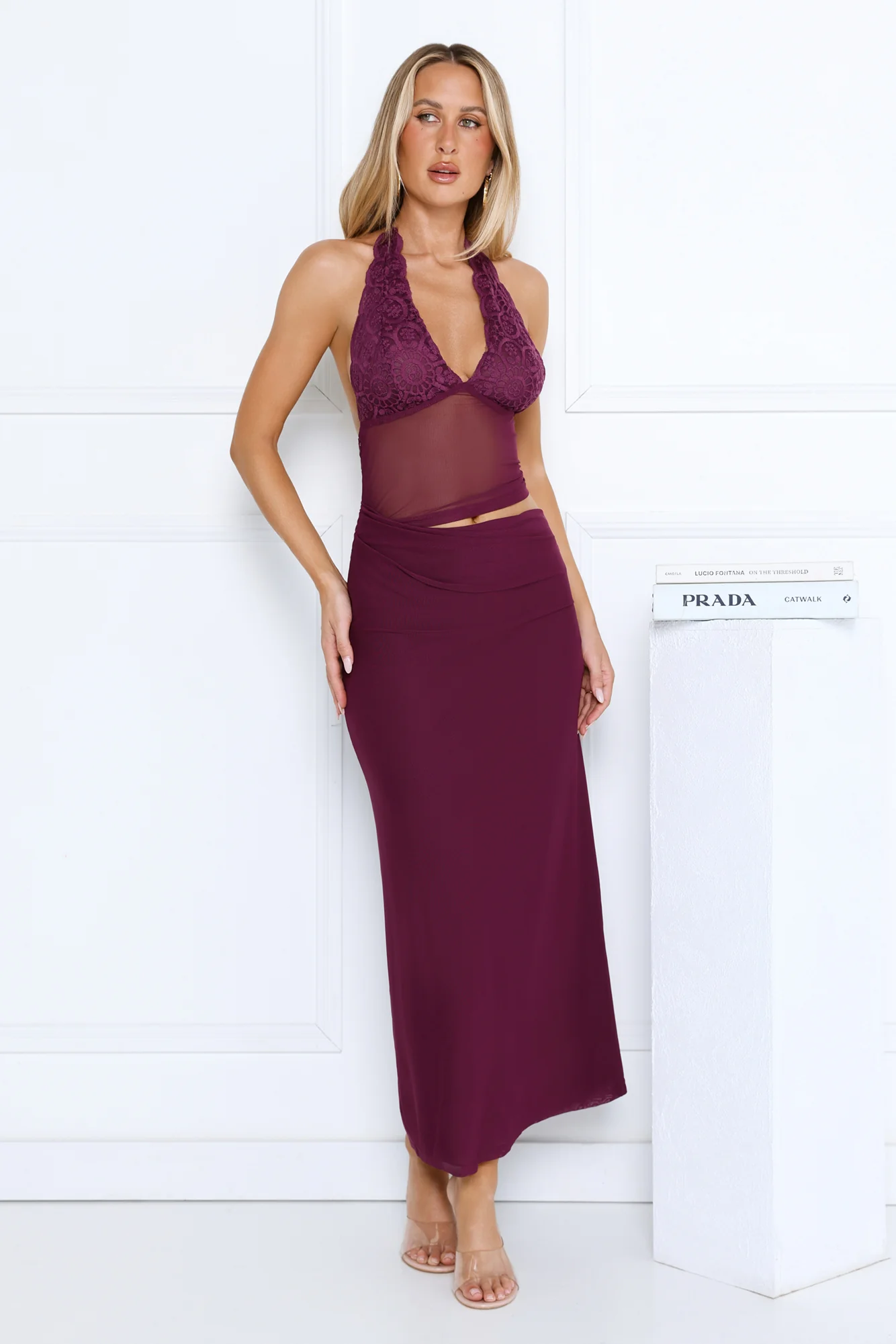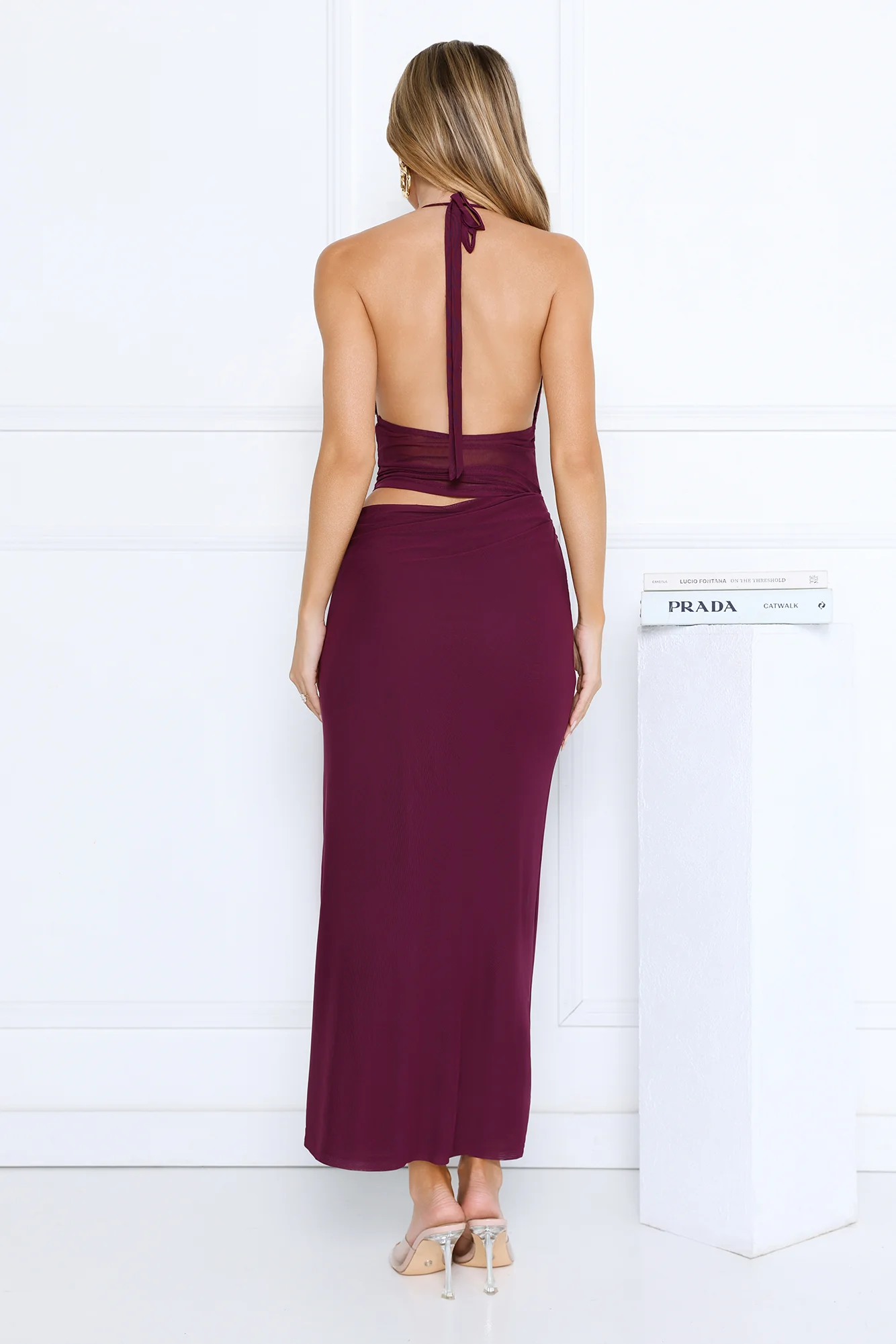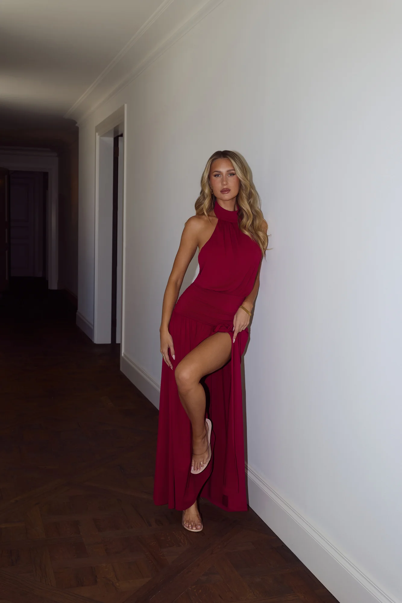 Rosé Petal Dreams Halter Maxi Dress Berry