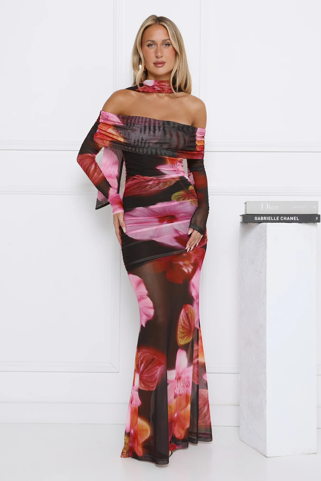 Glow Flowers Off Shoulder Maxi Dress Floral