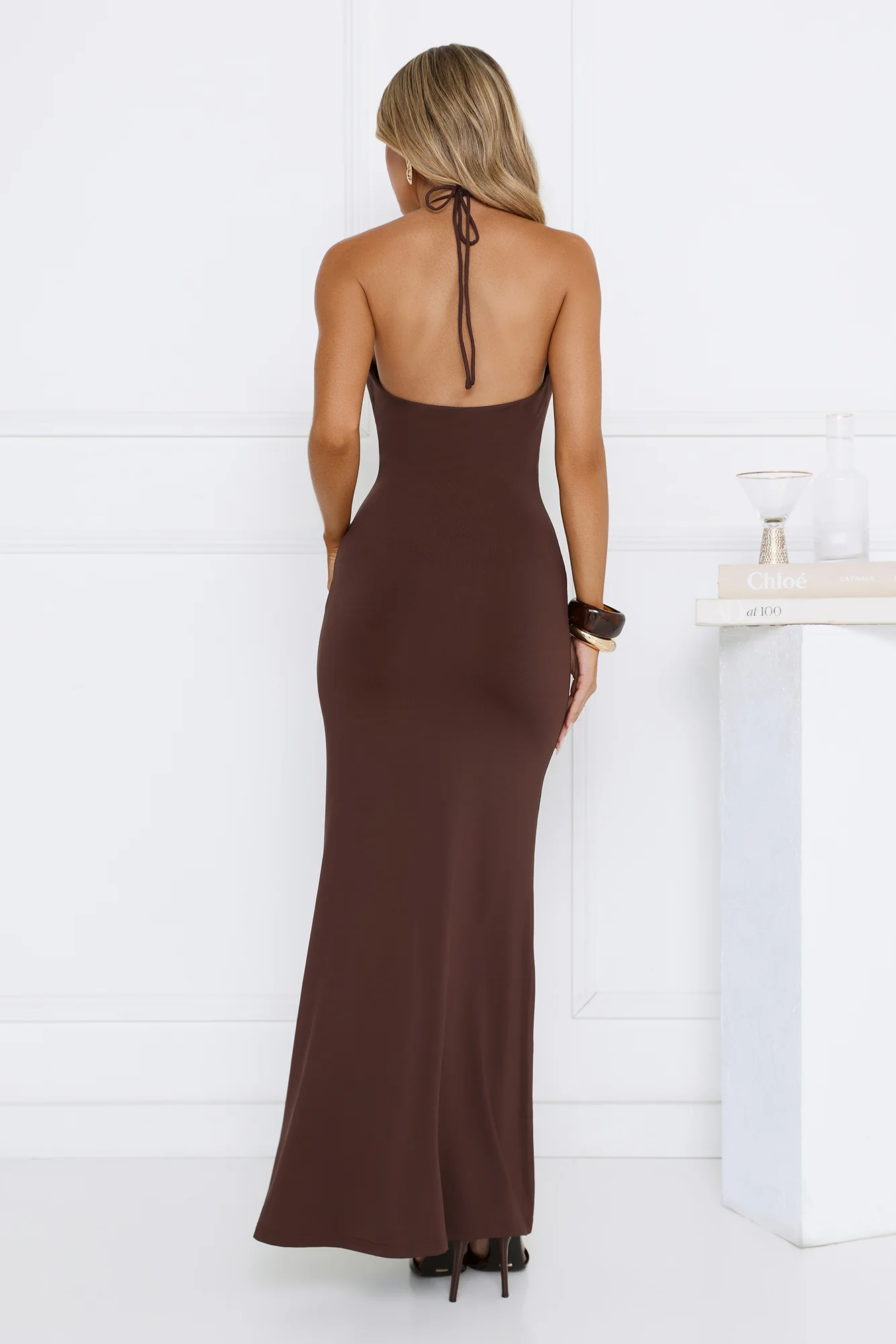 Soft Power Dressing Halter Maxi Dress Chocolate