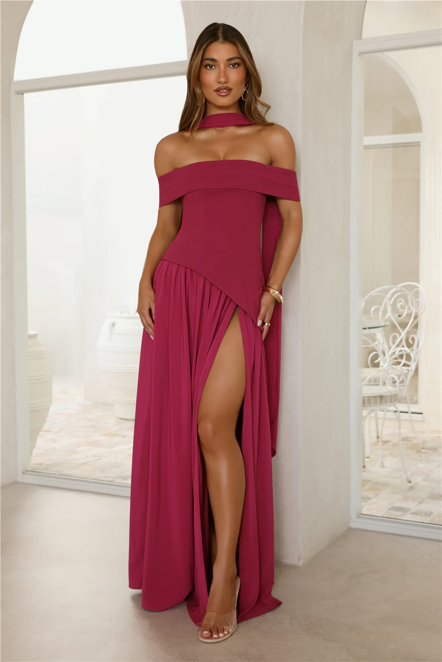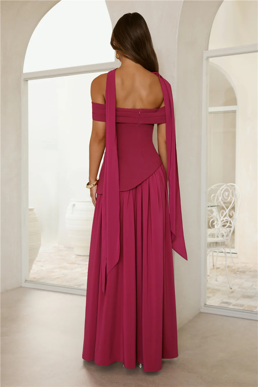 Midnight Elegance Off Shoulder Maxi Dress Magenta