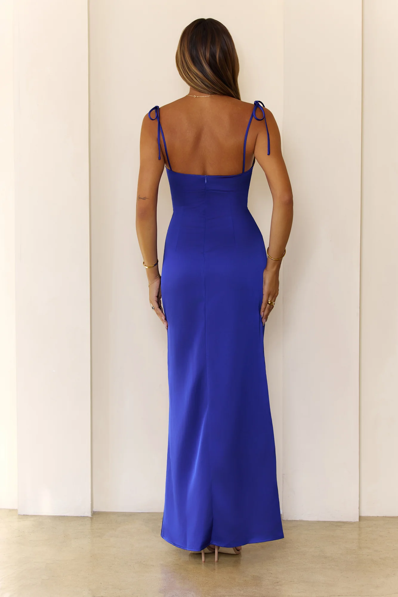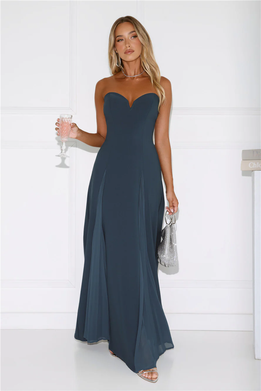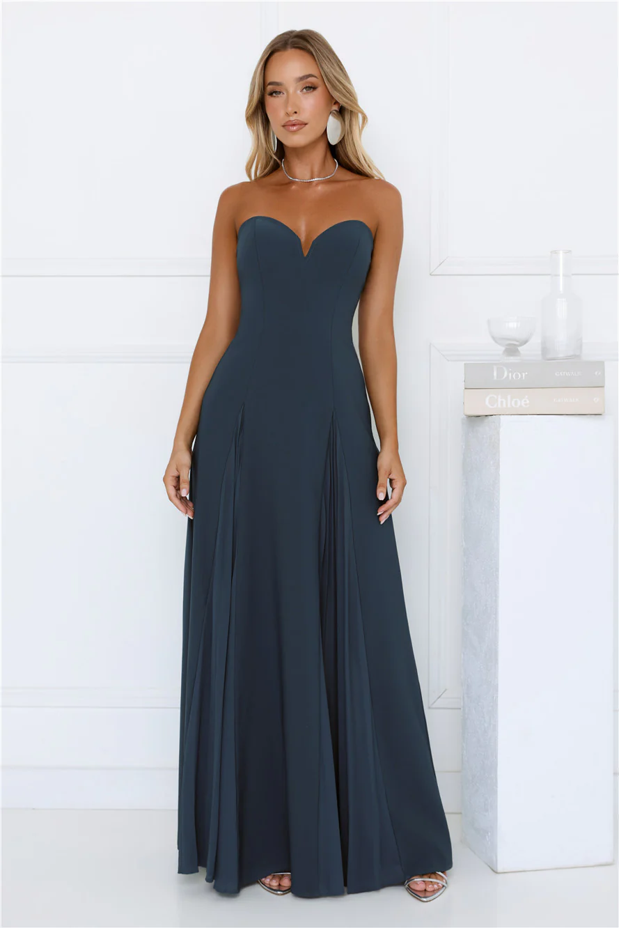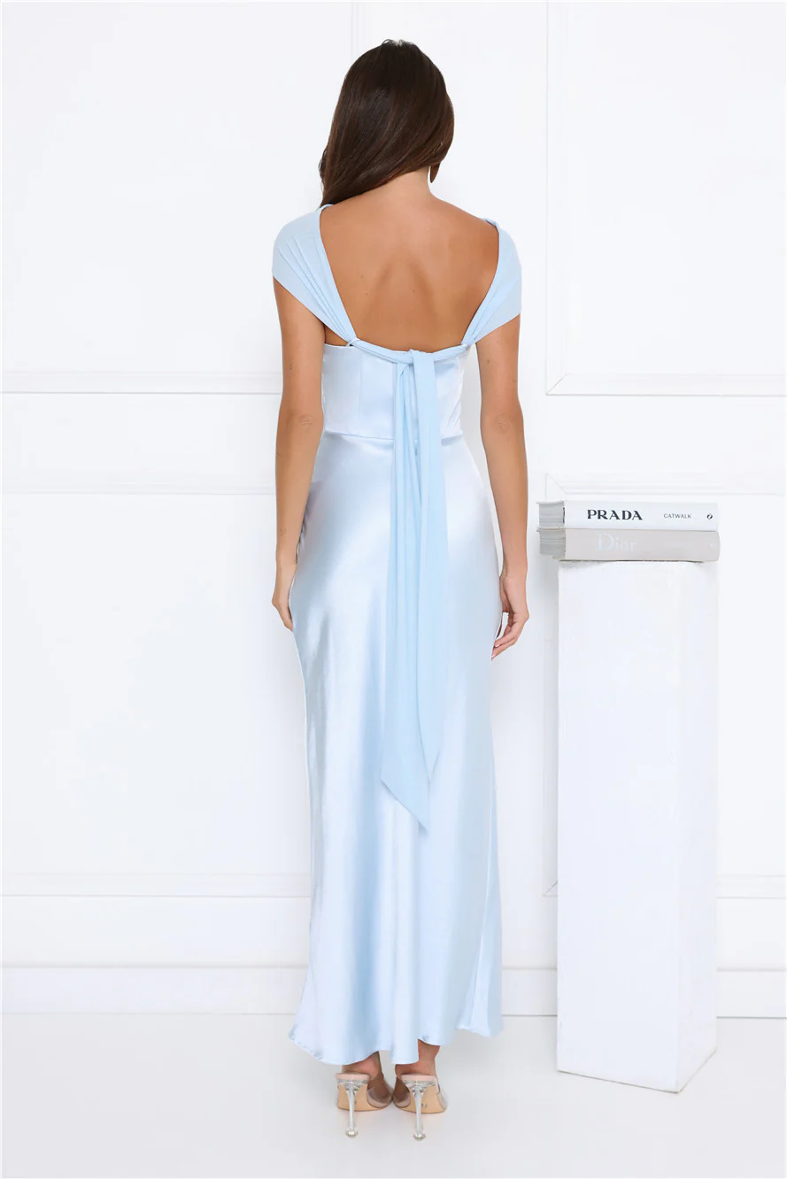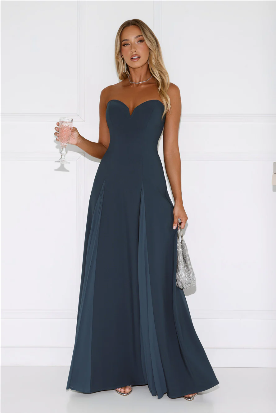 Starry Enchant Satin Strapless Maxi Dress Blue