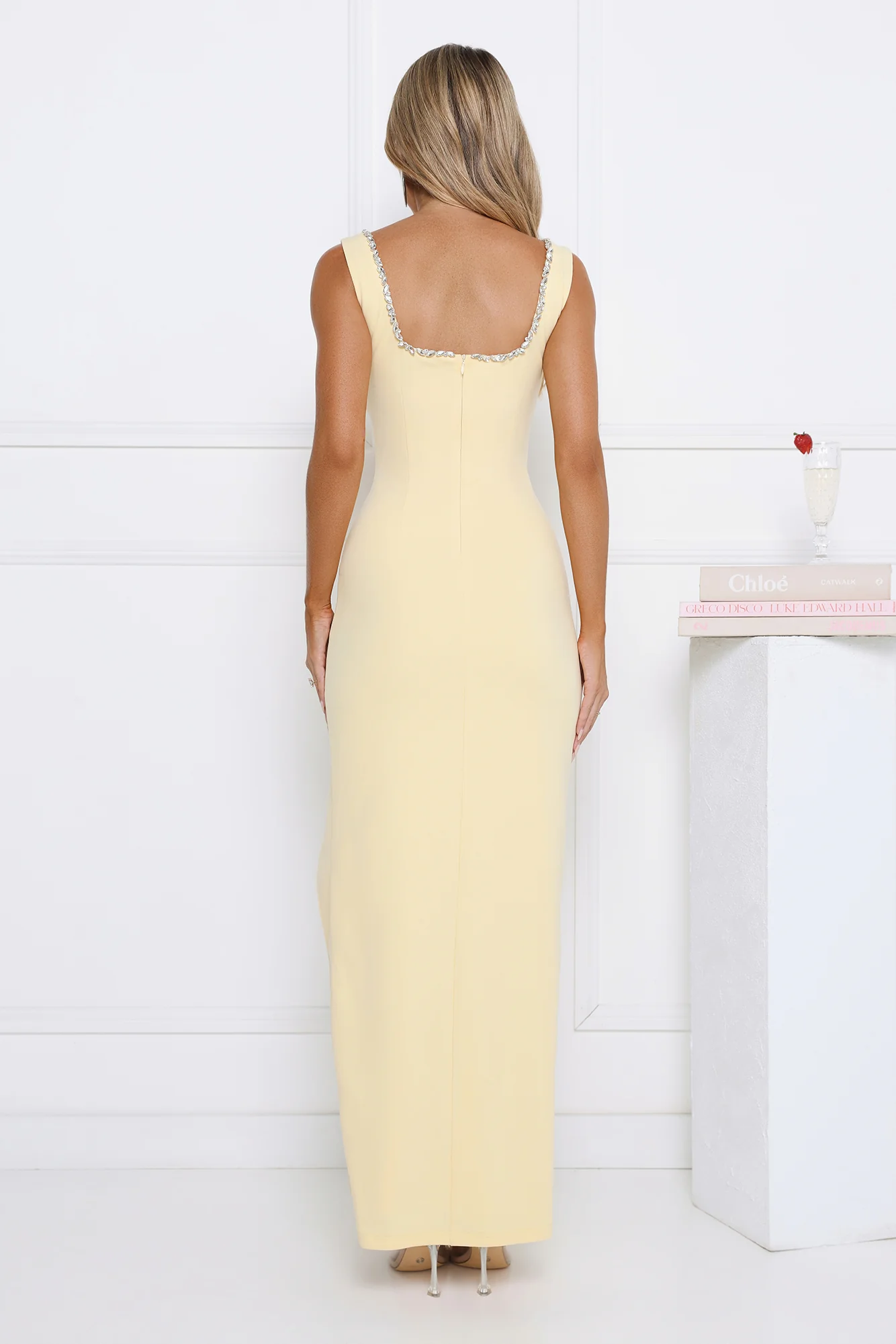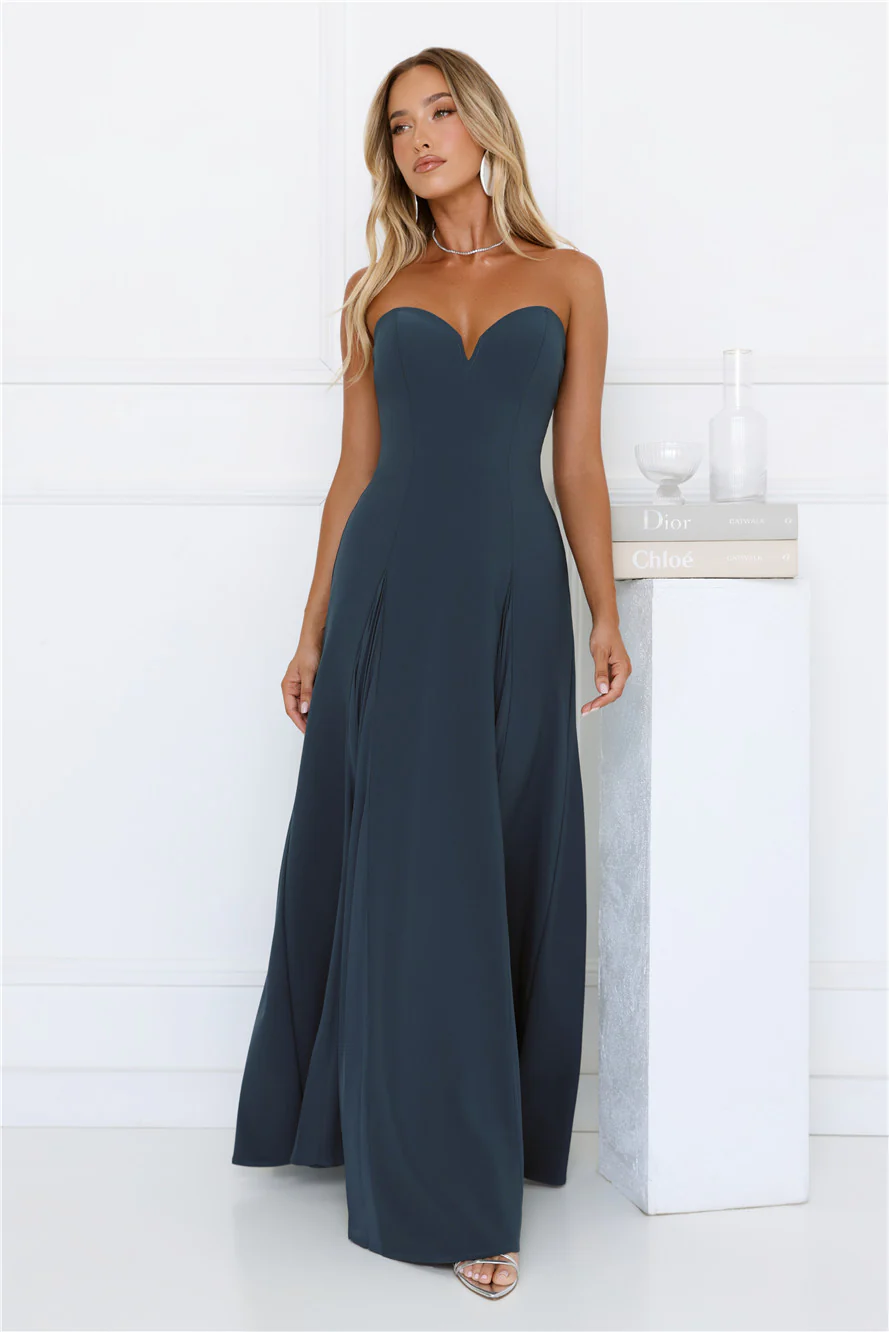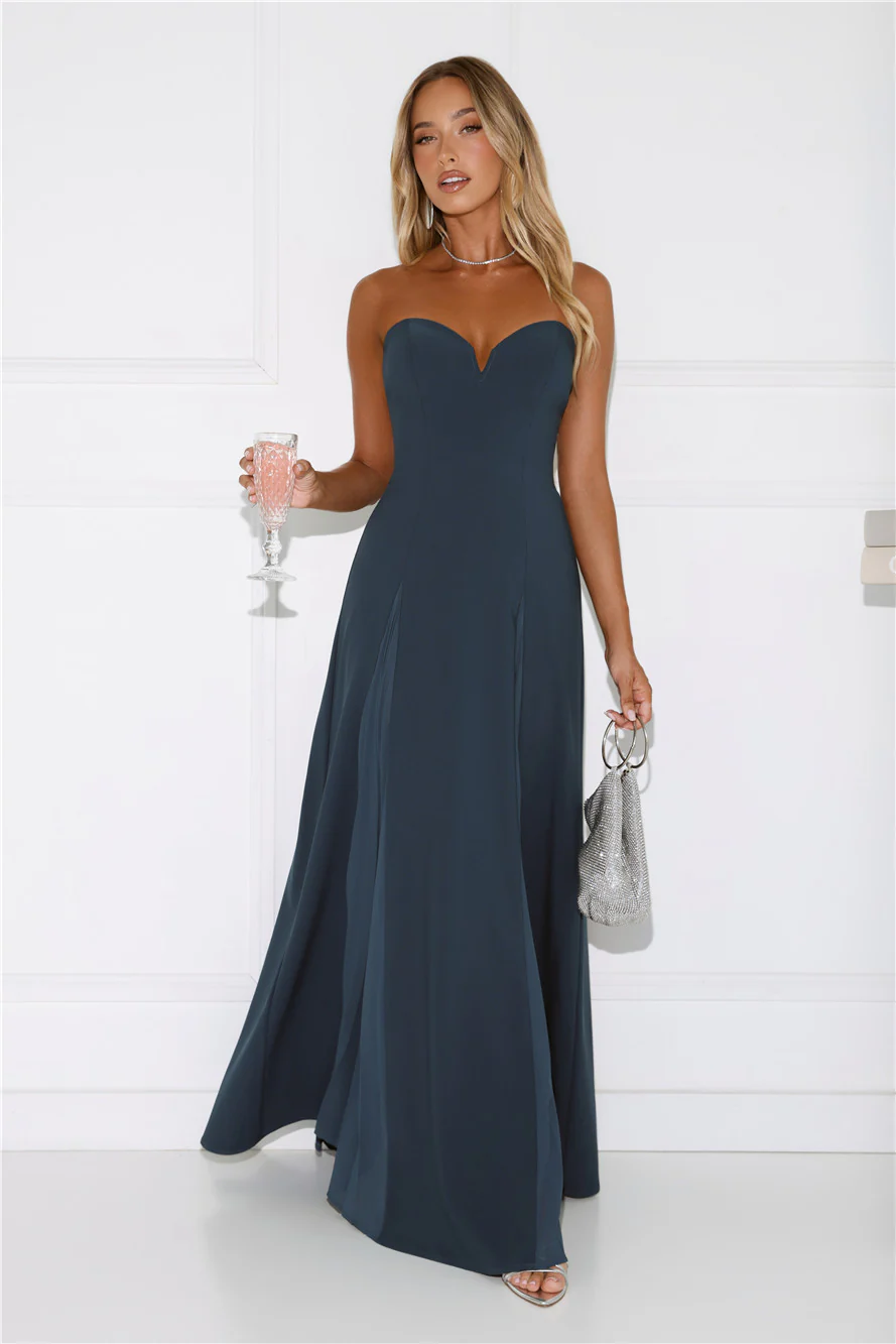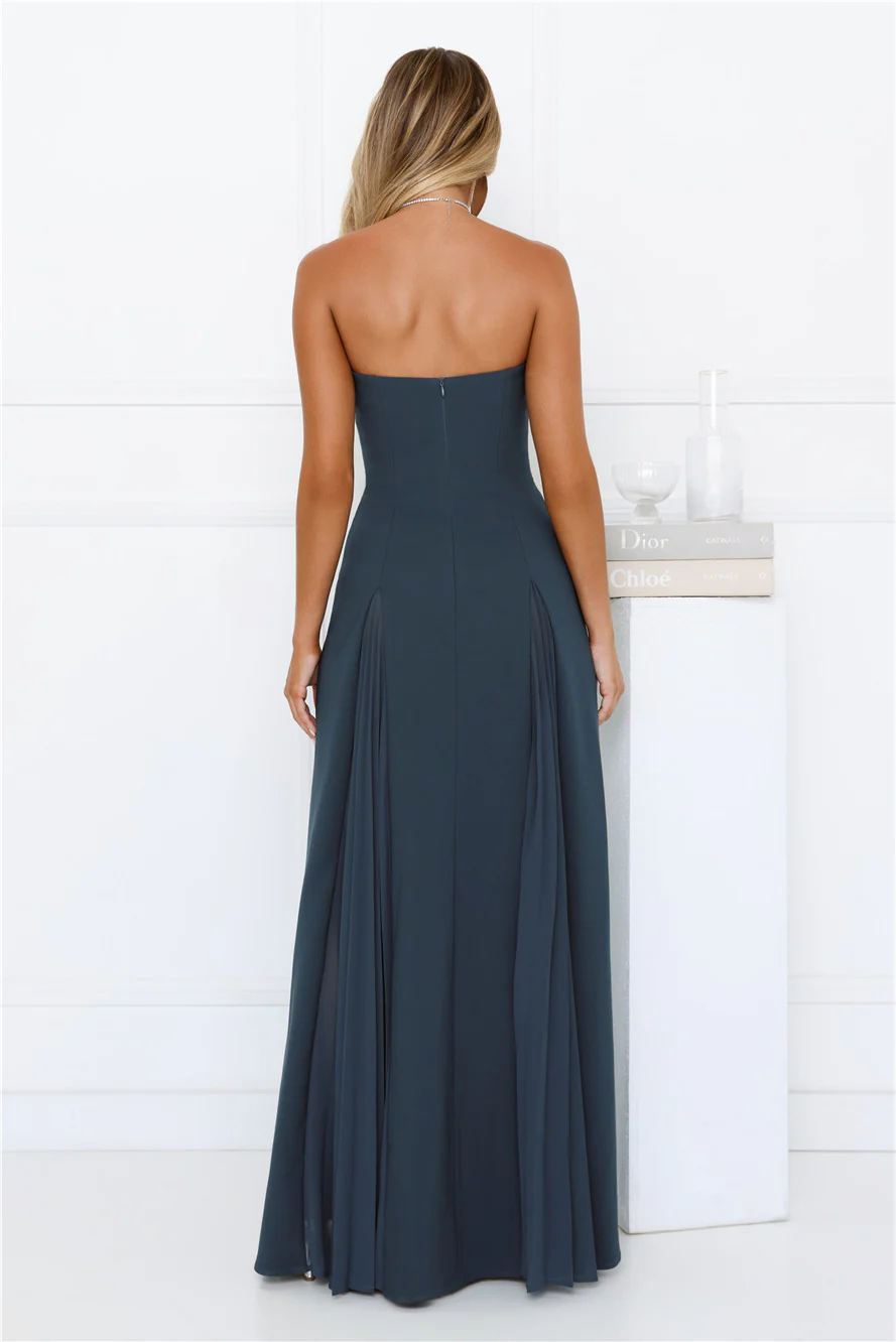 Starry Enchant Satin Strapless Maxi Dress Blue
