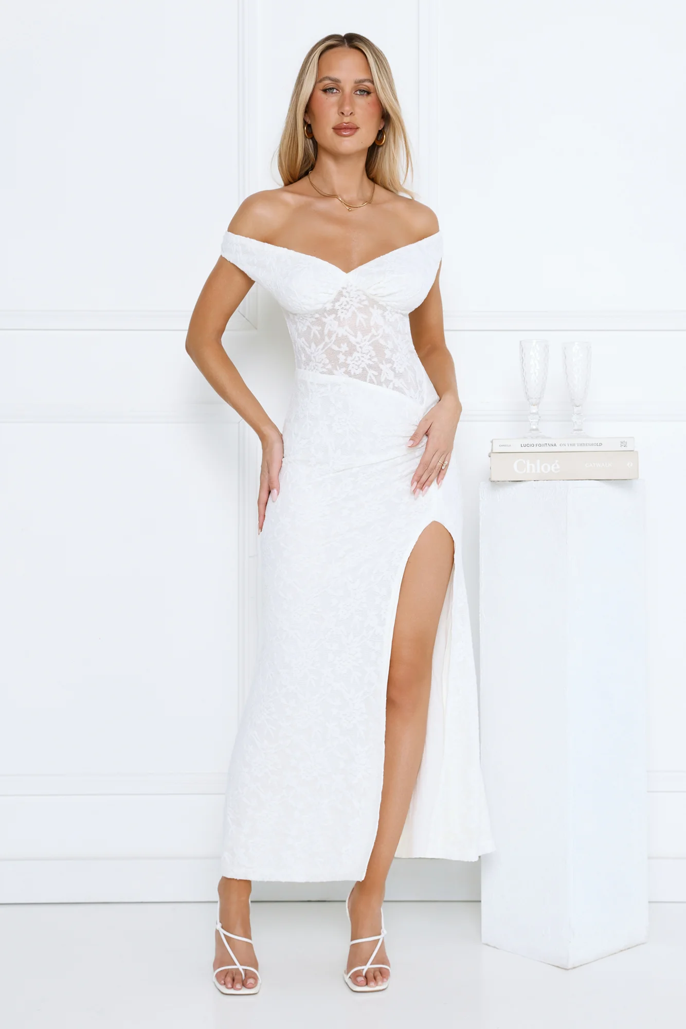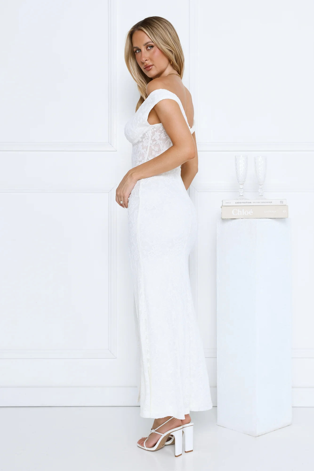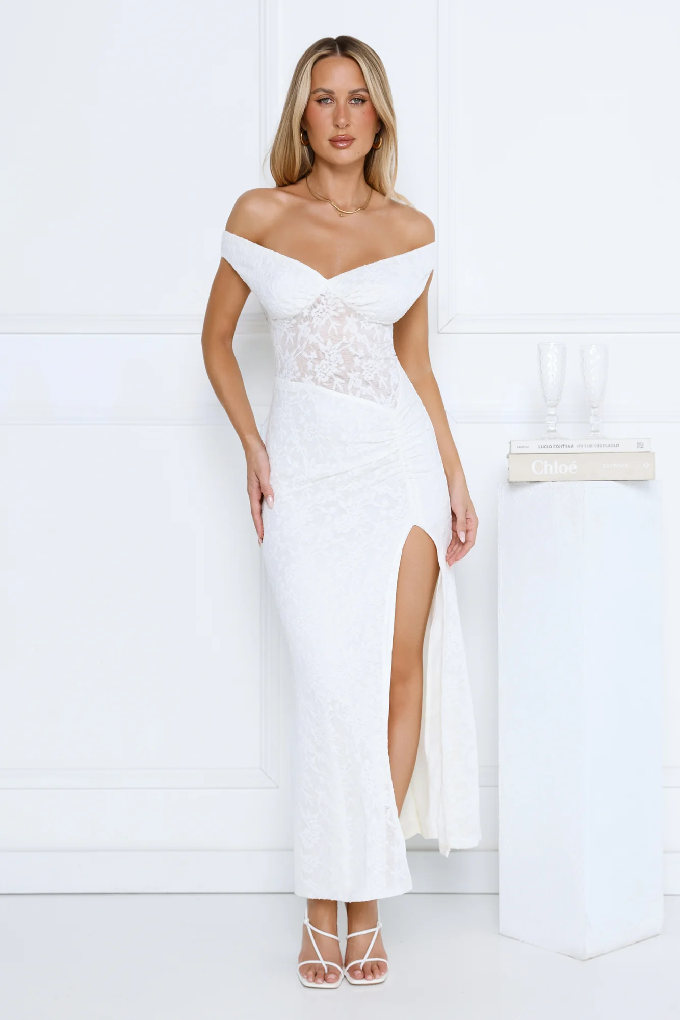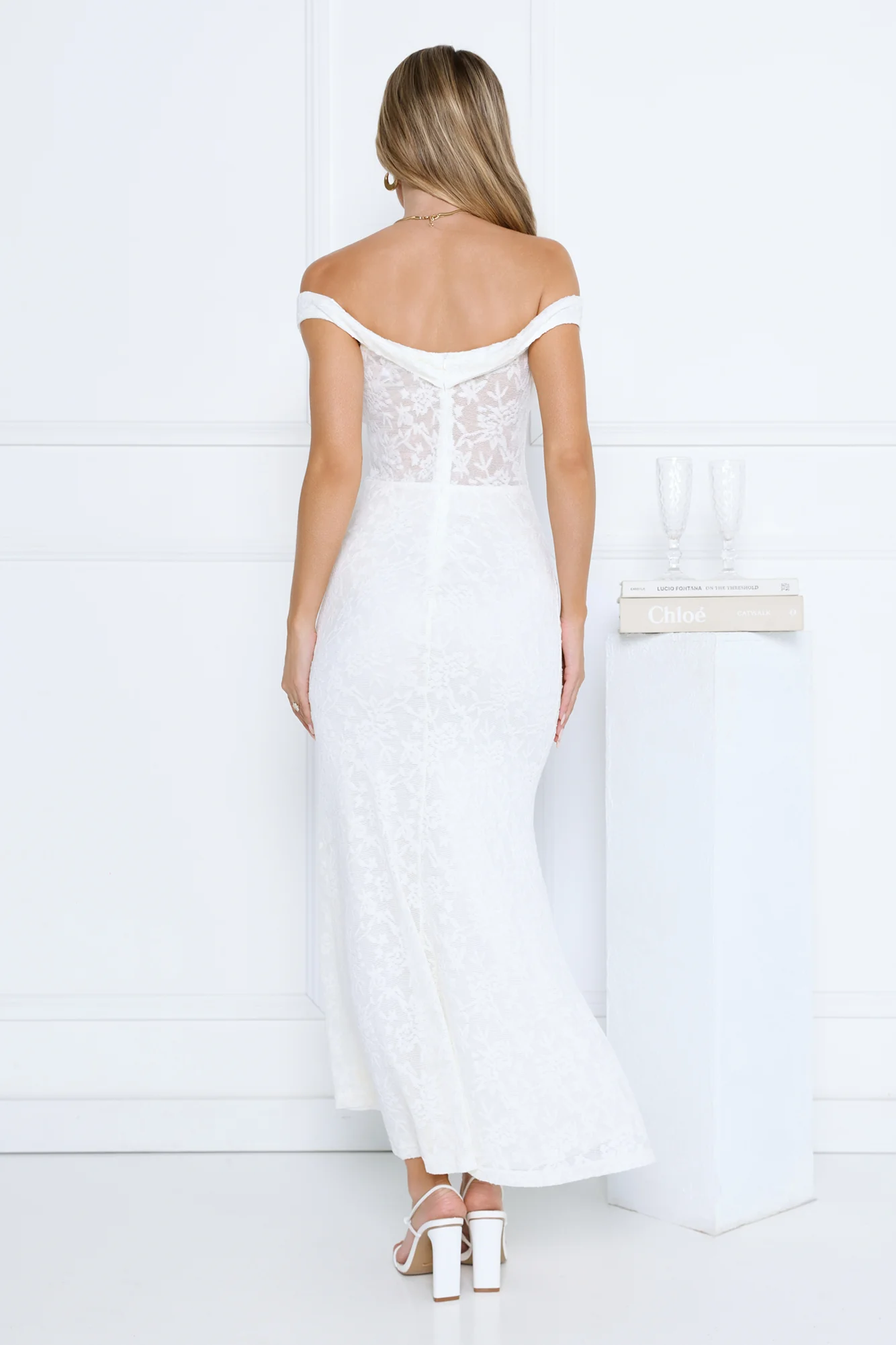 Ivory Veil Off Shoulder Lace Maxi Dress White