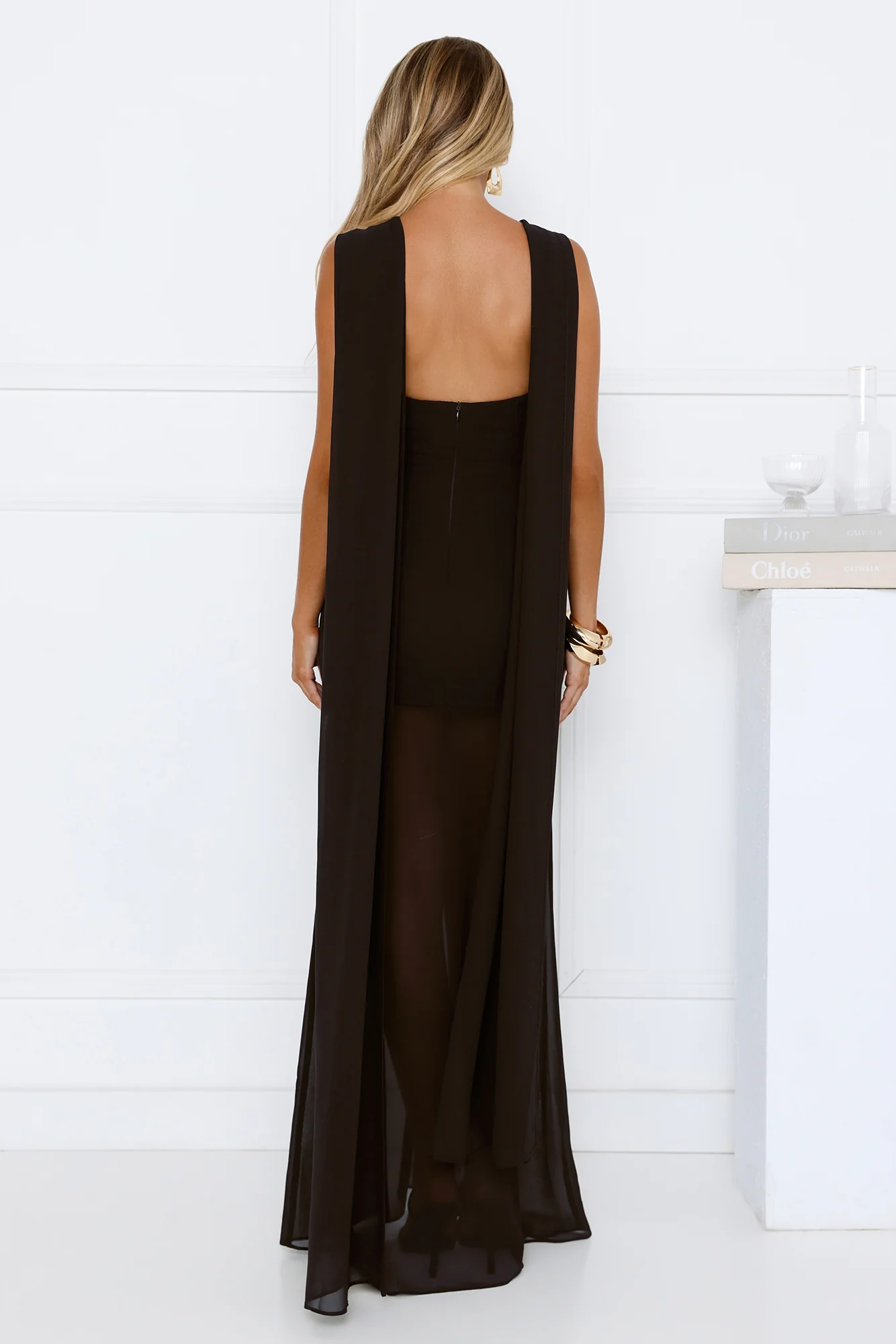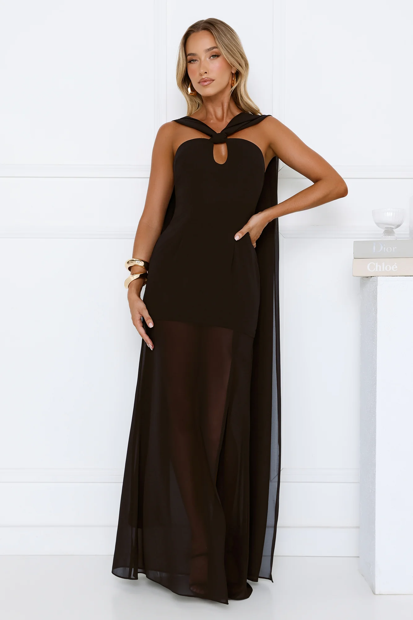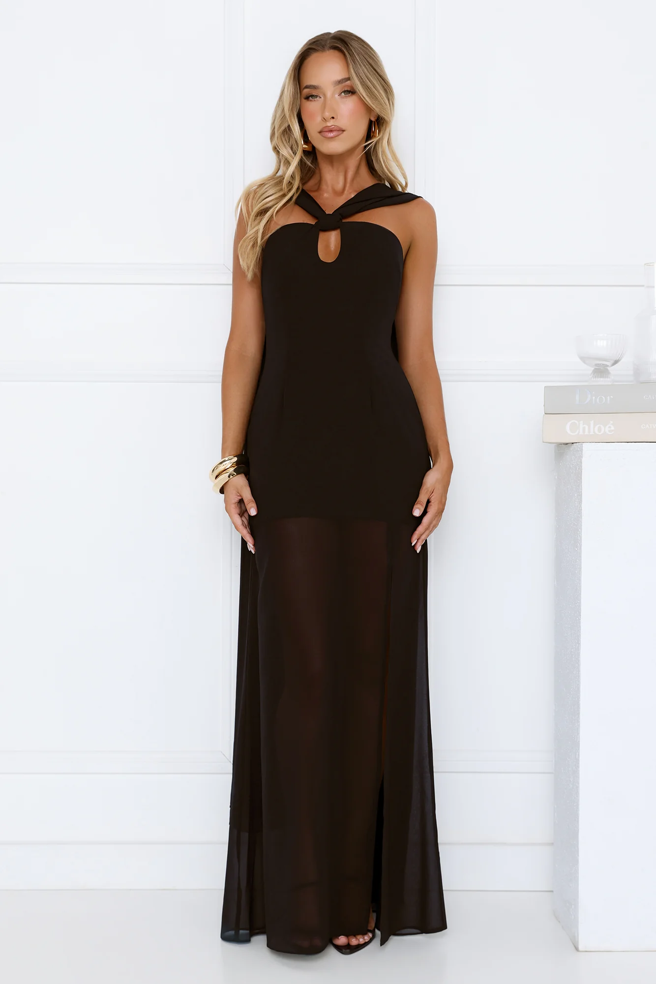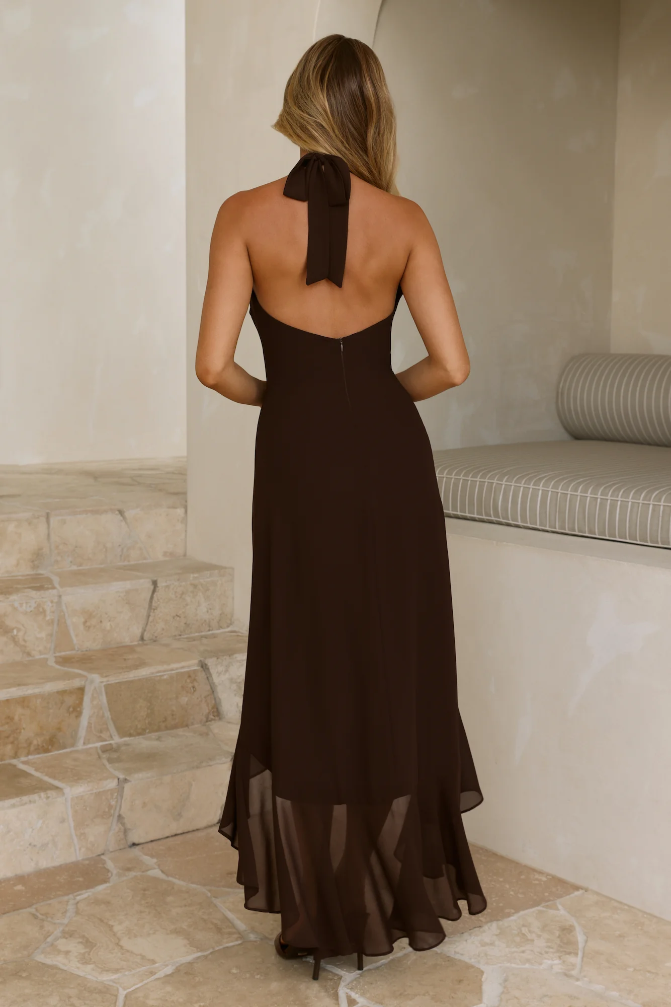 Dark Luxe Halter High-Low Maxi Dress Chocolate