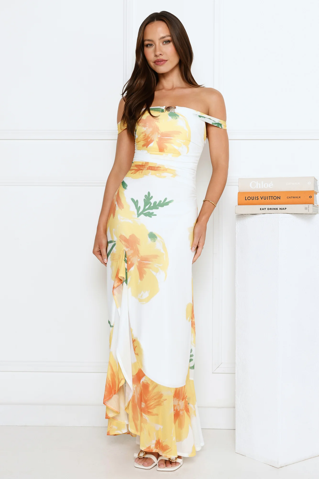 Crown Affair Off Shoulder Mesh Maxi Dress White