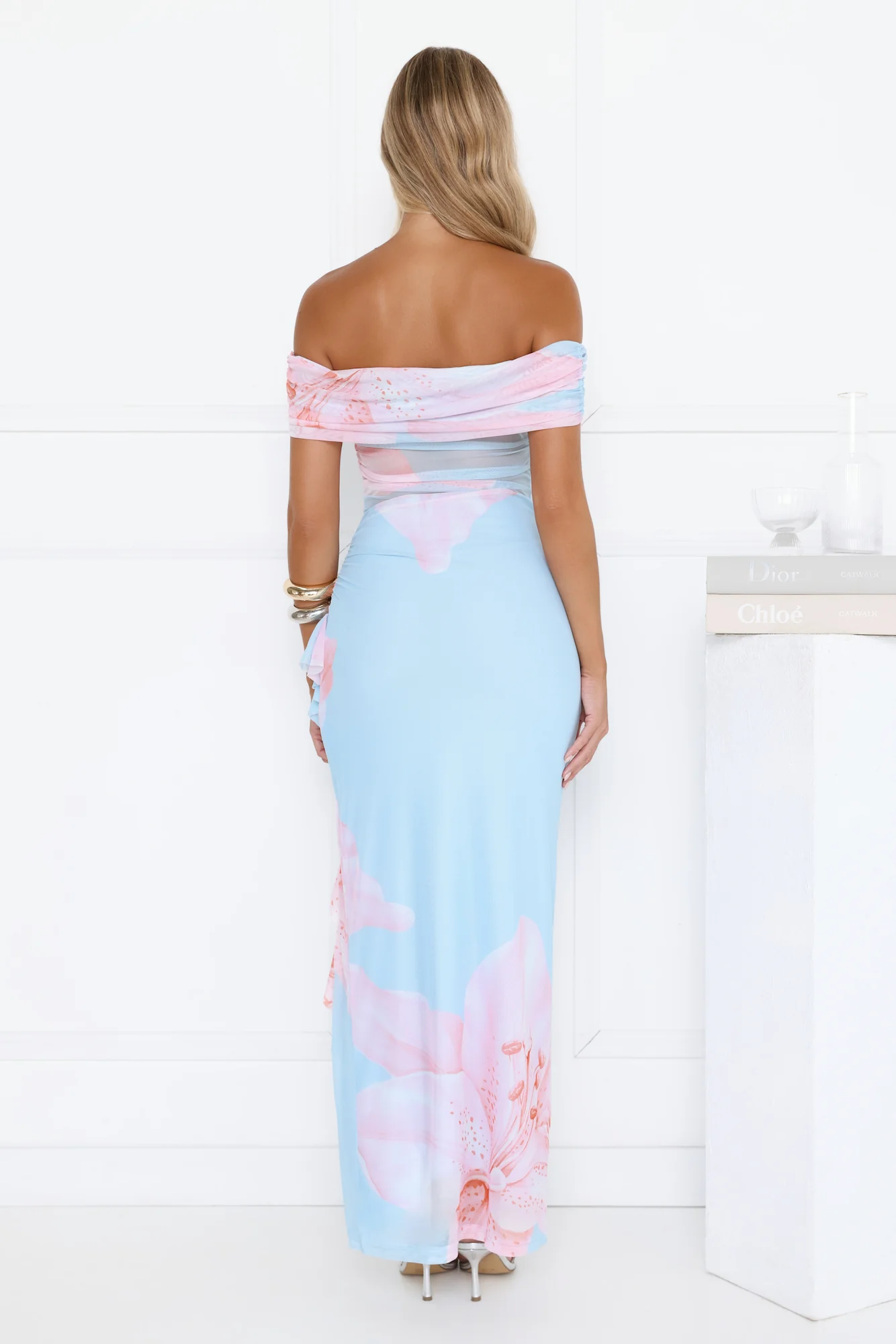 Dream Vacay Floral Mesh Maxi Dress Blue