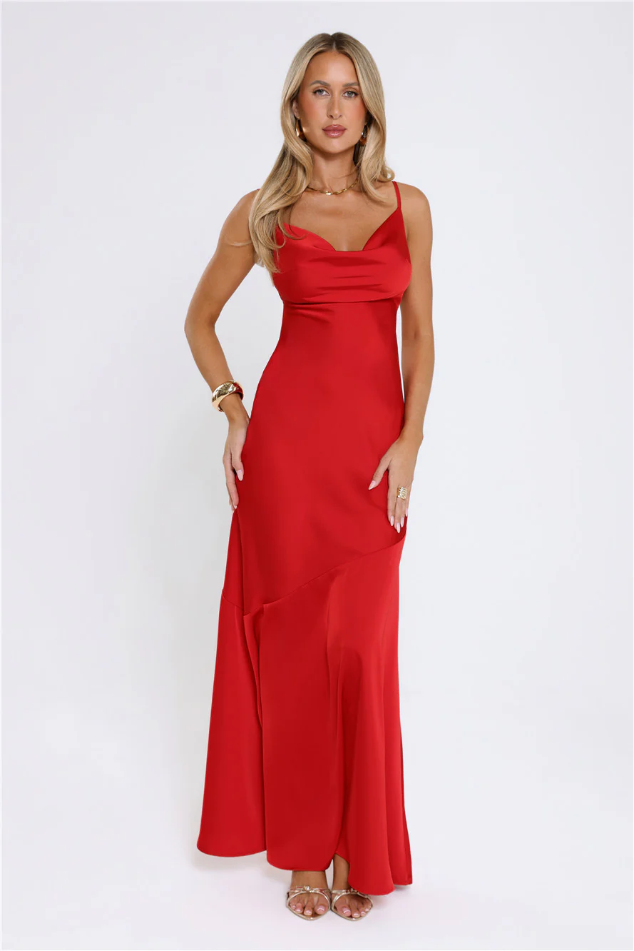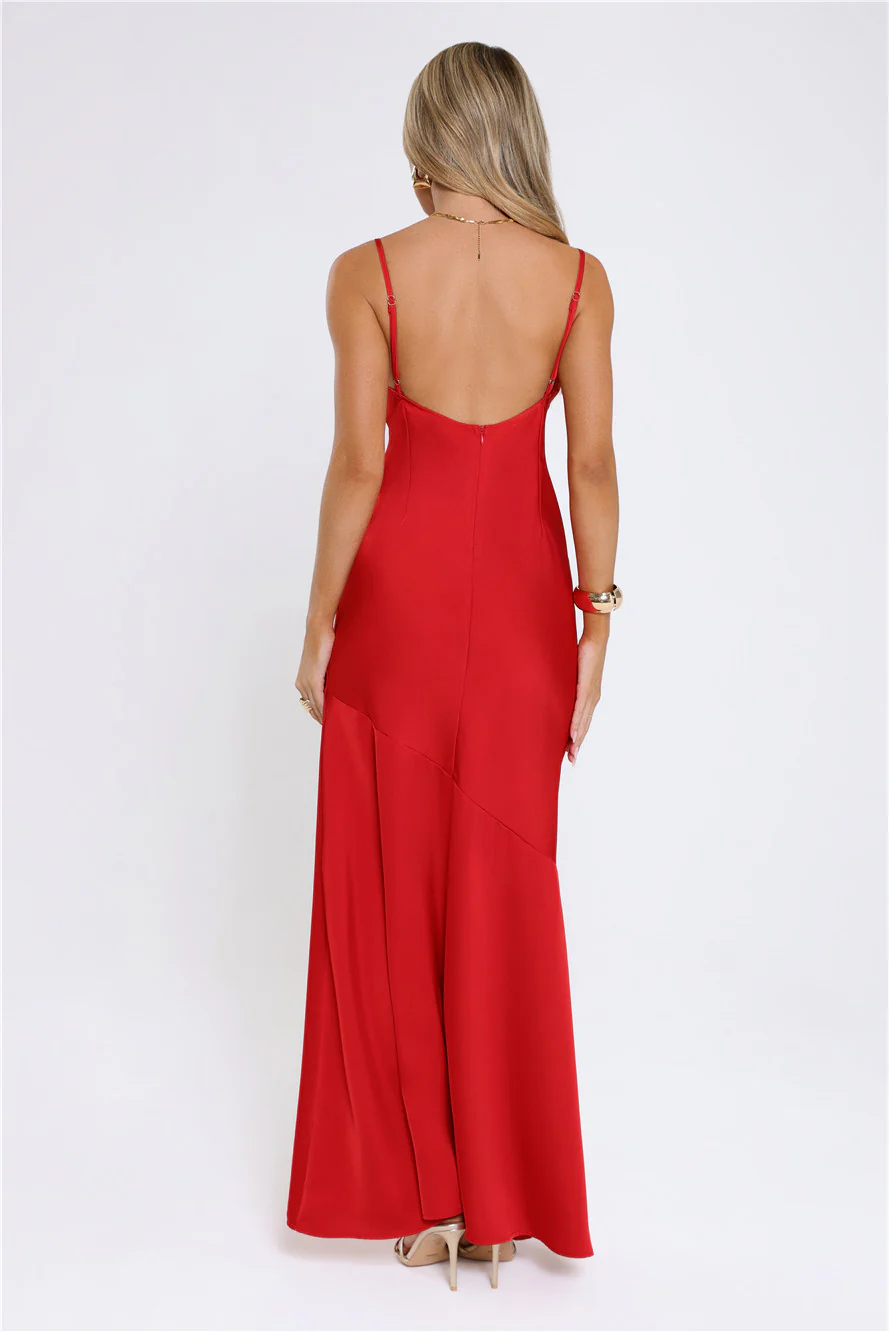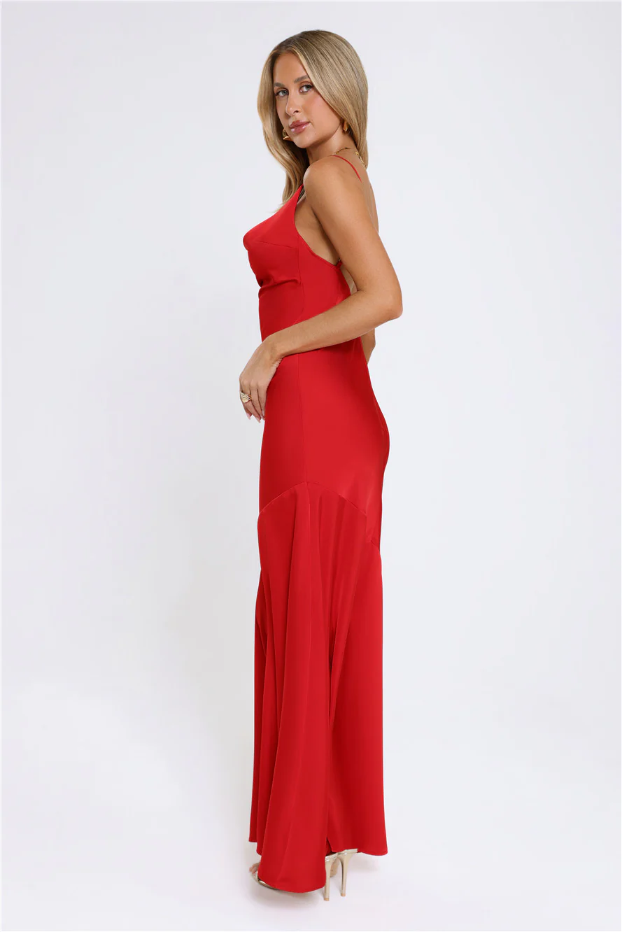 Brilliant Belle Satin Maxi Dress Red