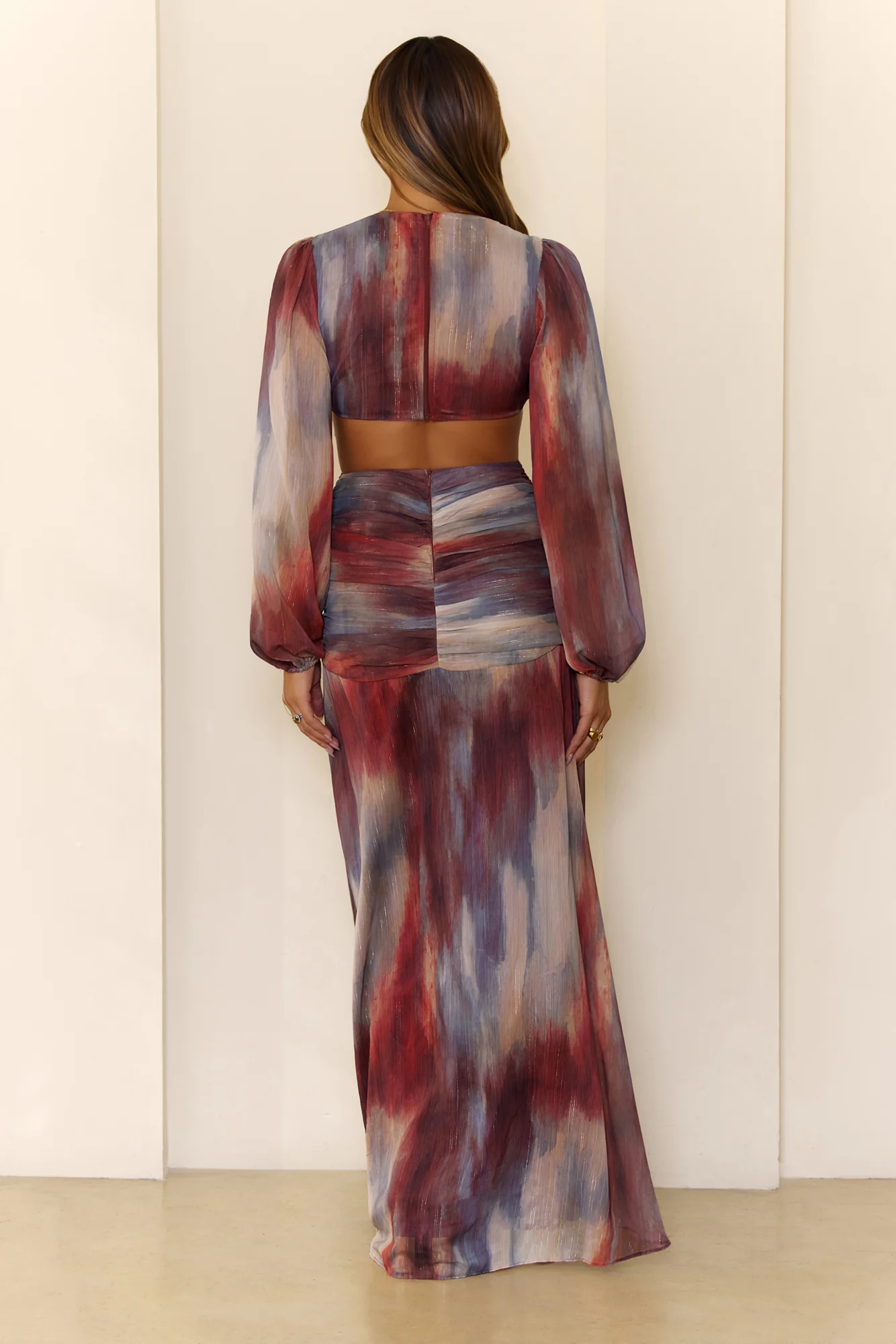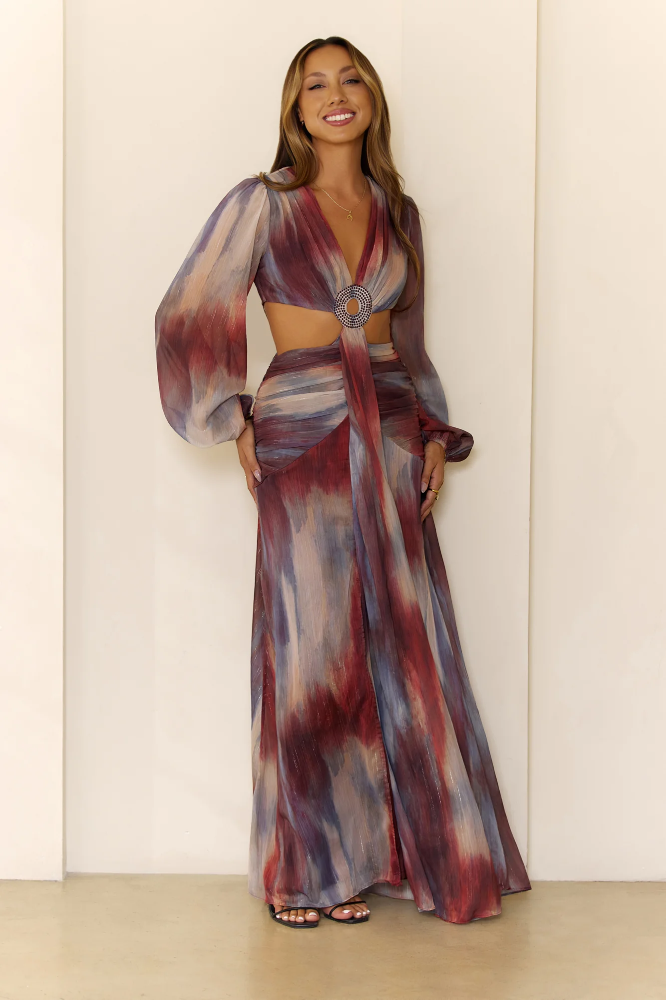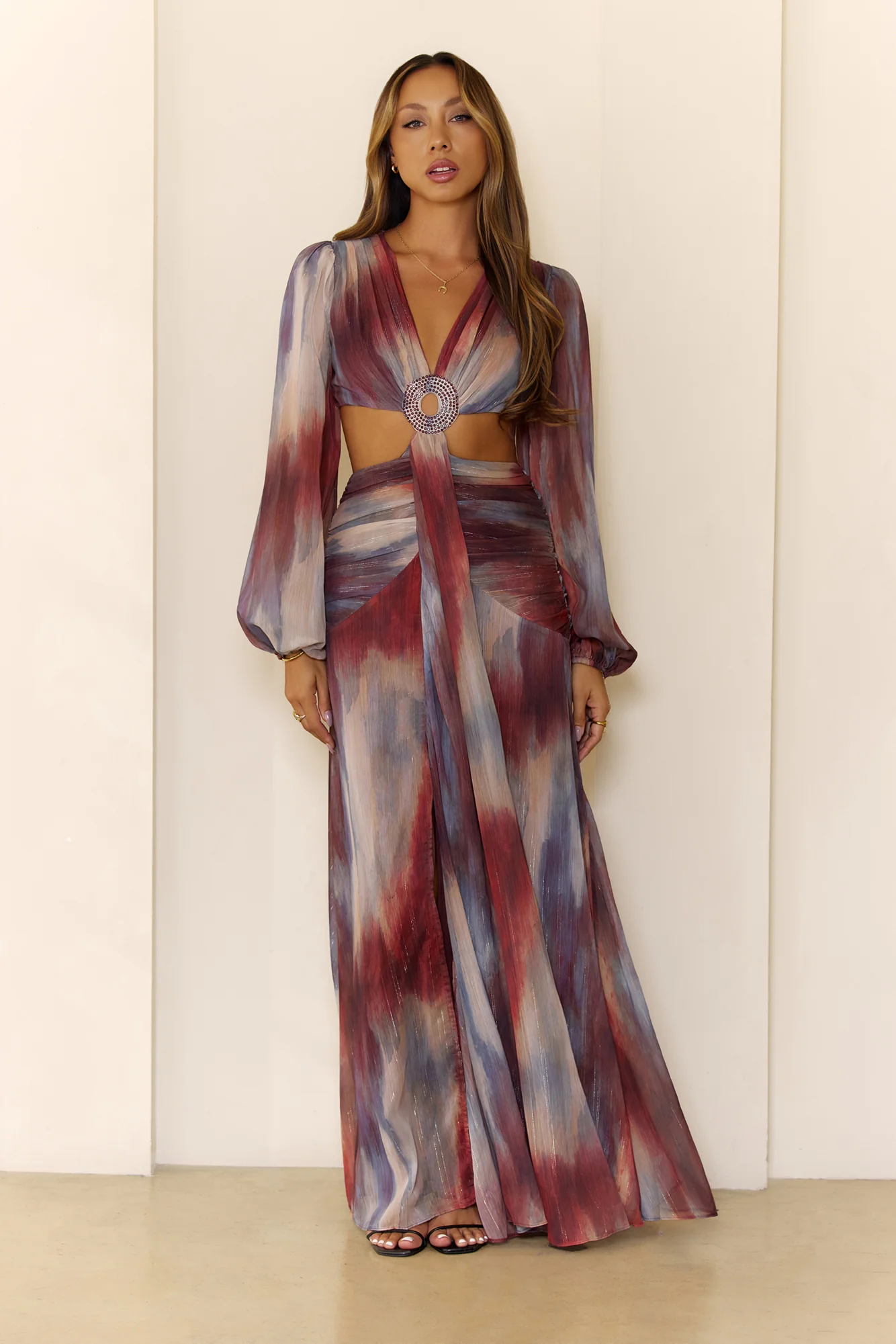 Shimmering Horizon Cutout Long Sleeve Maxi Dress Multi