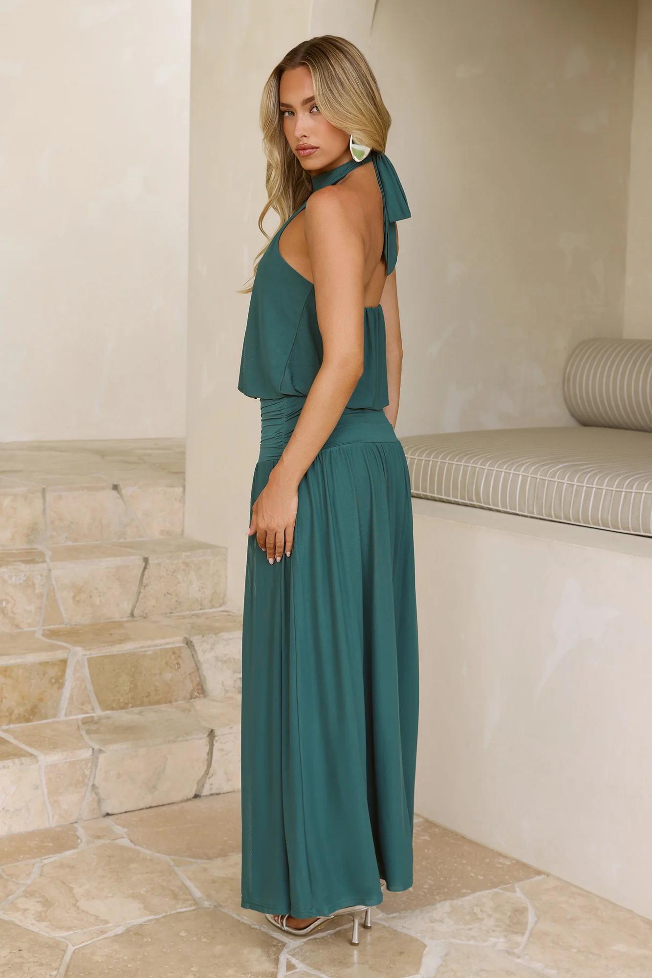 Dreamy Flowy Halter Maxi Dress Hunter Green