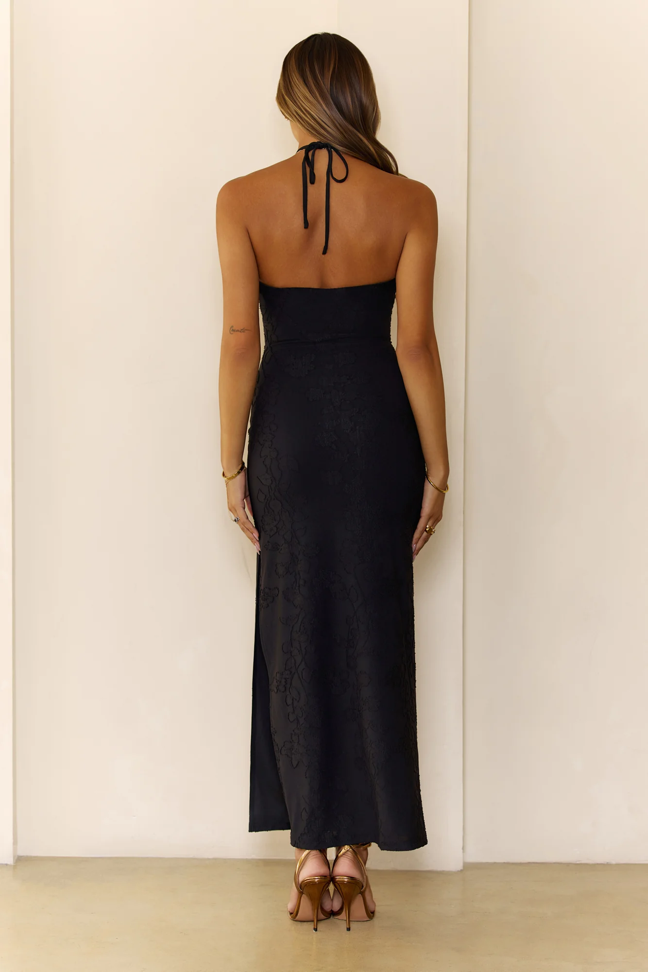 Autumn Muse Halter Maxi Dress Black