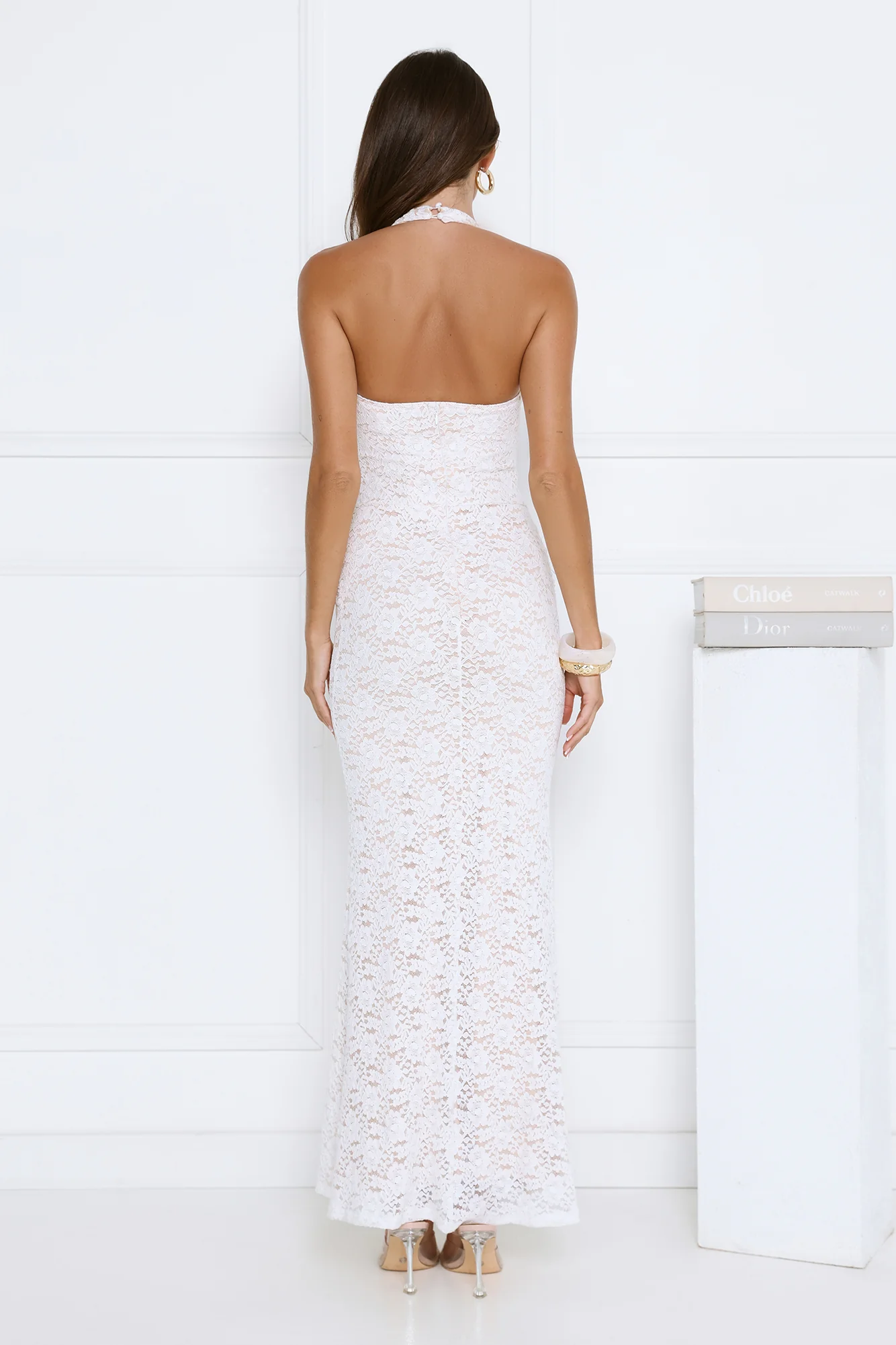Delicate Daydream Halter Lace Maxi Dress White