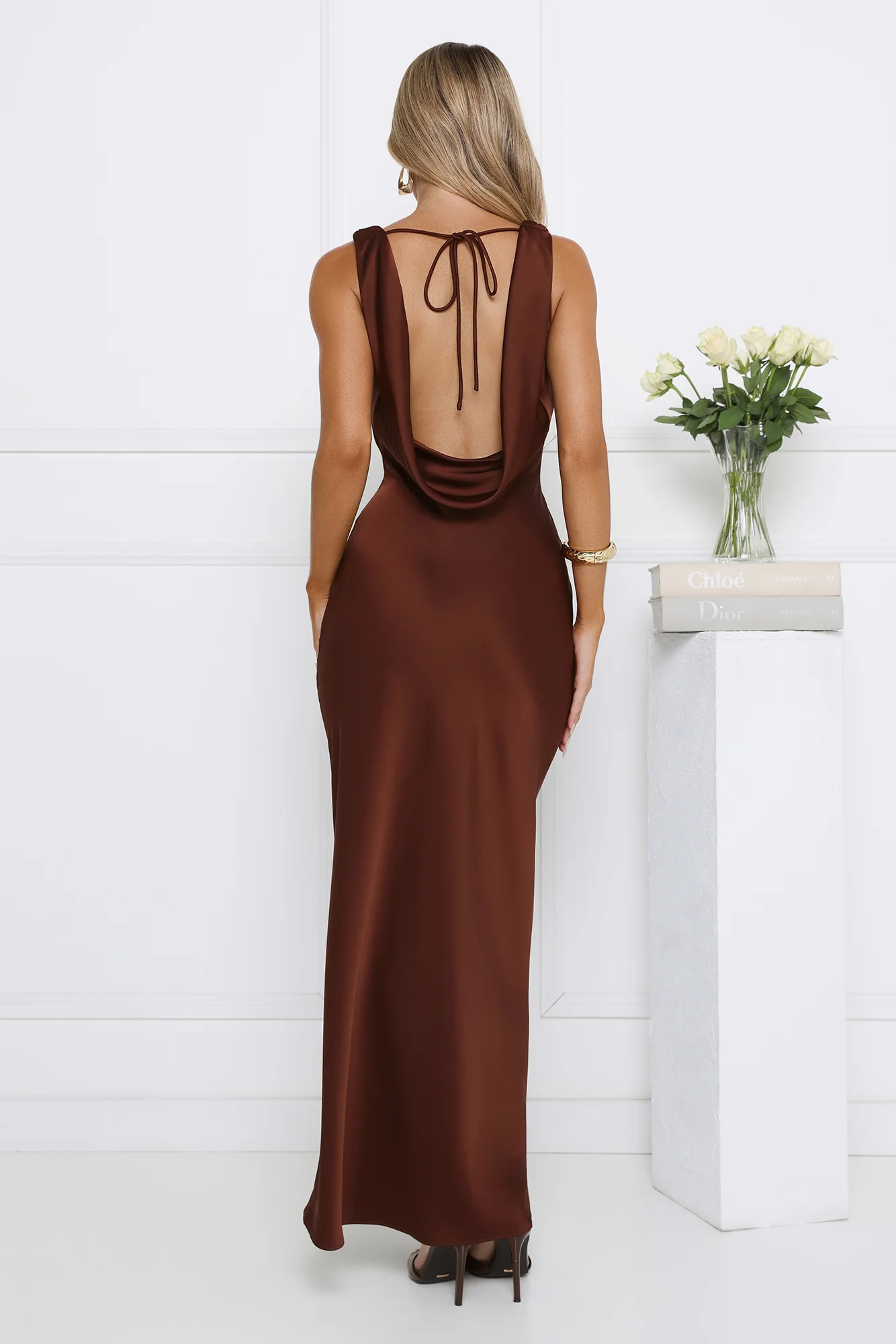 Effortless Appeal Satin Maxi Dress Brown