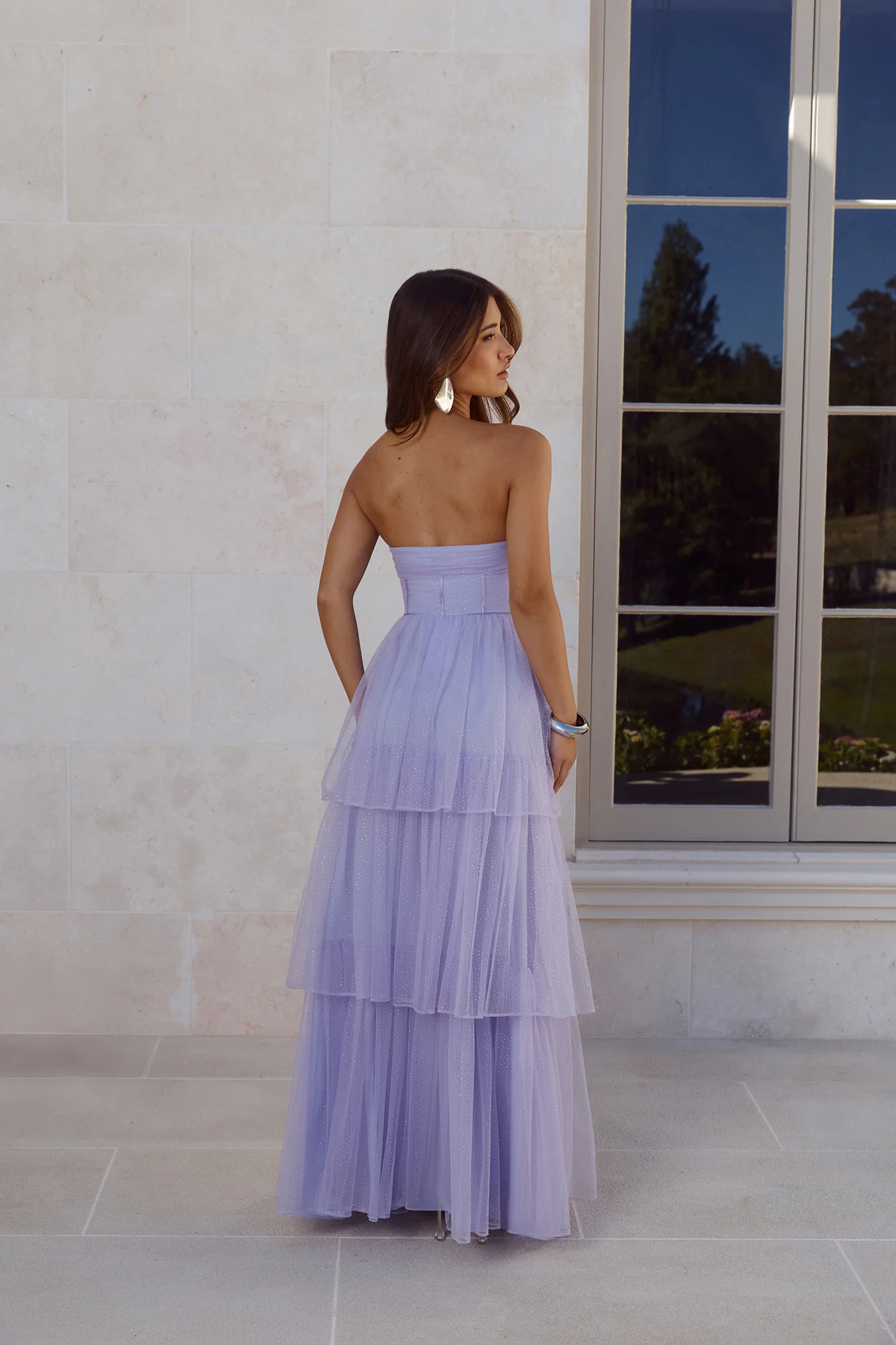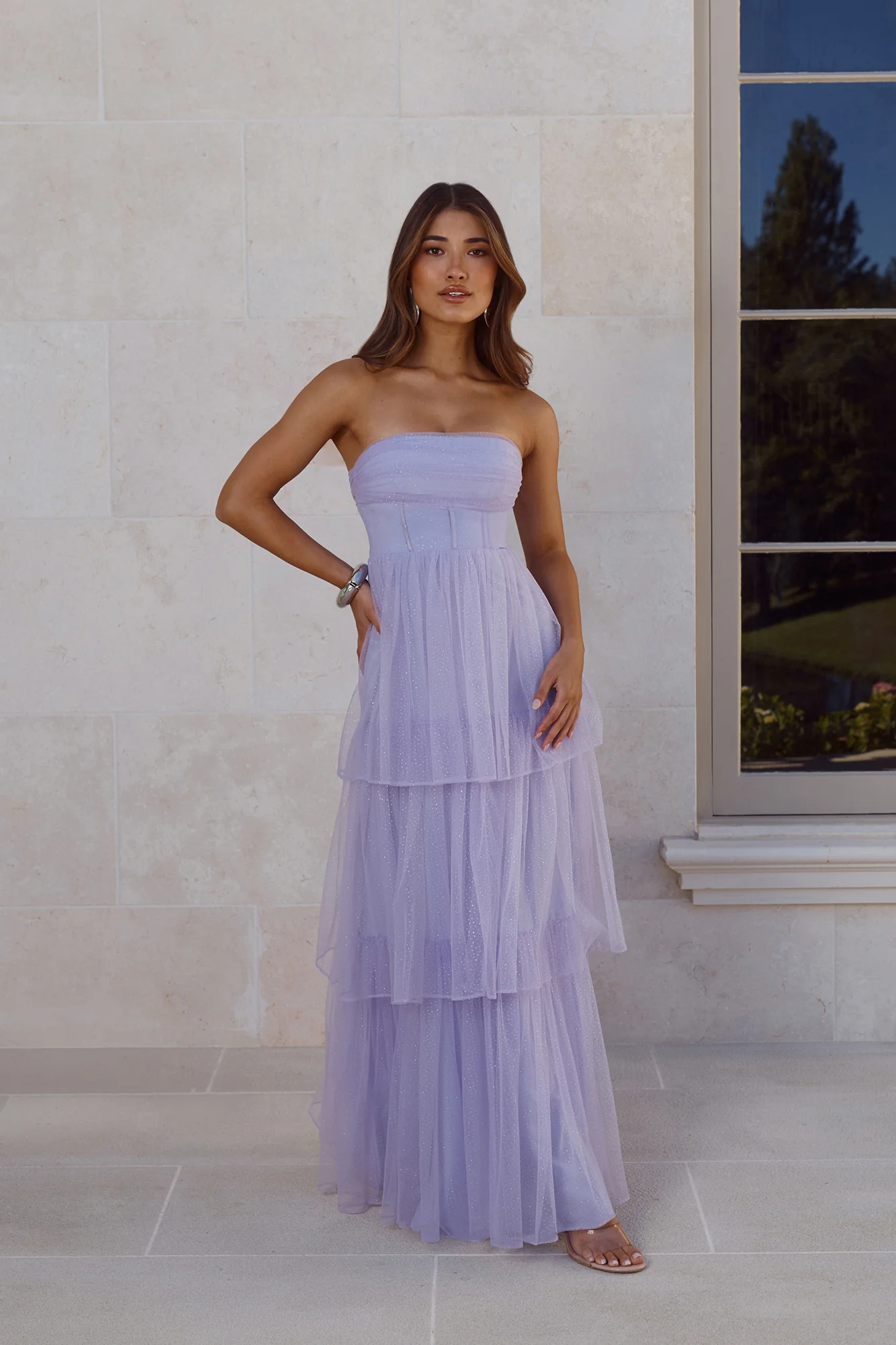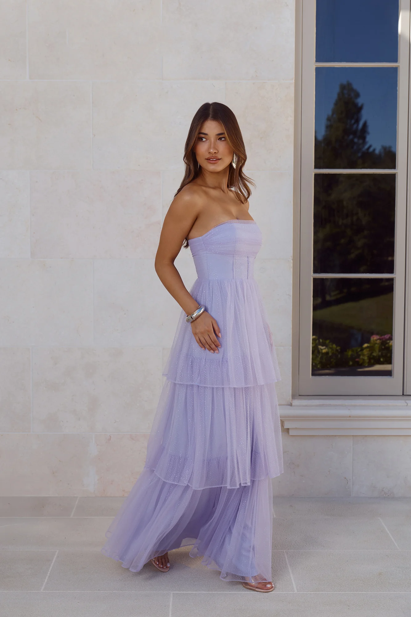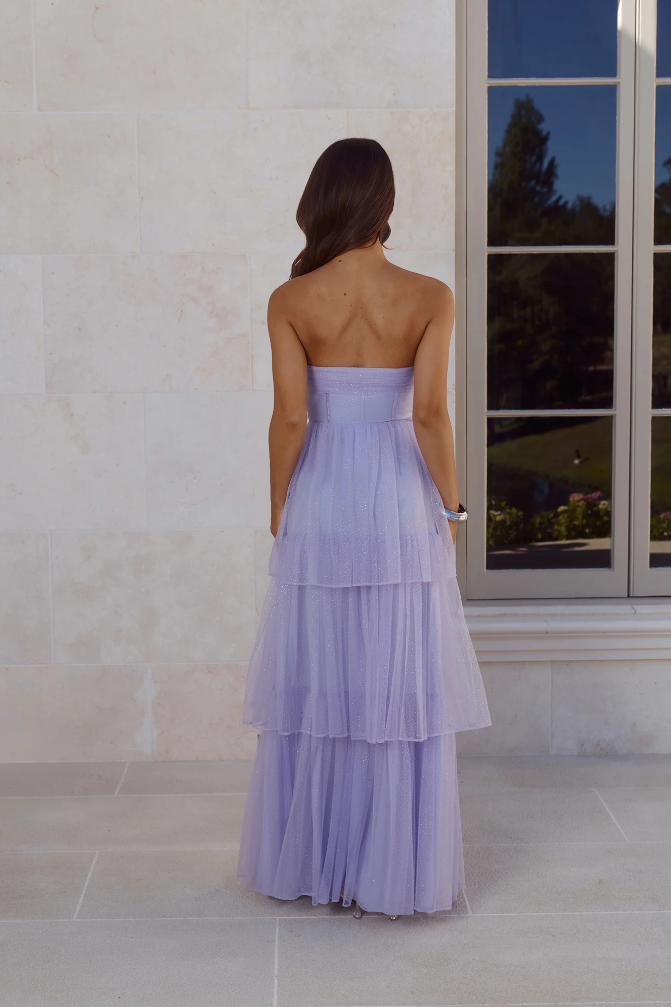 Premiere Glam Strapless Tulle Maxi Dress Lilac