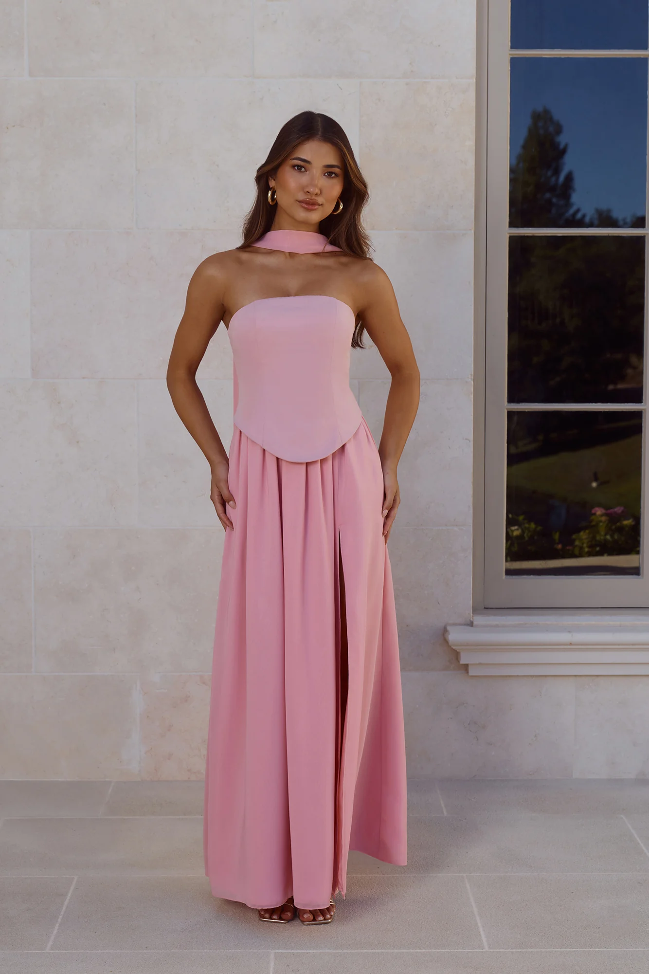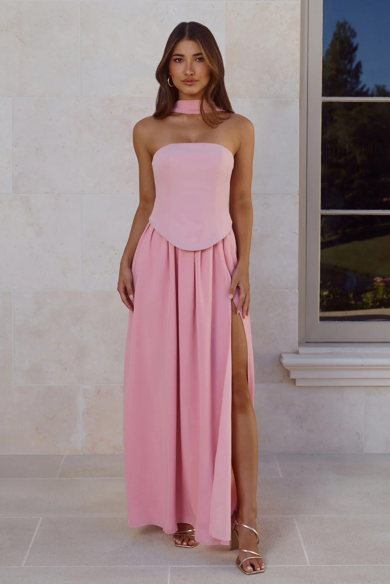 Polished Perfection Strapless Maxi Dress Pink