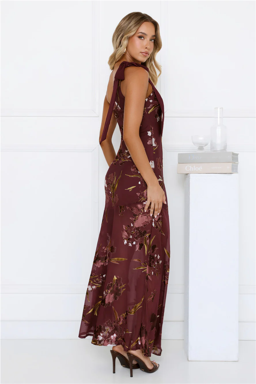Exotic Soirée Maxi Dress Wine