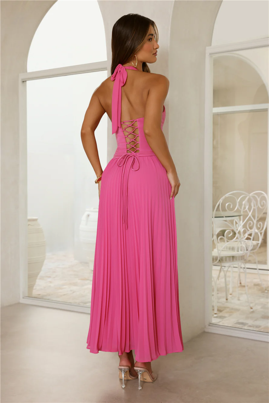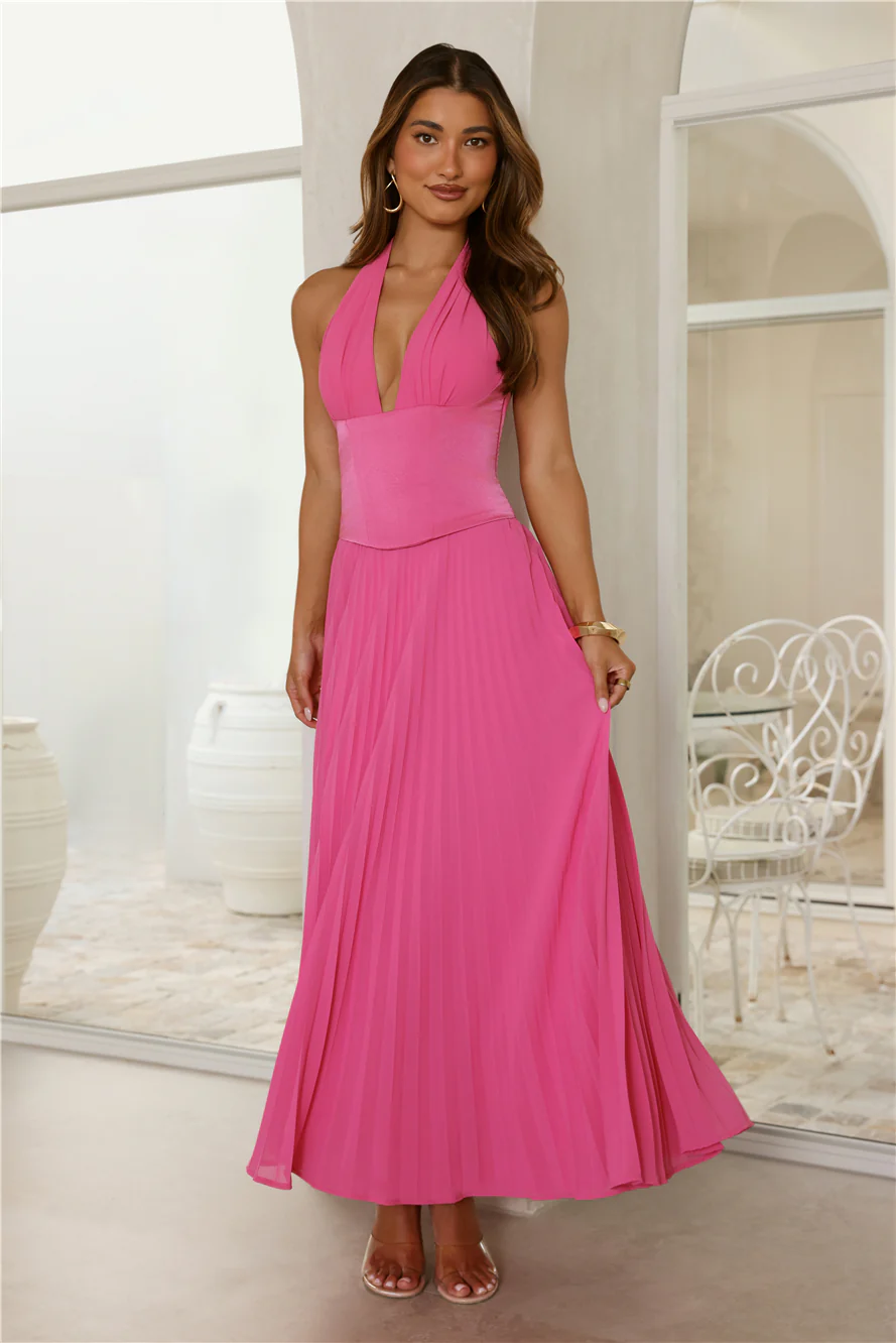 The Secret Waltz Halter Maxi Dress Pink